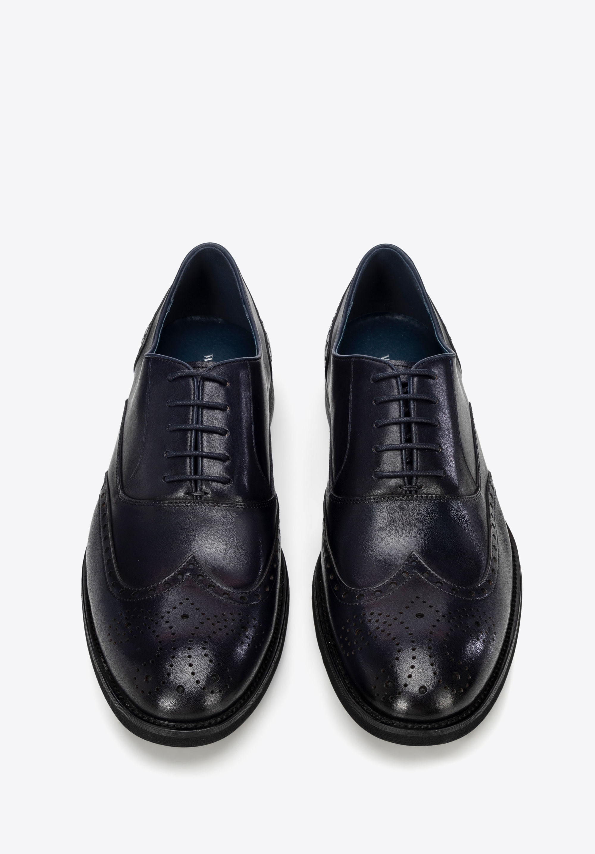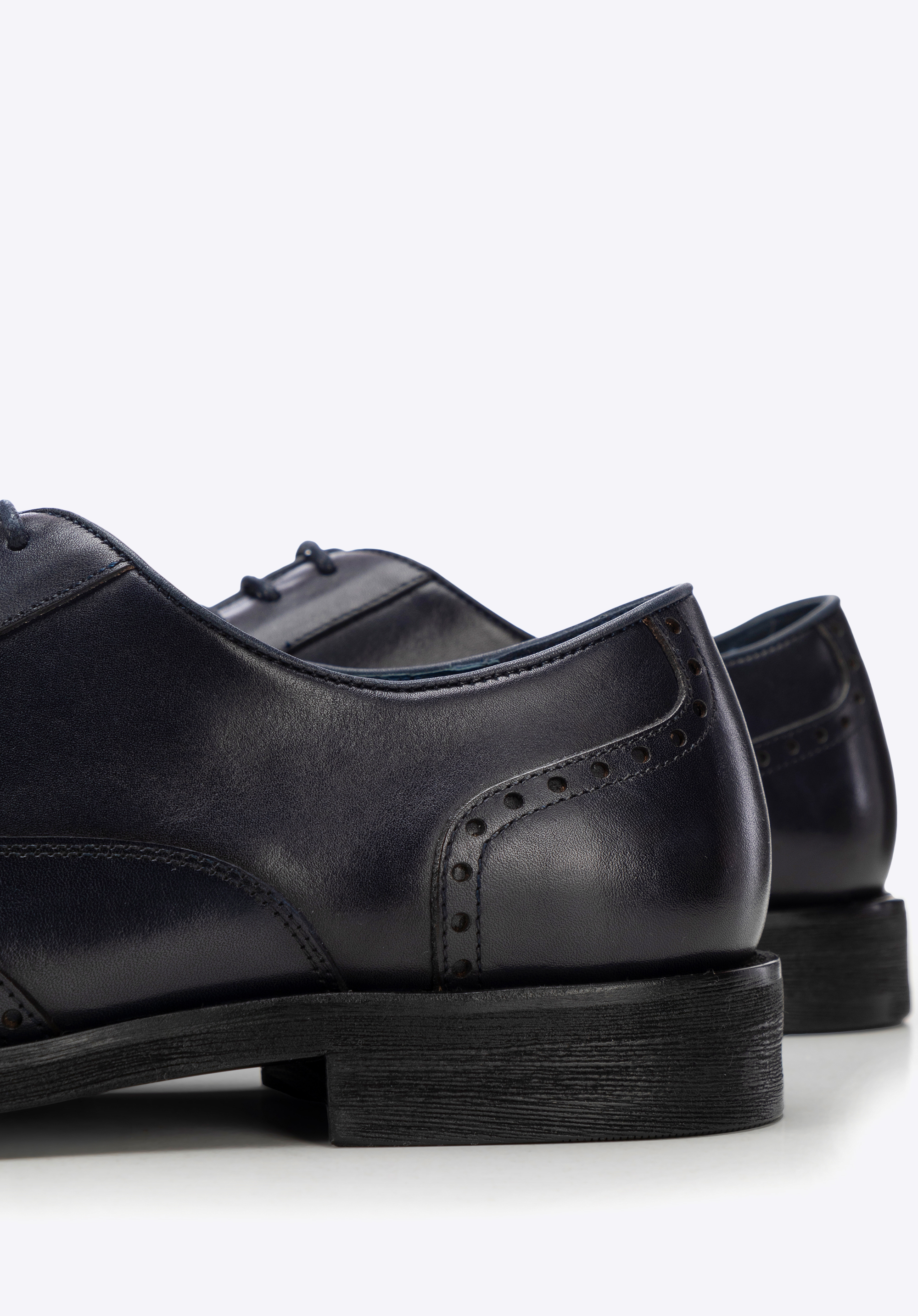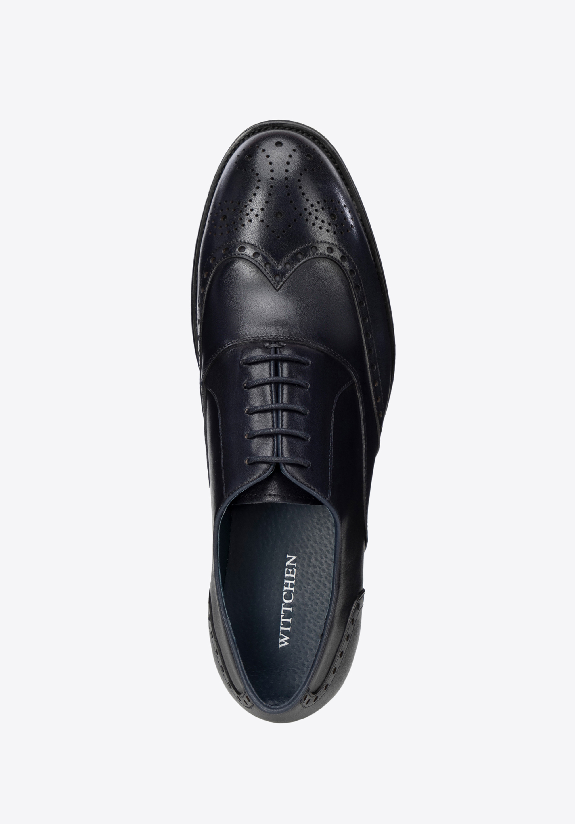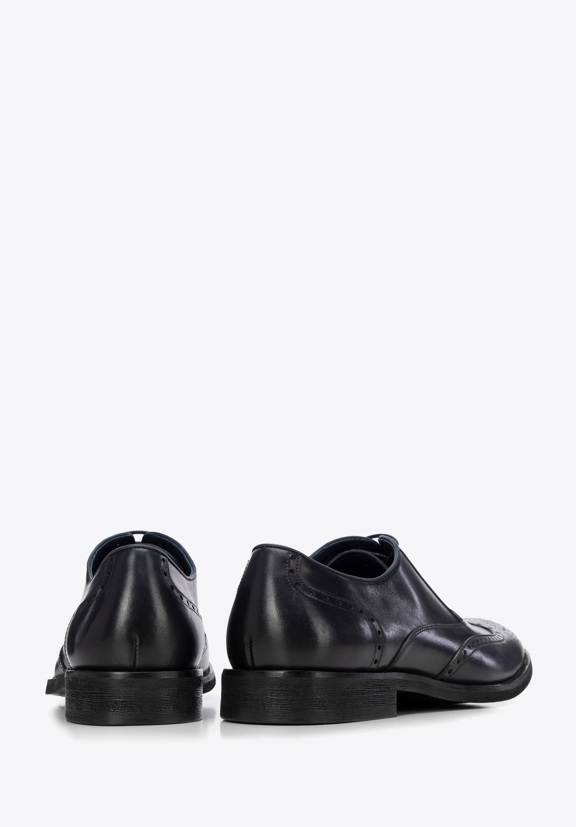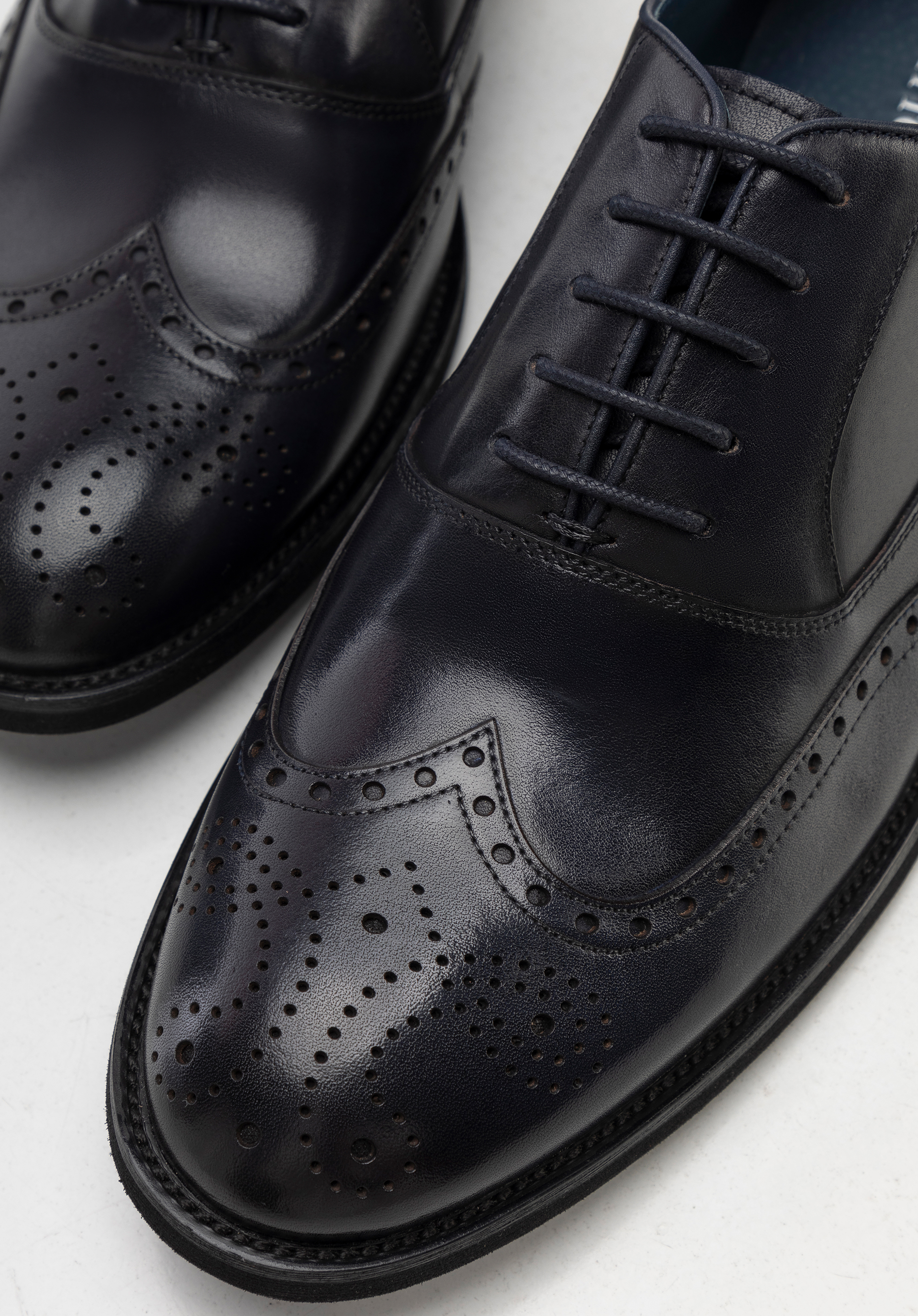 Objavte nadčasový štýl a precíznosť remeselného spracovania v luxusných pánskych topánkach. Tieto pánske topánky vyrobené z najkvalitnejšej hovädzej kože zaujmú svojim sofistikovaným vzhľadom, odolnosťou a zmyslom pre detail. Charakteristické uzavreté šnurovanie zaisťuje dokonalé uchytenie, zatiaľ čo bohatá perforácia po celom povrchu dodáva ľahký pocit a rafinovaný charakter. Krídlová špička v mandľovom tvare dodáva topánkam štíhly, elegantný tvar a zvýrazňuje ich exkluzívny vzhľad.