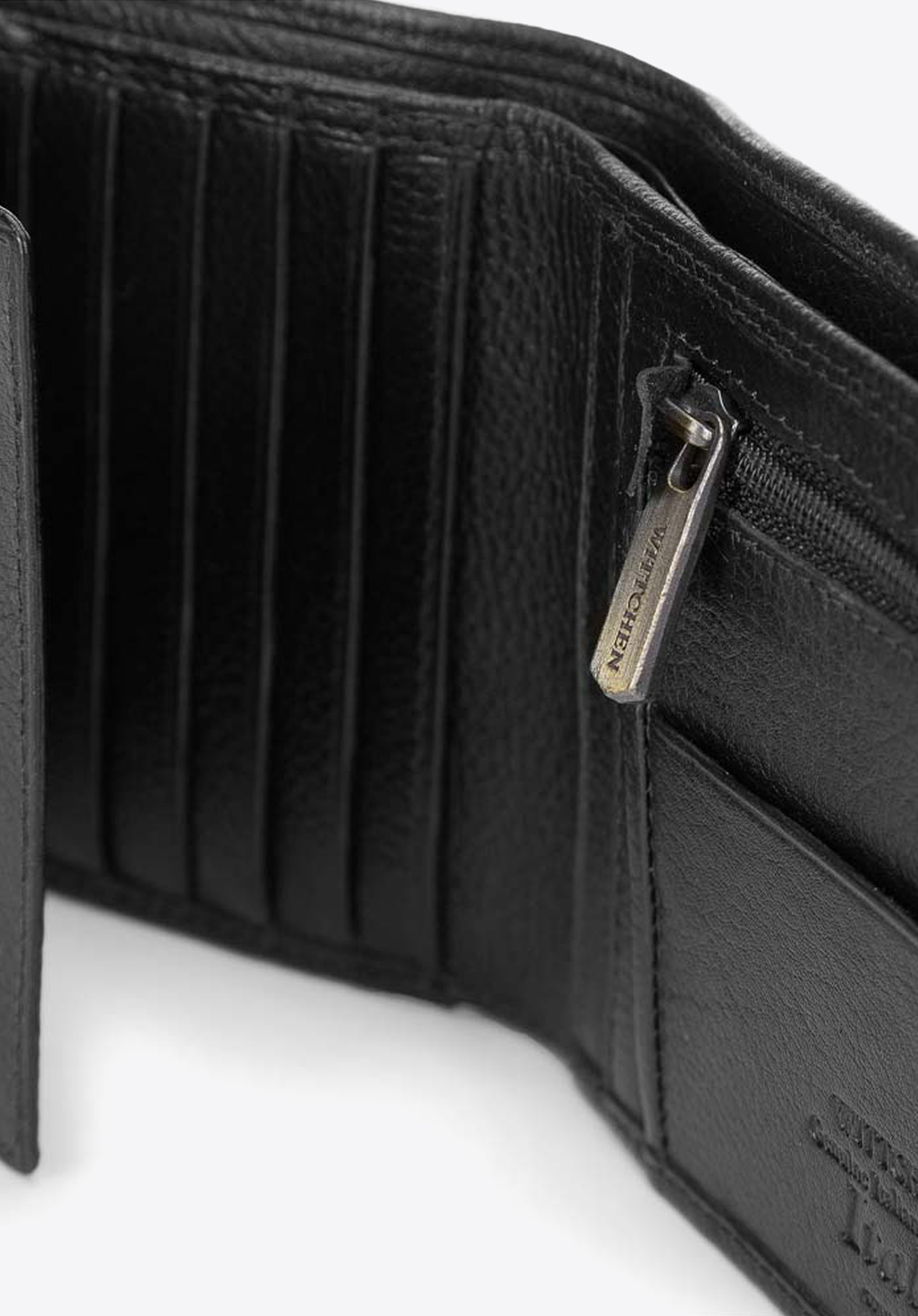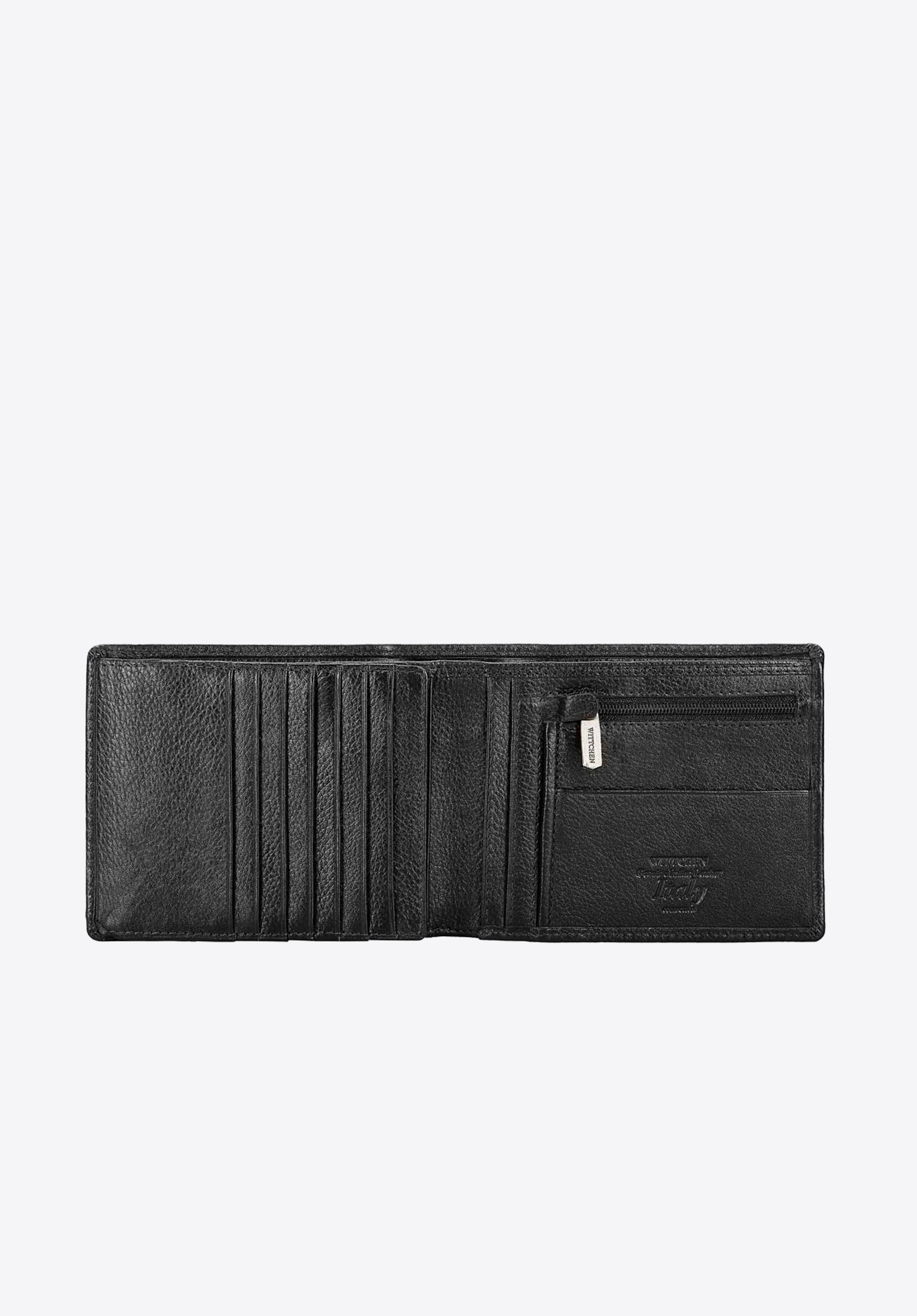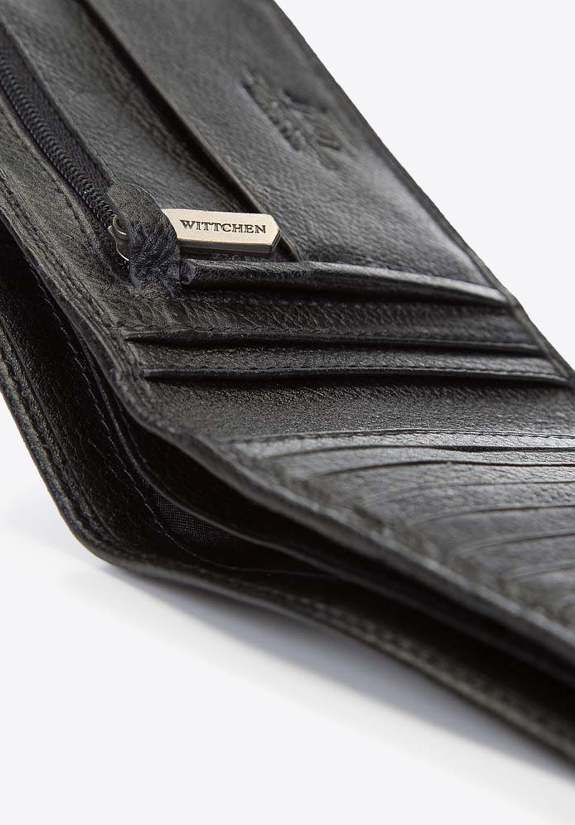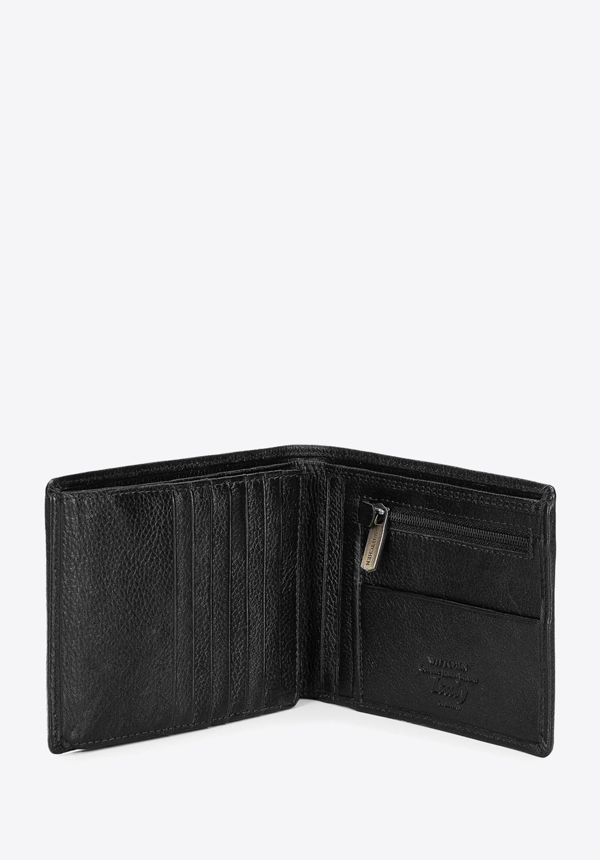 Funkčná a zároveň klasická kožená peňaženka pre mužov, ktorí majú radi mať všetky svoje karty po ruke. Má špeciálny, rozkladací panel, do ktorého môžete vložiť až sedem kariet a ďalších sedem uložíte pod panelom. Vo vnútri má dve vrecká na bankovky, uzatvárateľné vrecko na mince, sieťovanú priehradku – ideálnu na fotografie blízkych a päť ďalších vreciek na iné doklady. Na prednej strane nájdete logo a erb WITTCHEN vyrazený v koži . Podšívka je vyrobená pomocou najnovšej technológie RFID, takže údaje z vašej karty sú chránené pred snímaním.