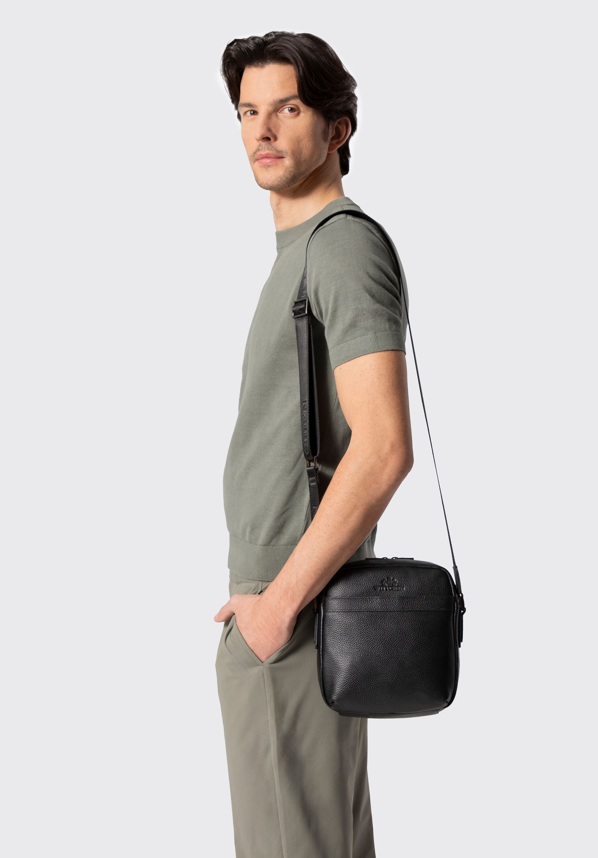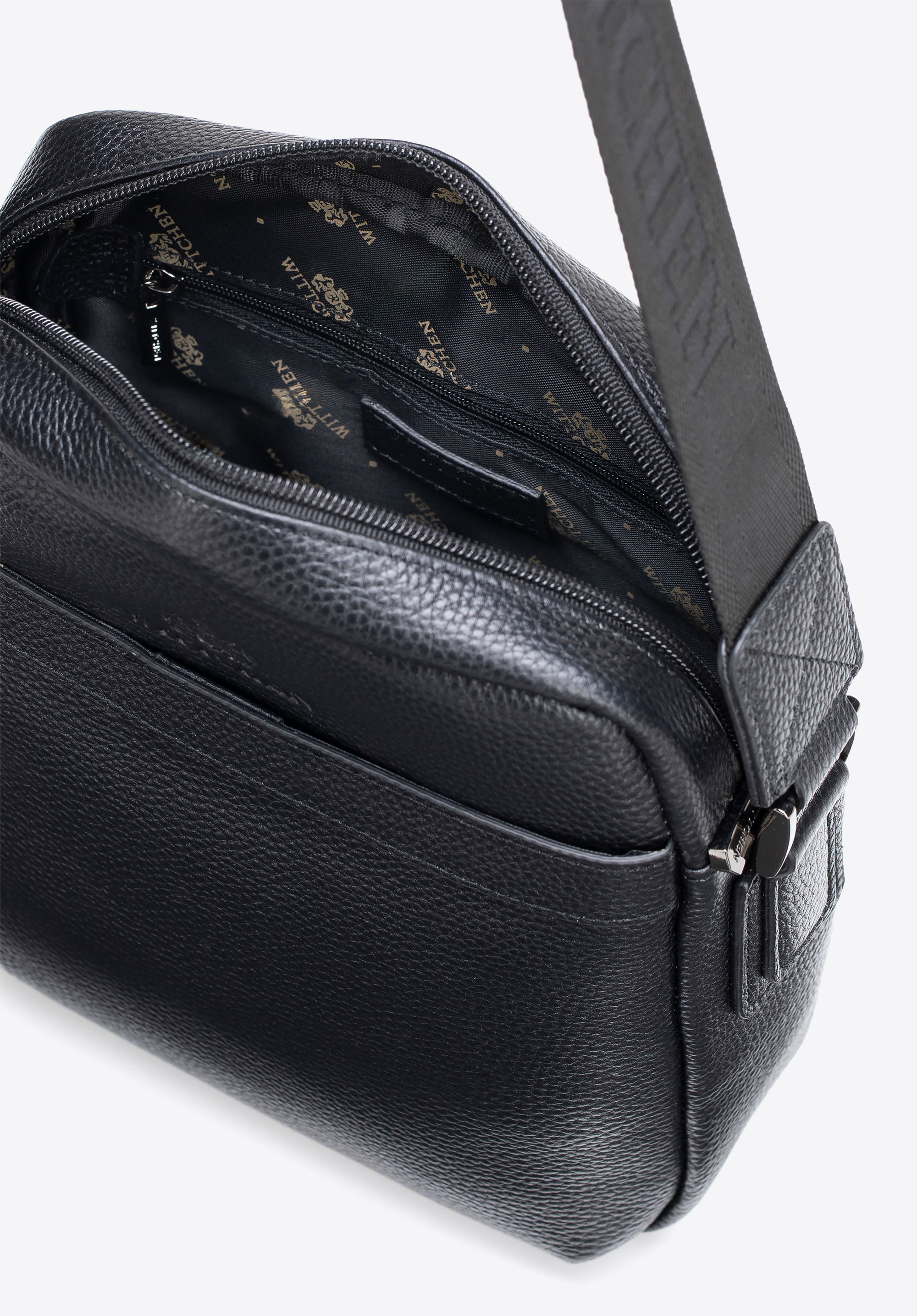 Pánska kožená taška cez rameno s kamienkovým vzorom Farba: čierna