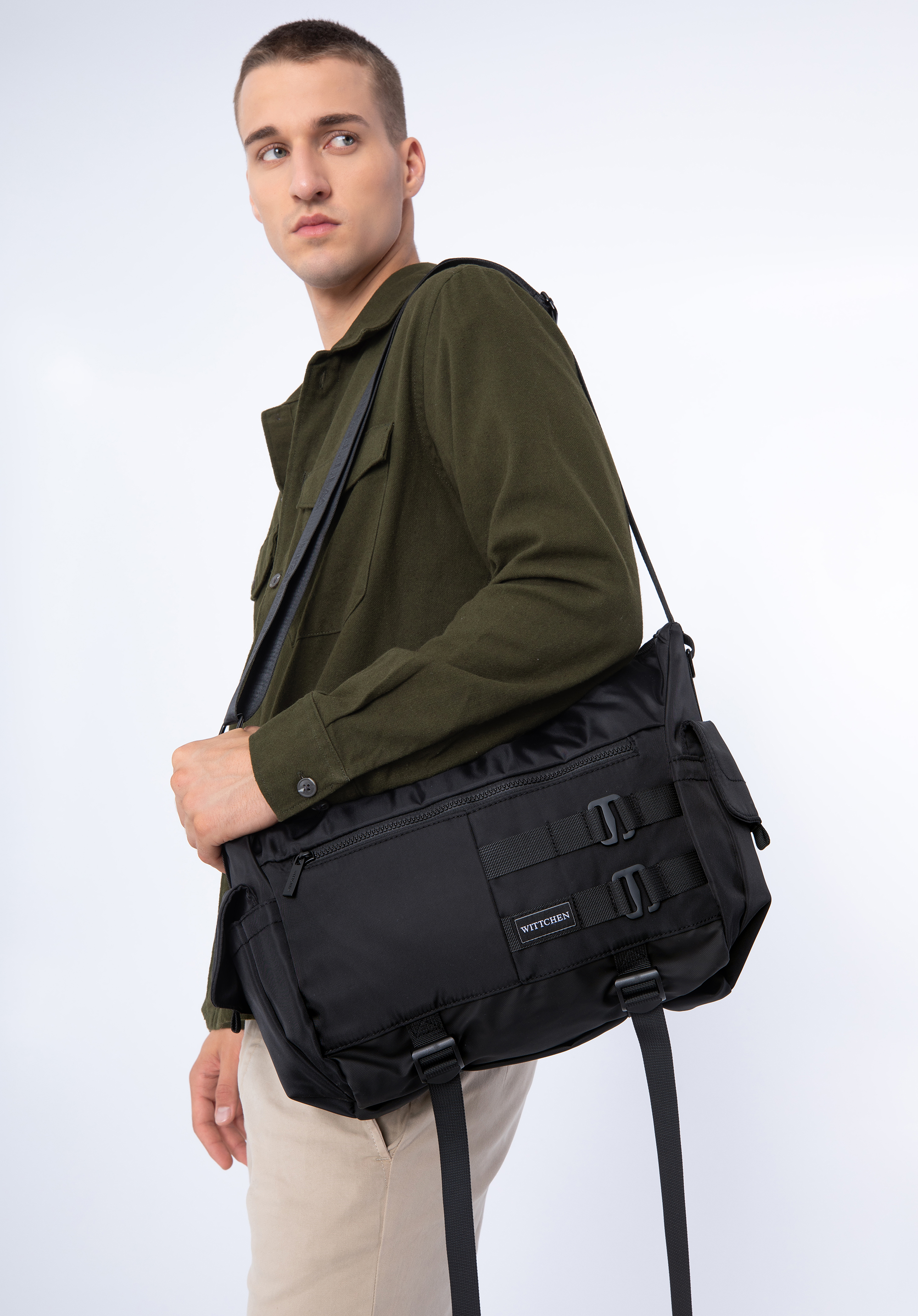 Vodorovné popruhy a pracky na prednej strane plnia nielen dekoratívnu funkciu, ale tiež vám umožnia ľahko zavesiť ďalšie drobnosti, ktoré chcete mať rýchlo po ruke. Pánska multifunkčná taška s popruhmi na prednej strane je skvelou voľbou pre každého dobre organizovaného muža.