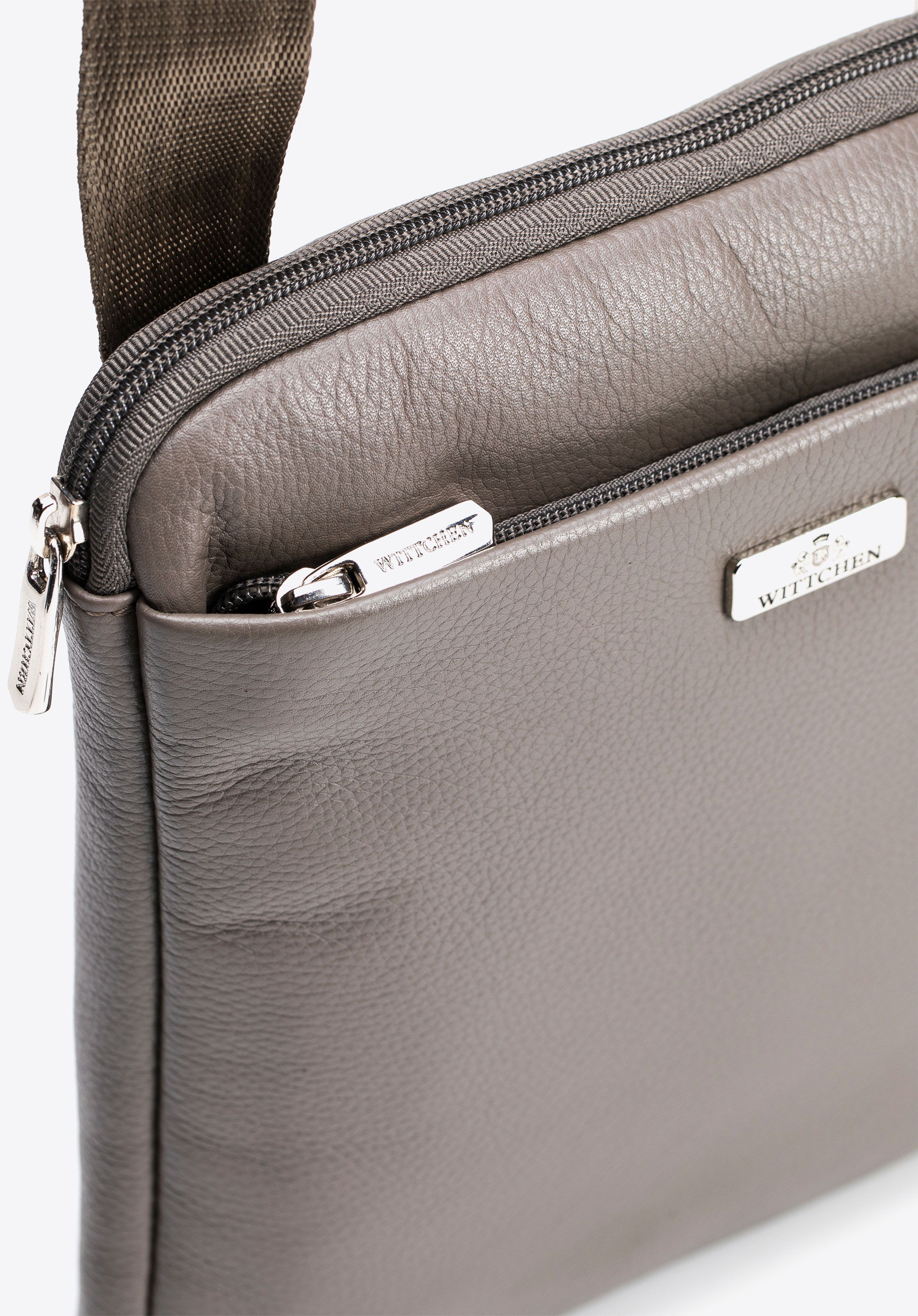 pánska poštová taška s jednoduchým, podlhovastým strihom je skutočnou klasikou tohto druhu doplnkov. Hodí sa k ležérnemu oblečeniu a jej priestranný interiér pojme všetko potrebné, či už na mestské výlety alebo na víkendový výlet. Prírodná koža zaručuje najvyššiu kvalitu a odolnosť tašky. Model má hlavnú priehradku s dvoma vreckami a bočné vrecko na zips. Pohodlie pri nosení a stabilitu zabezpečuje široký nastaviteľný remienok s logom WITTCHEN. S takouto praktickou taškou budete vždy štýloví a dobre organizovaní.