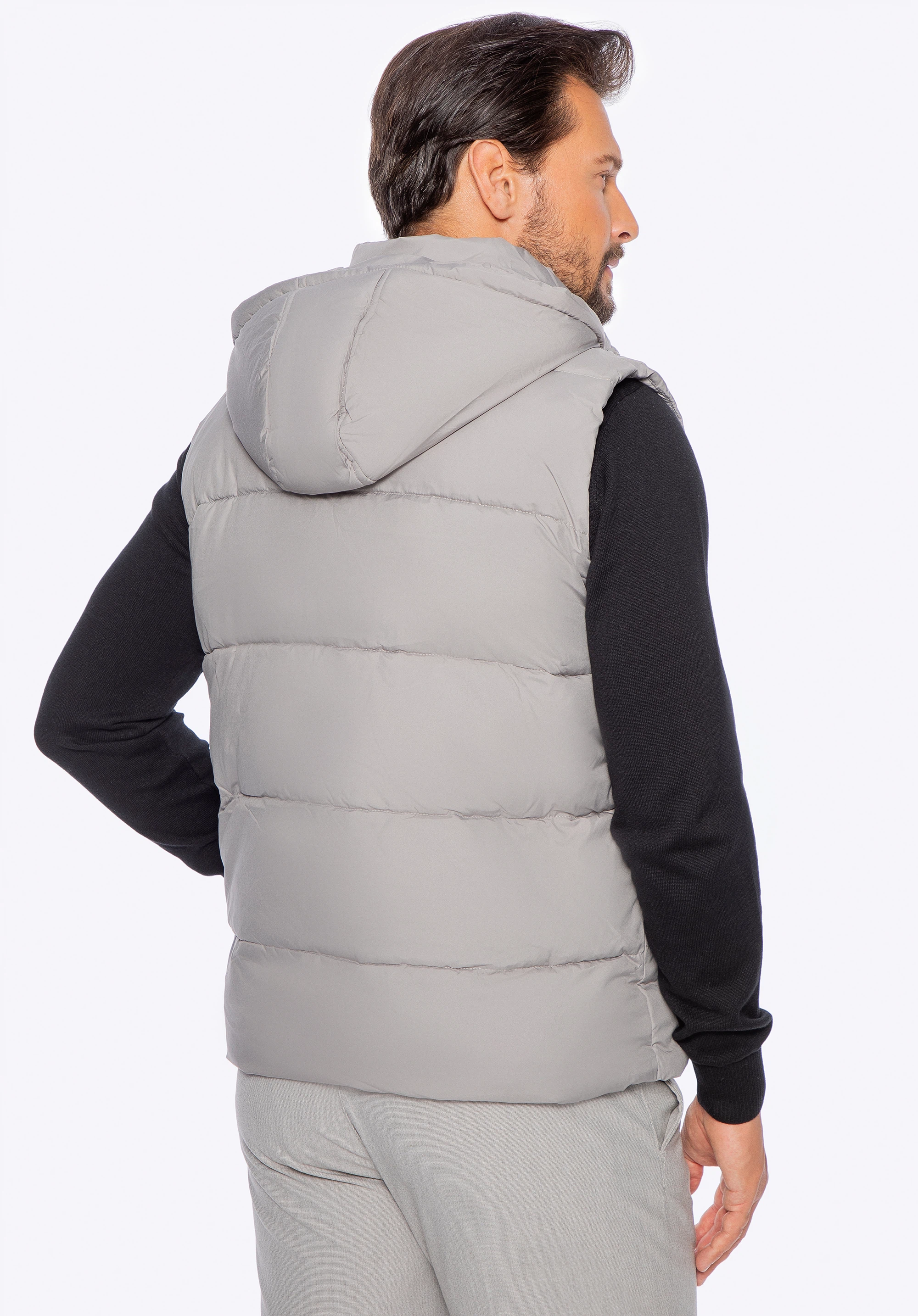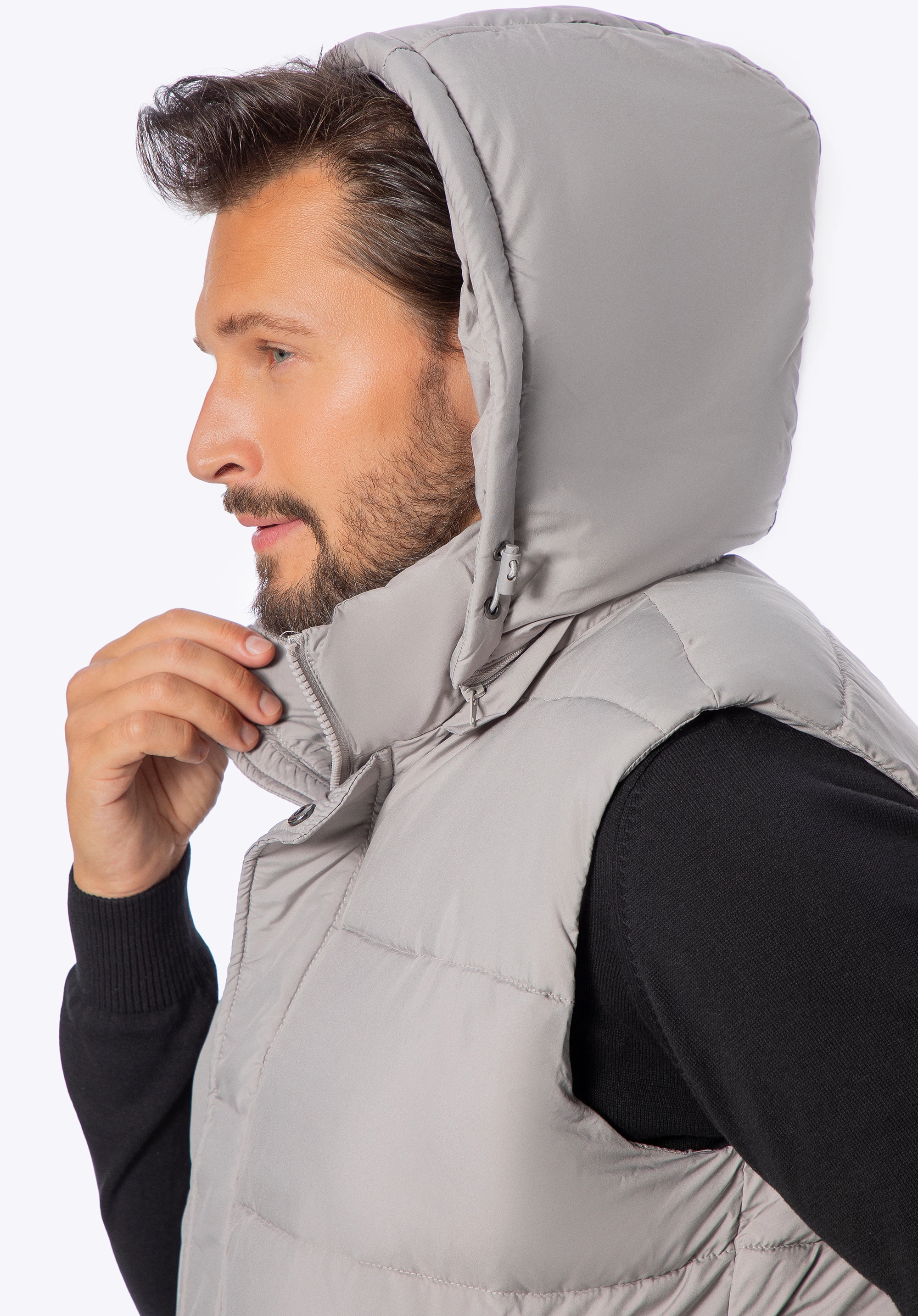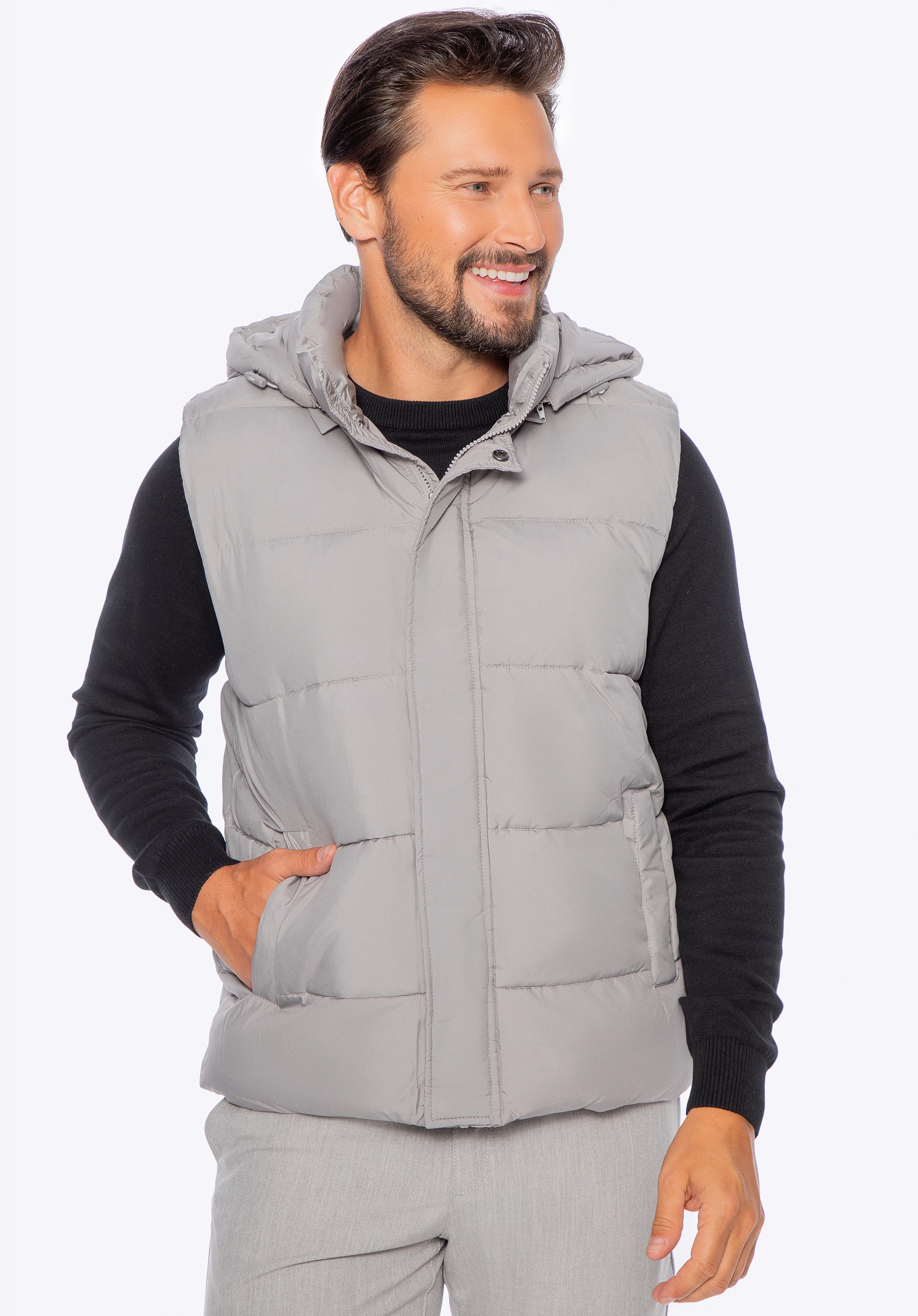 Zateplená vesta sa vám bude hodiť každú sezónu. Môžete ju nosiť na jeseň namiesto bundy alebo v teplejších zimných dňoch na sveter alebo mikinu. Je vyrobená z odolného polyesteru a dokončená klasickým prešívaním. Vnútorná strana bundy a kapucňa majú výplň z mäkkého polyesteru, ktorý vás udrží v teple a pohodlí. Praktickým riešením je odnímateľná kapucňa so sťahovacou šnúrkou, vďaka ktorej pevne zakryje vašu hlavu. Pánska prešívaná vesta s odnímateľnou kapucňou je univerzálnym doplnkom na dlhé roky.