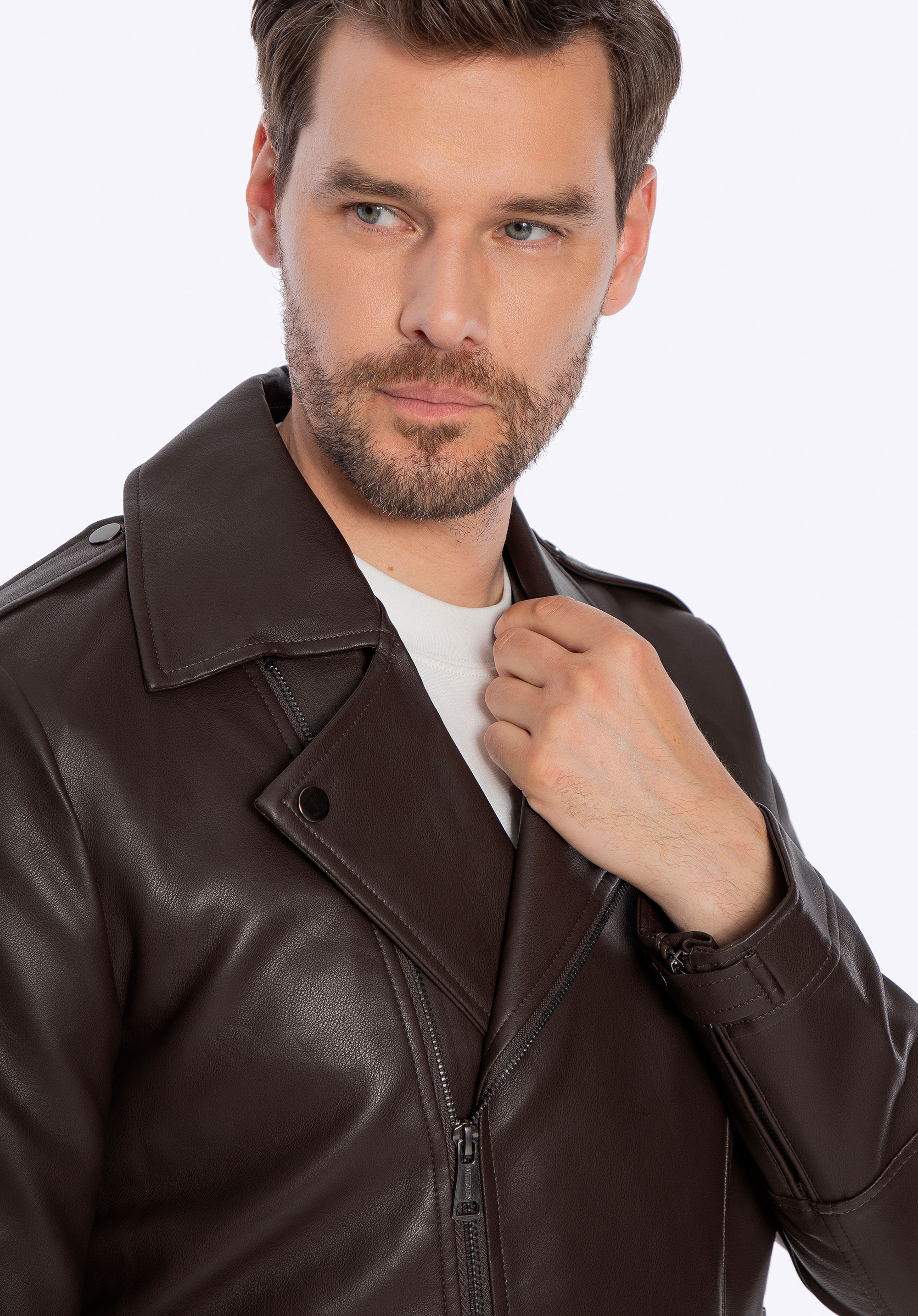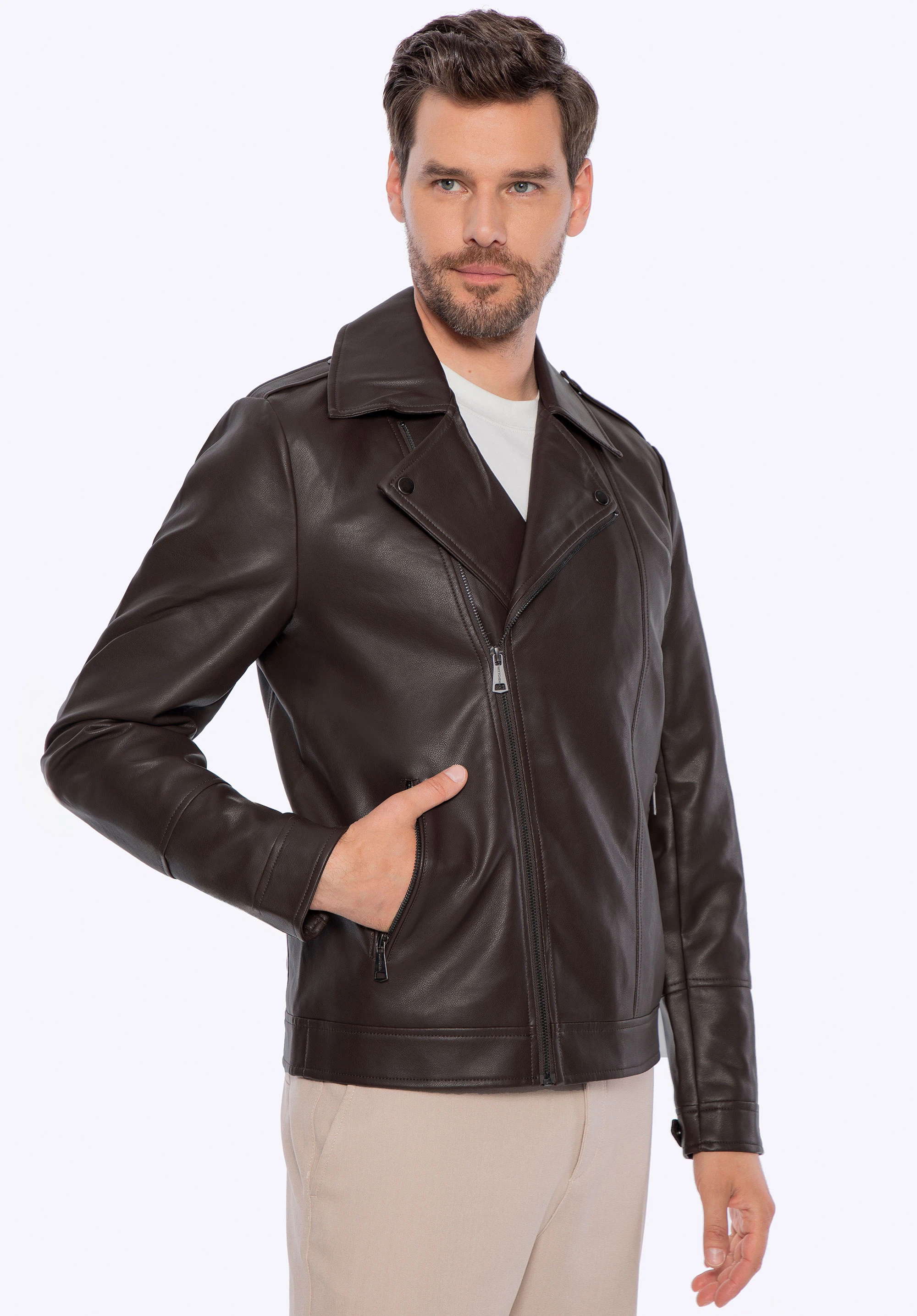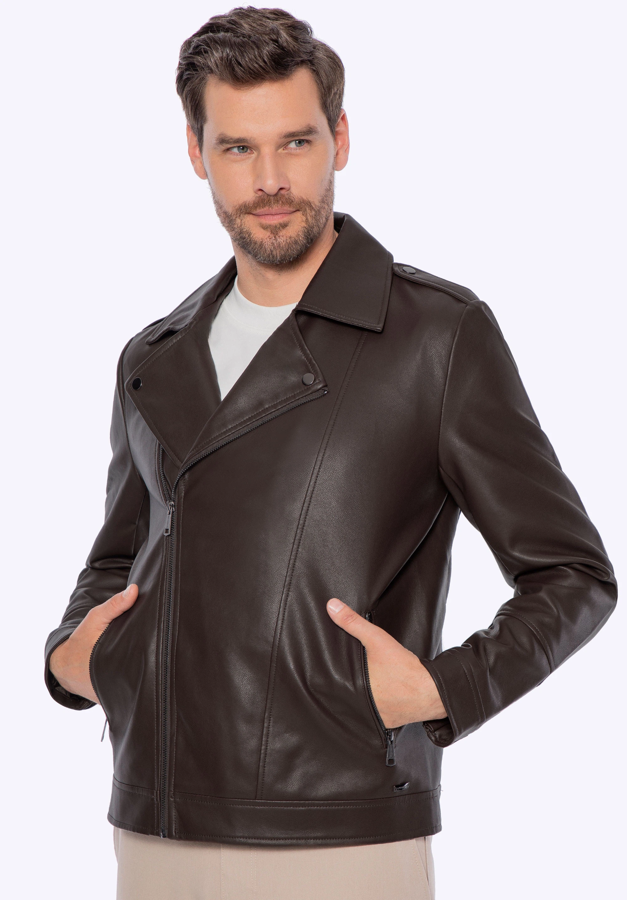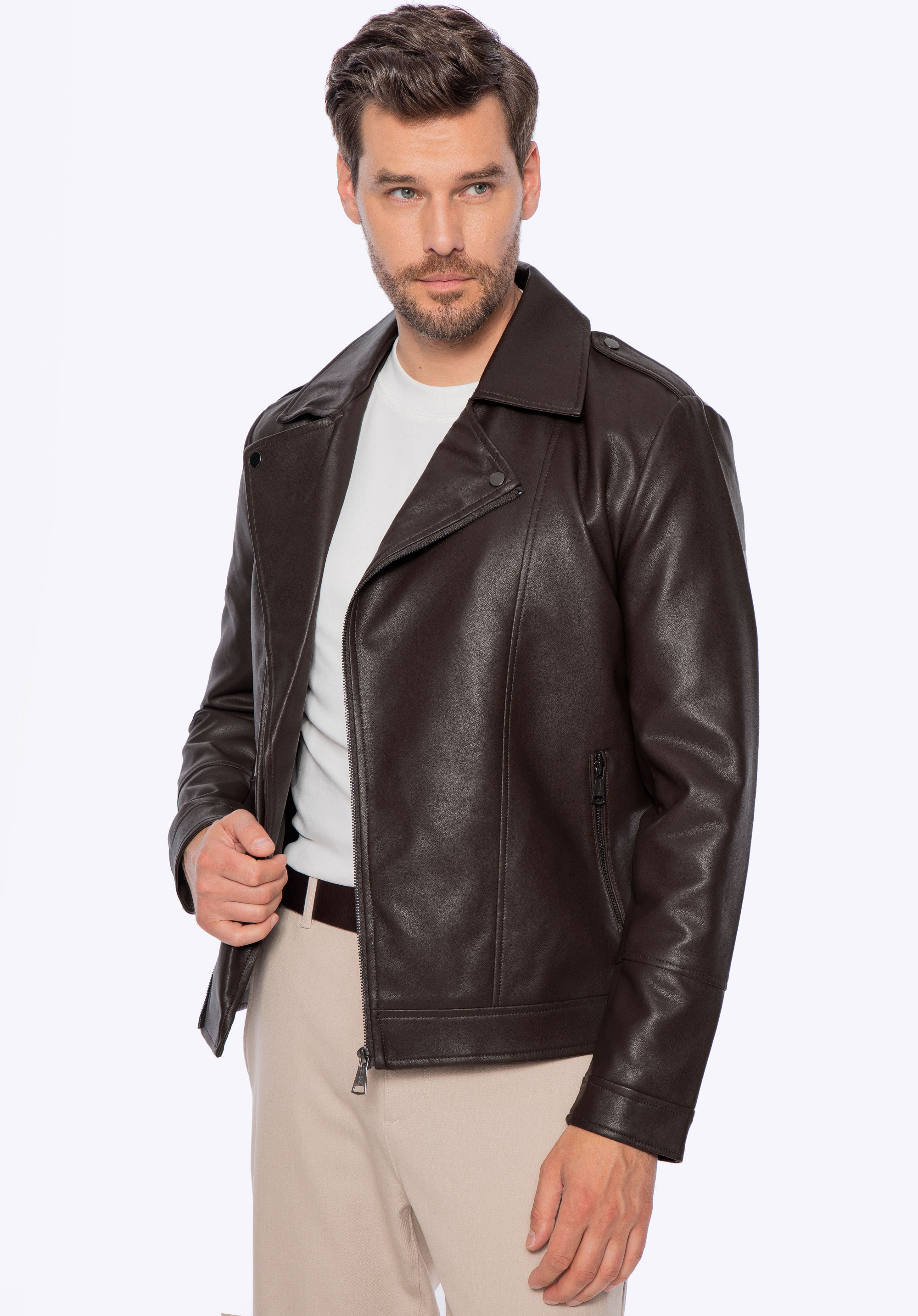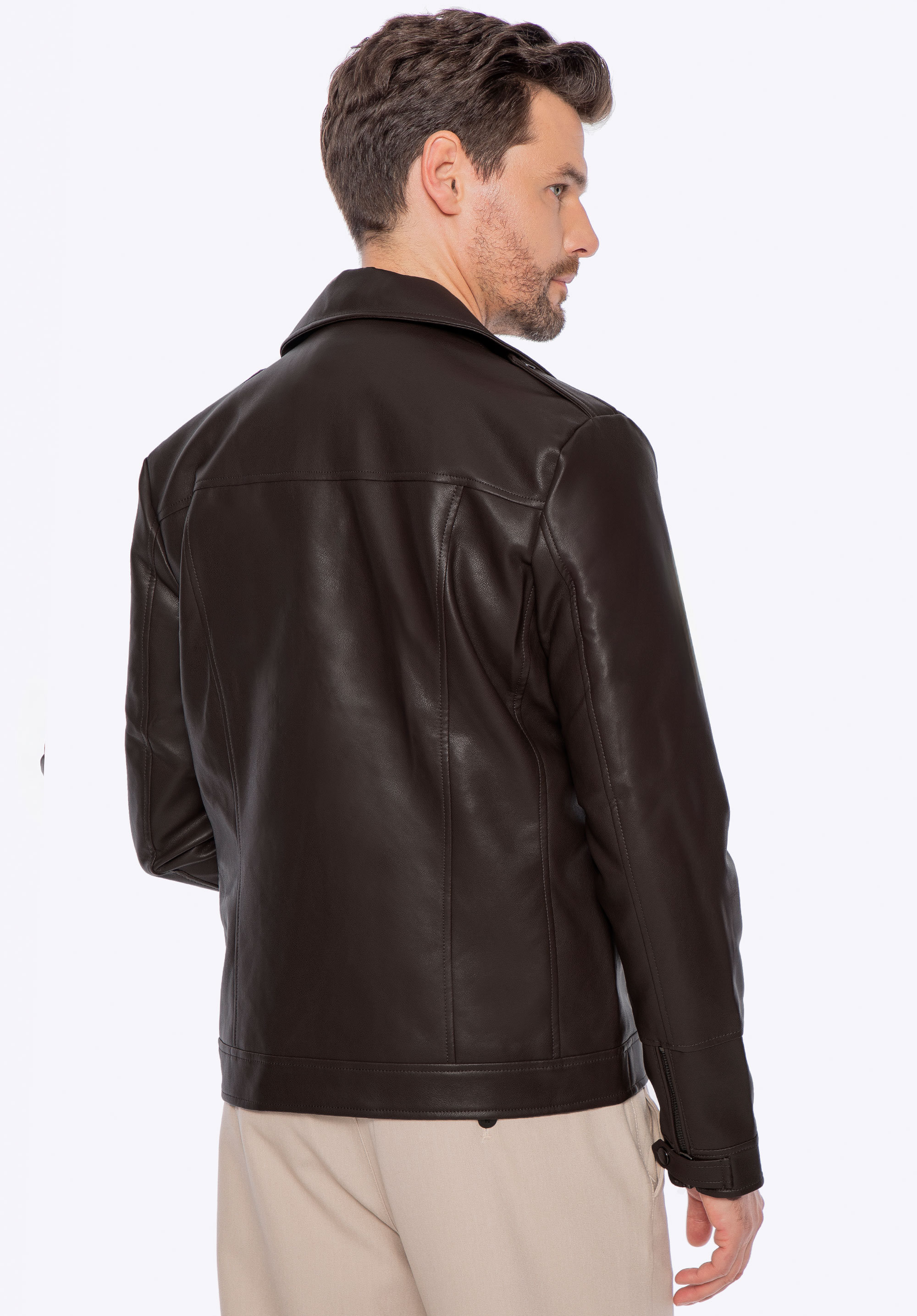 Pánska ramones bunda z ekokože s náramenníkmi tmavohnedá