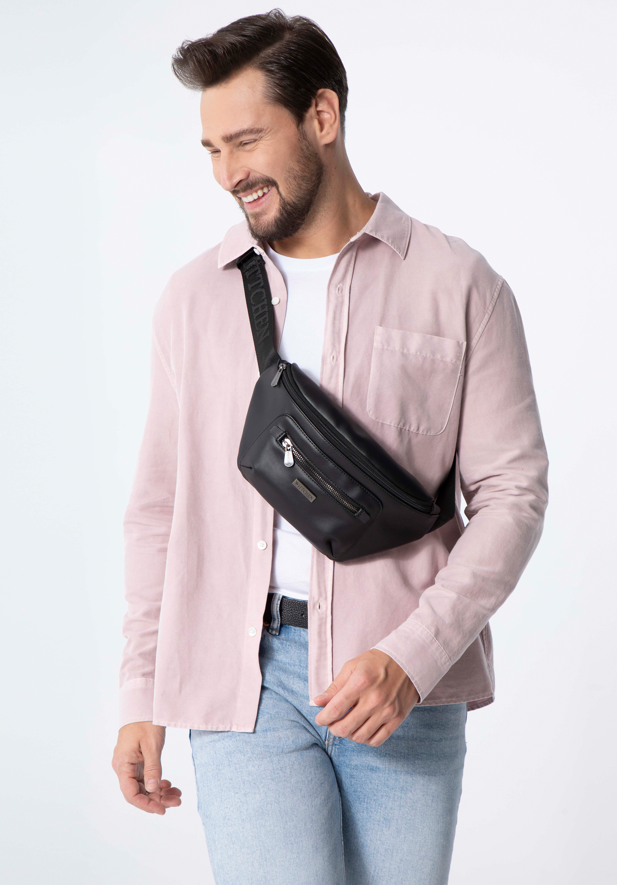 Pánska taška ľadvinka z ekokože s lesklým zipsom vpredu je nadčasovým doplnkom pre mnoho sezón.