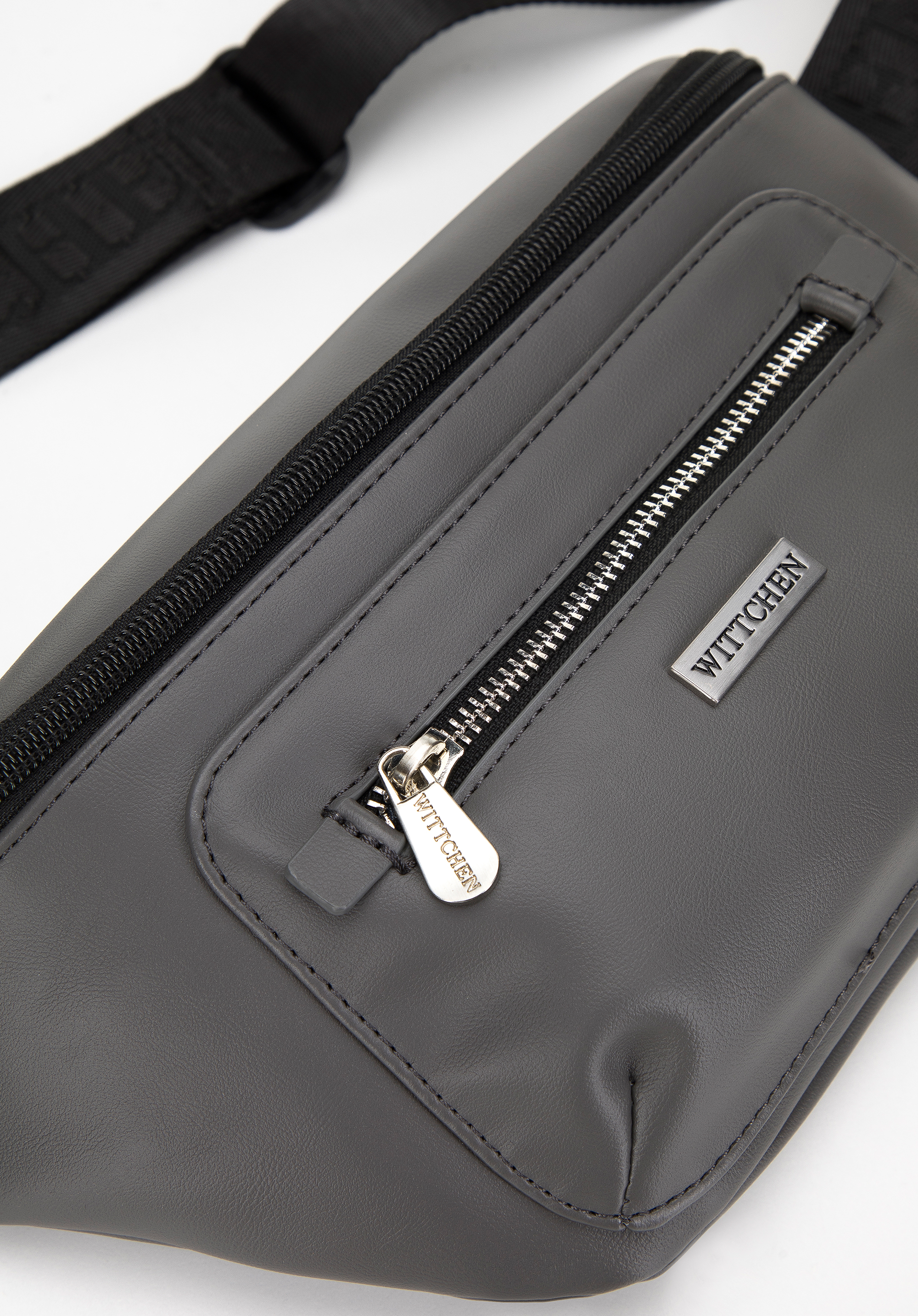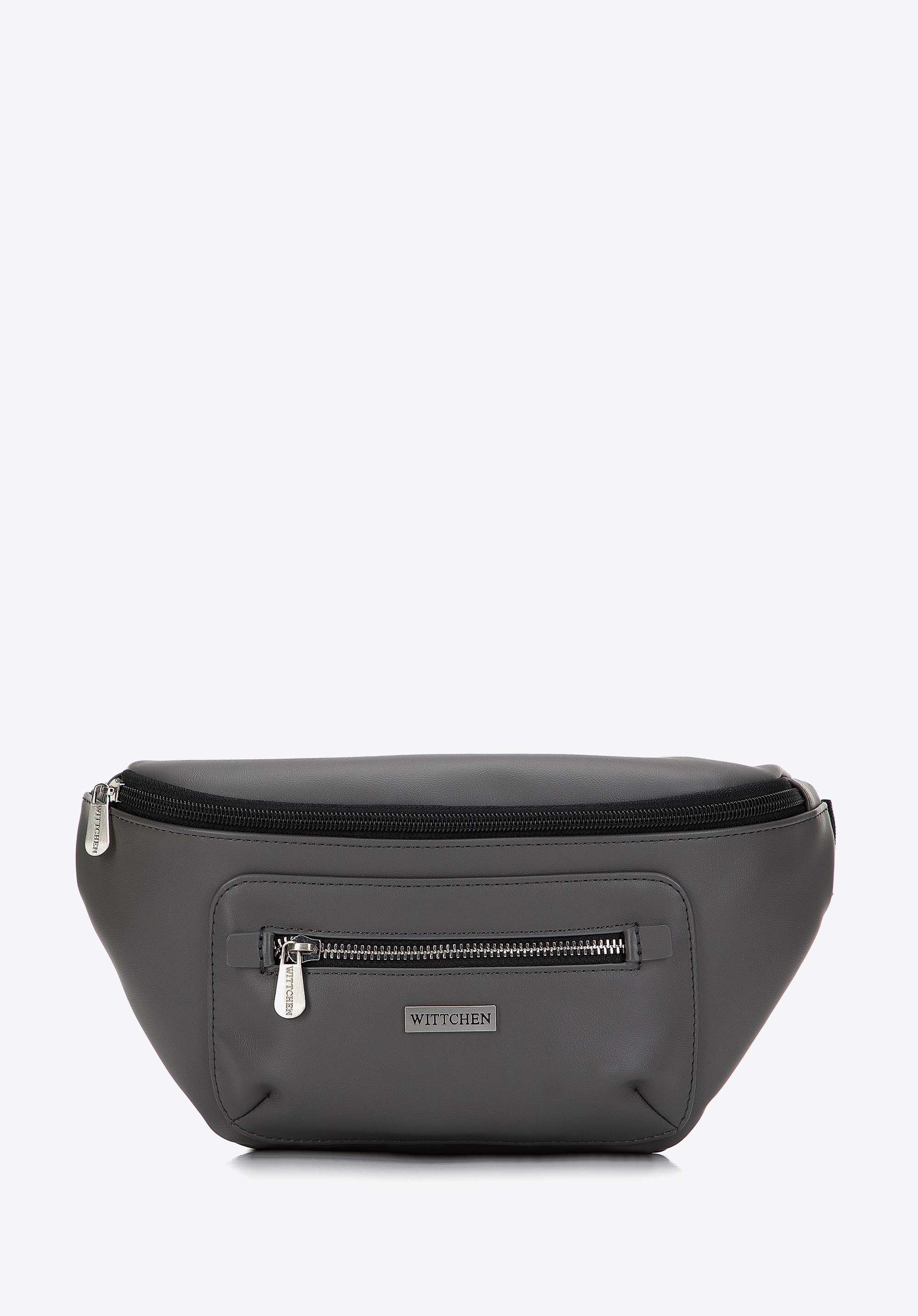 Pánska taška ľadvinka z ekokože s lesklým zipsom vpredu je nadčasovým doplnkom pre mnoho sezón.