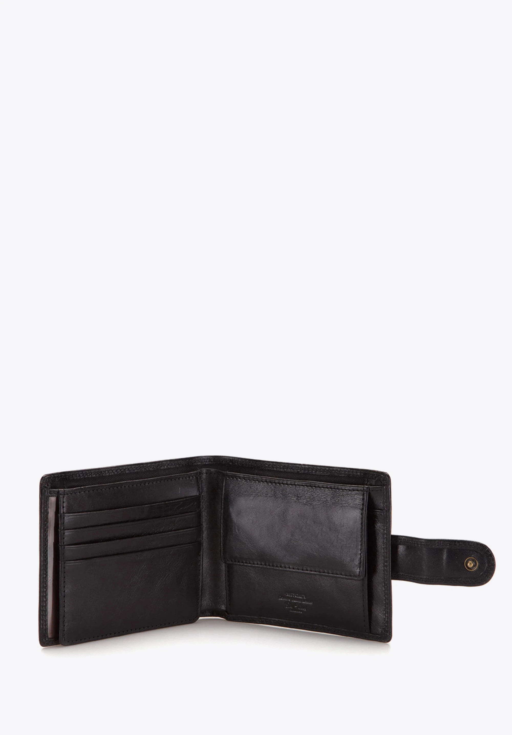 Stredne veľká pánska peňaženka vyrobená mimoriadne starostlivo a esteticky je funkčným doplnkom, ktorého dizajn ocení každý elegantný muž. Model ideálny pre pánov, ktorým záleží na elegantnom vzhľade každého doplnku.