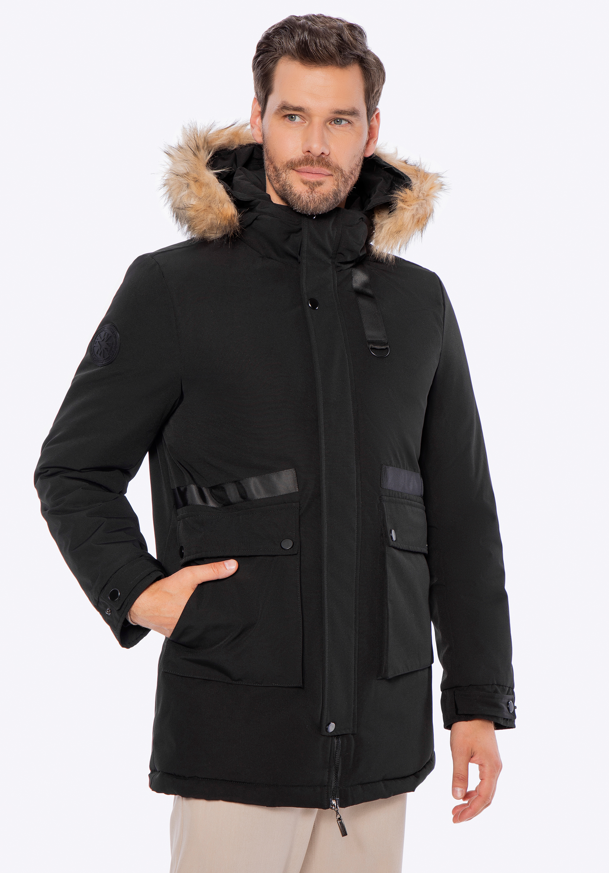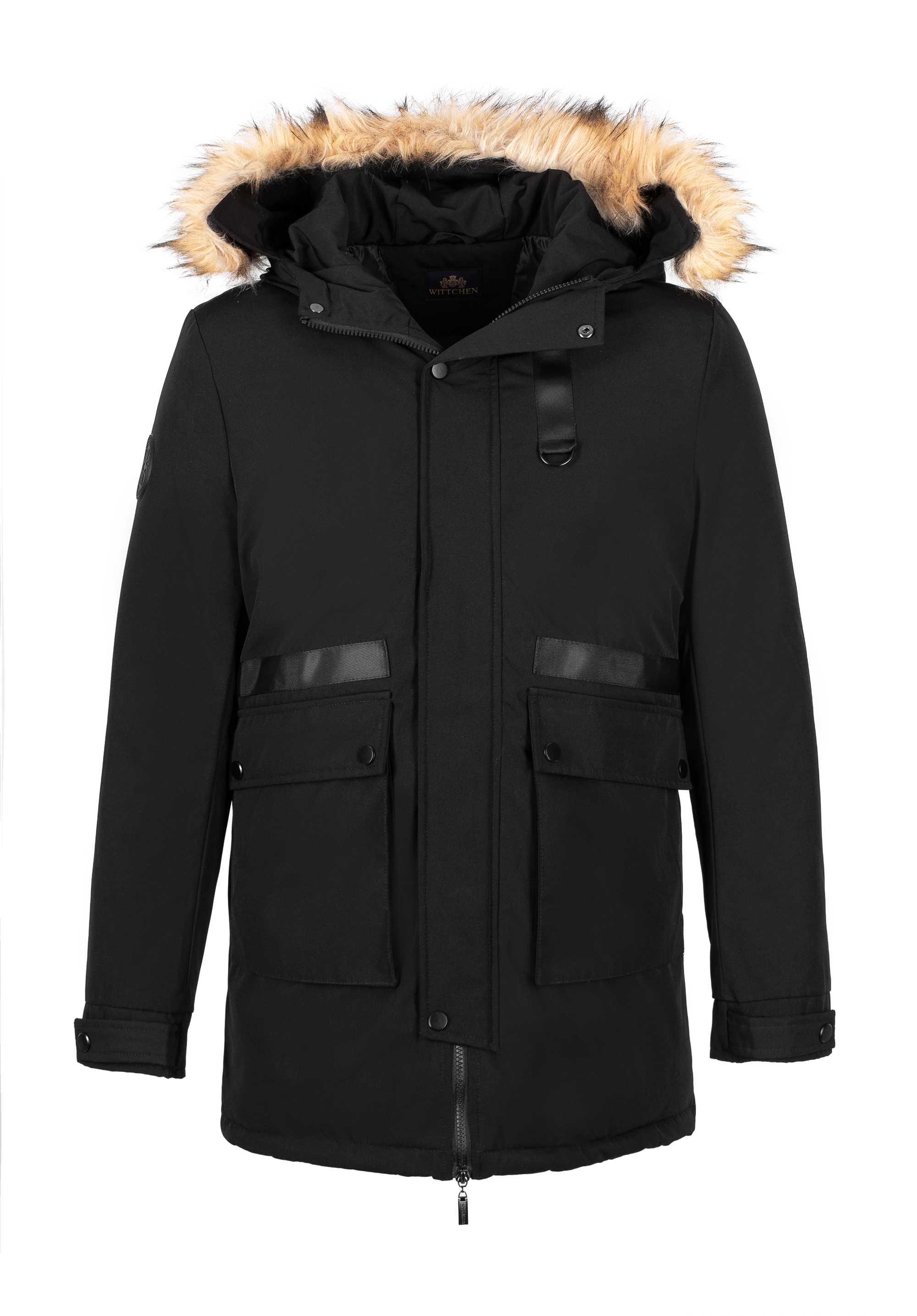 - neodnímateľná kapucňa s odnímateľnou umelou kožušinou pomocou gombíkov;