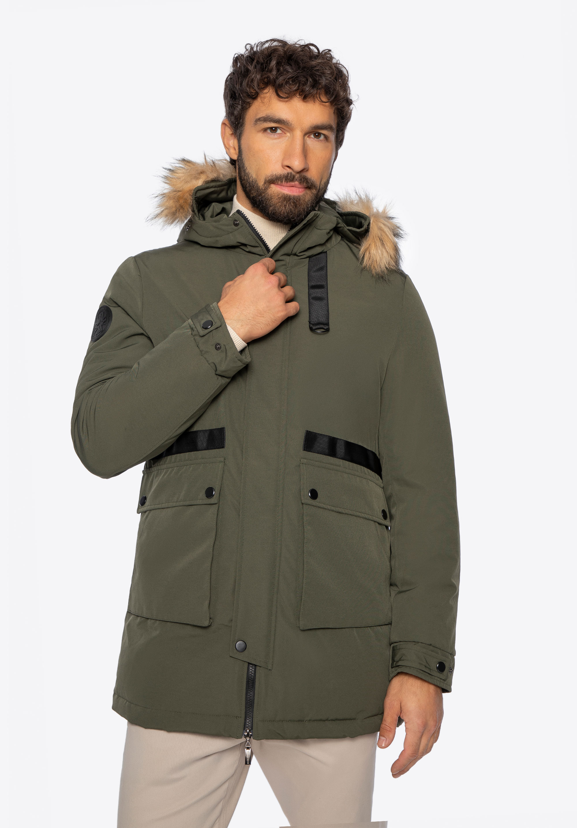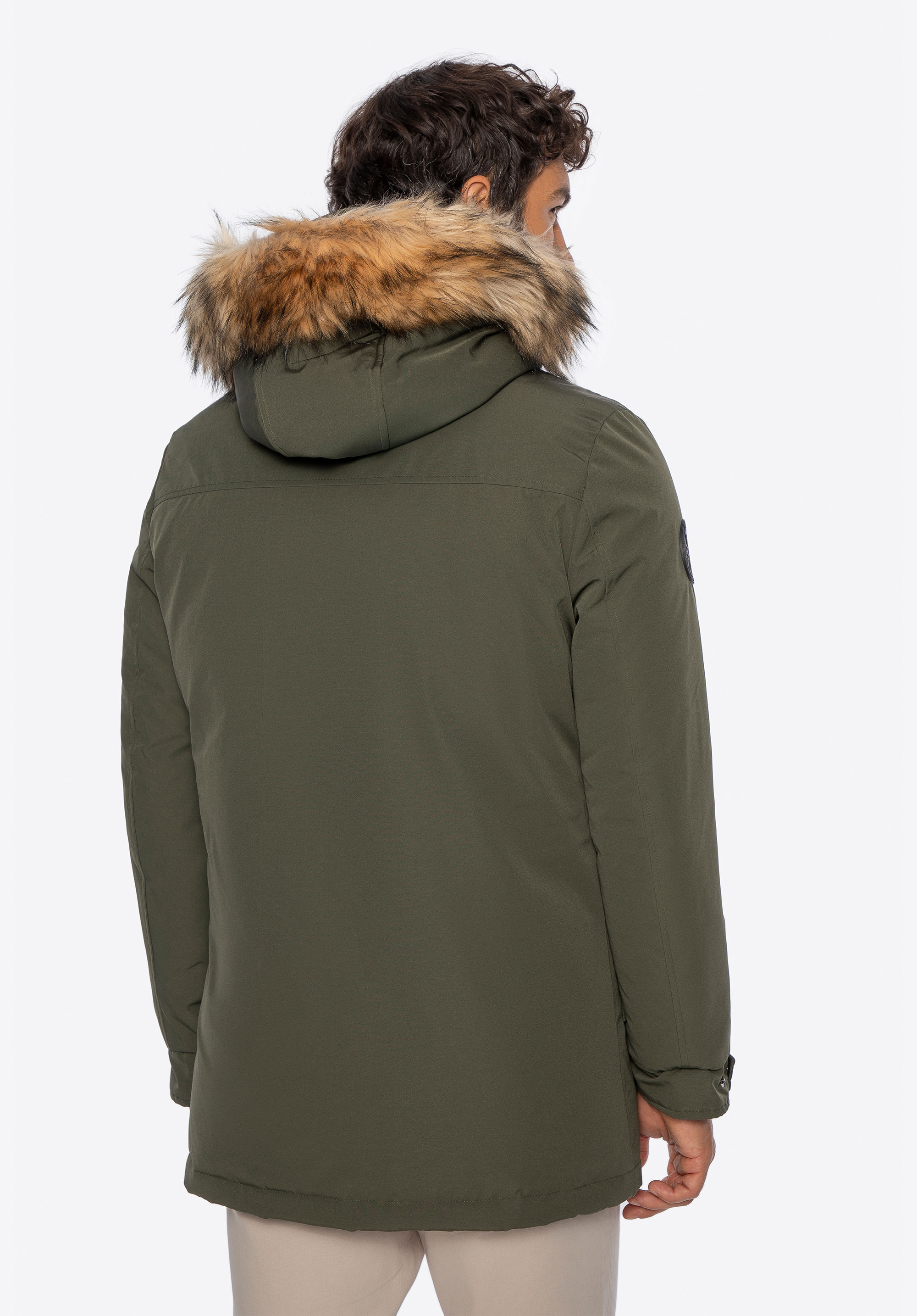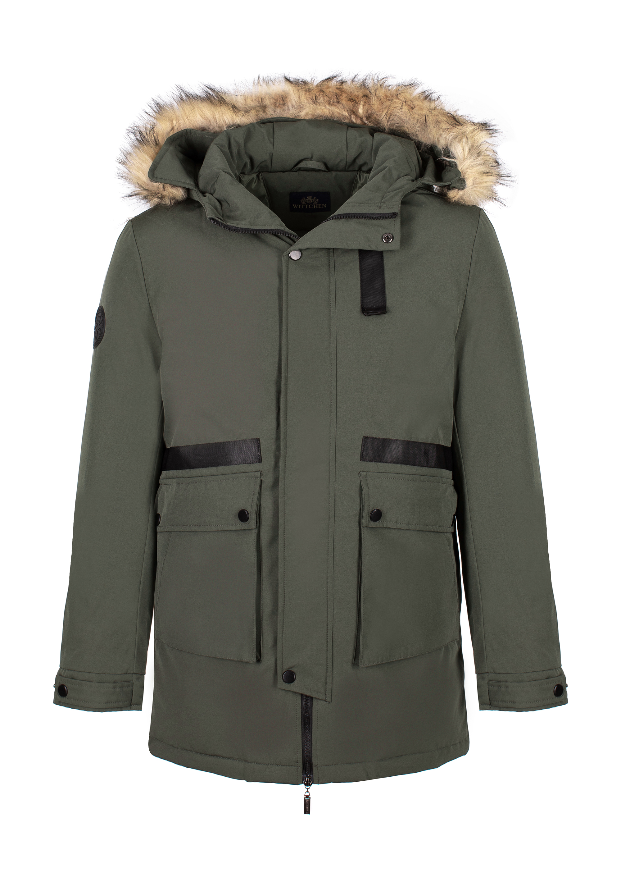 - neodnímateľná kapucňa s odnímateľnou umelou kožušinou pomocou gombíkov;