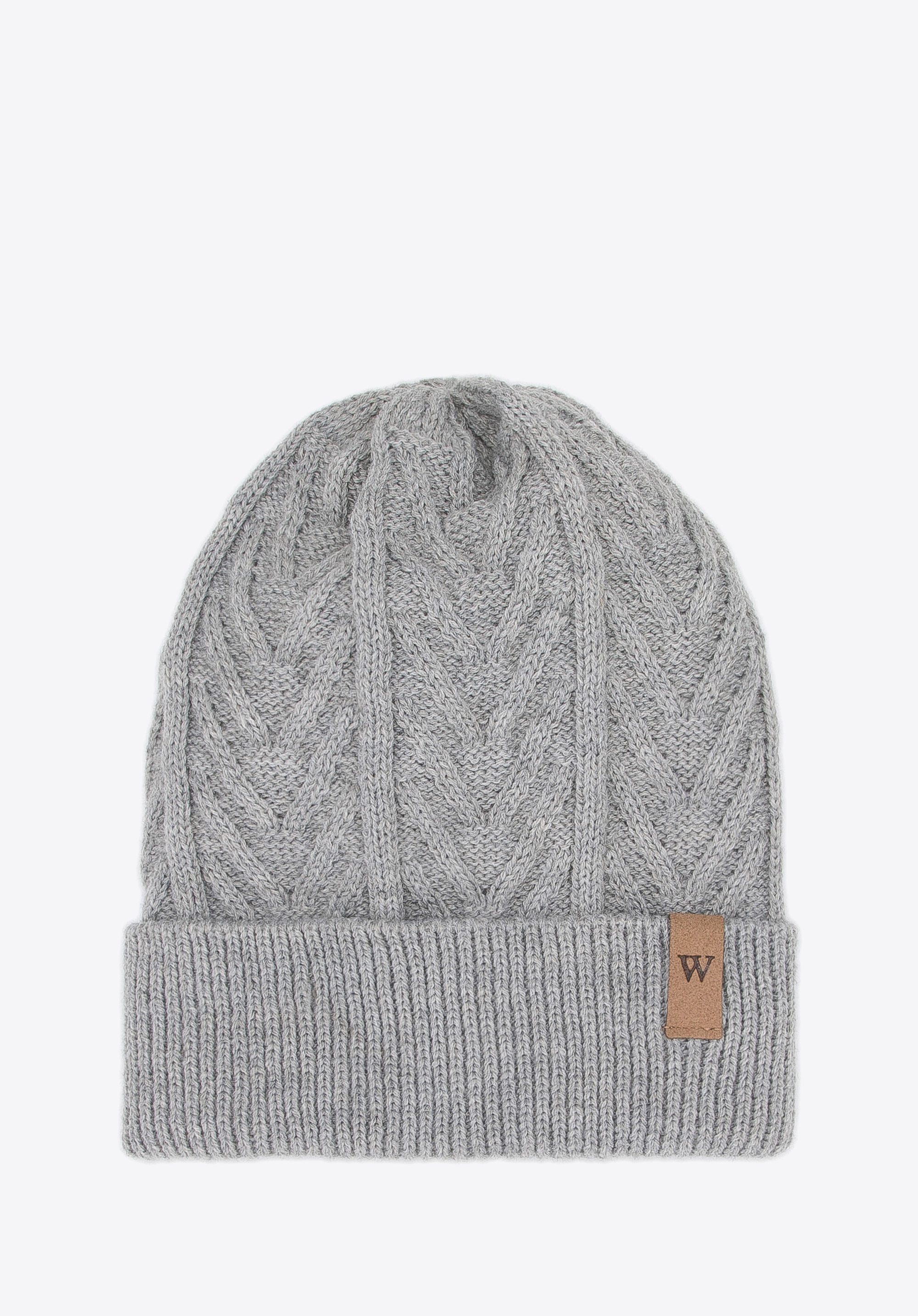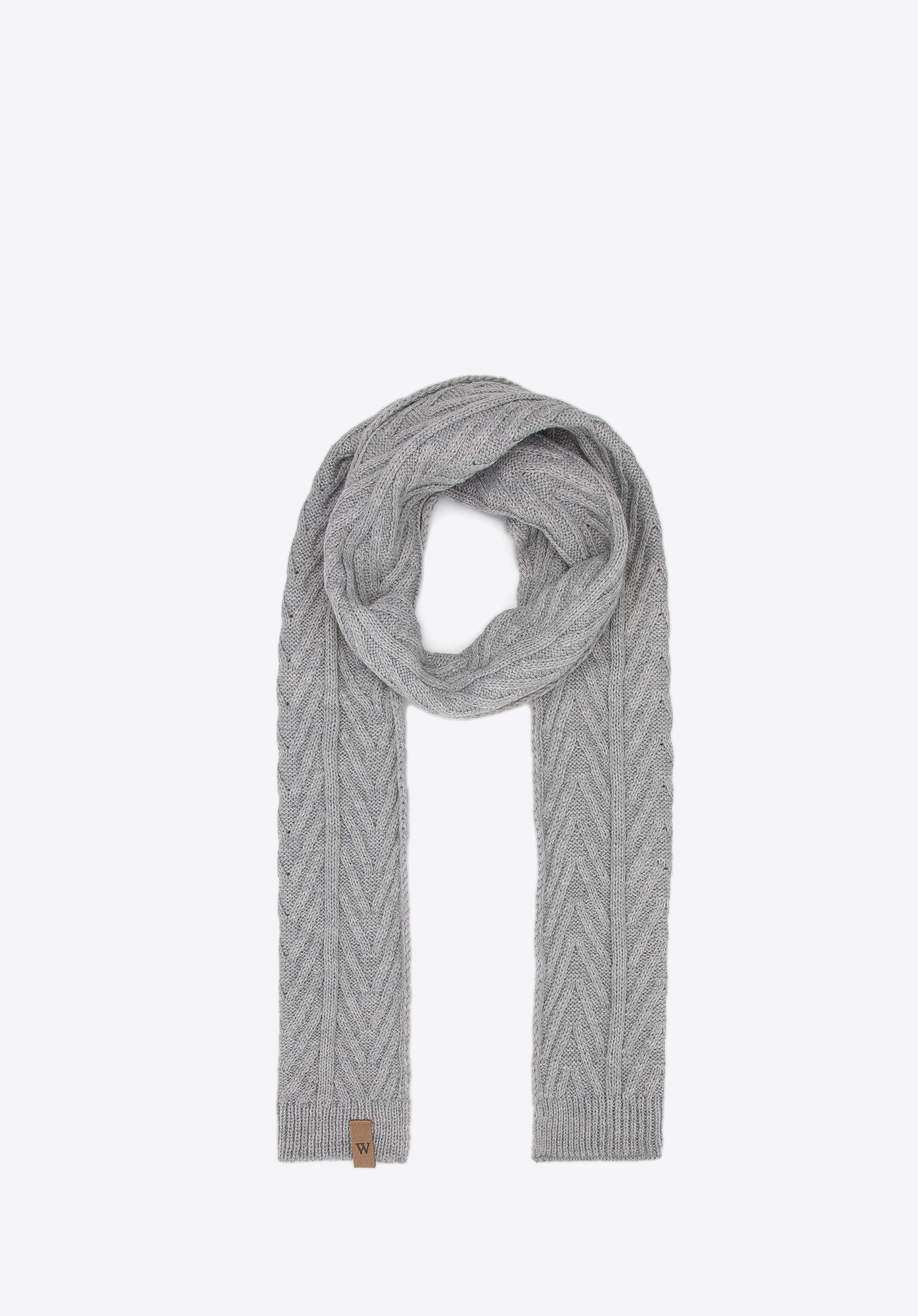 čiapka a šál s klasickou vrkočovou väzbou. Čiapka je vo vrchnej časti trošku voľná, vďaka čomu vyzerá efektne, keď je mierne posunutá smerom dozadu. Šál je úzky, ale pomerne hustá väzba vám poskytne maximálne teplo.
