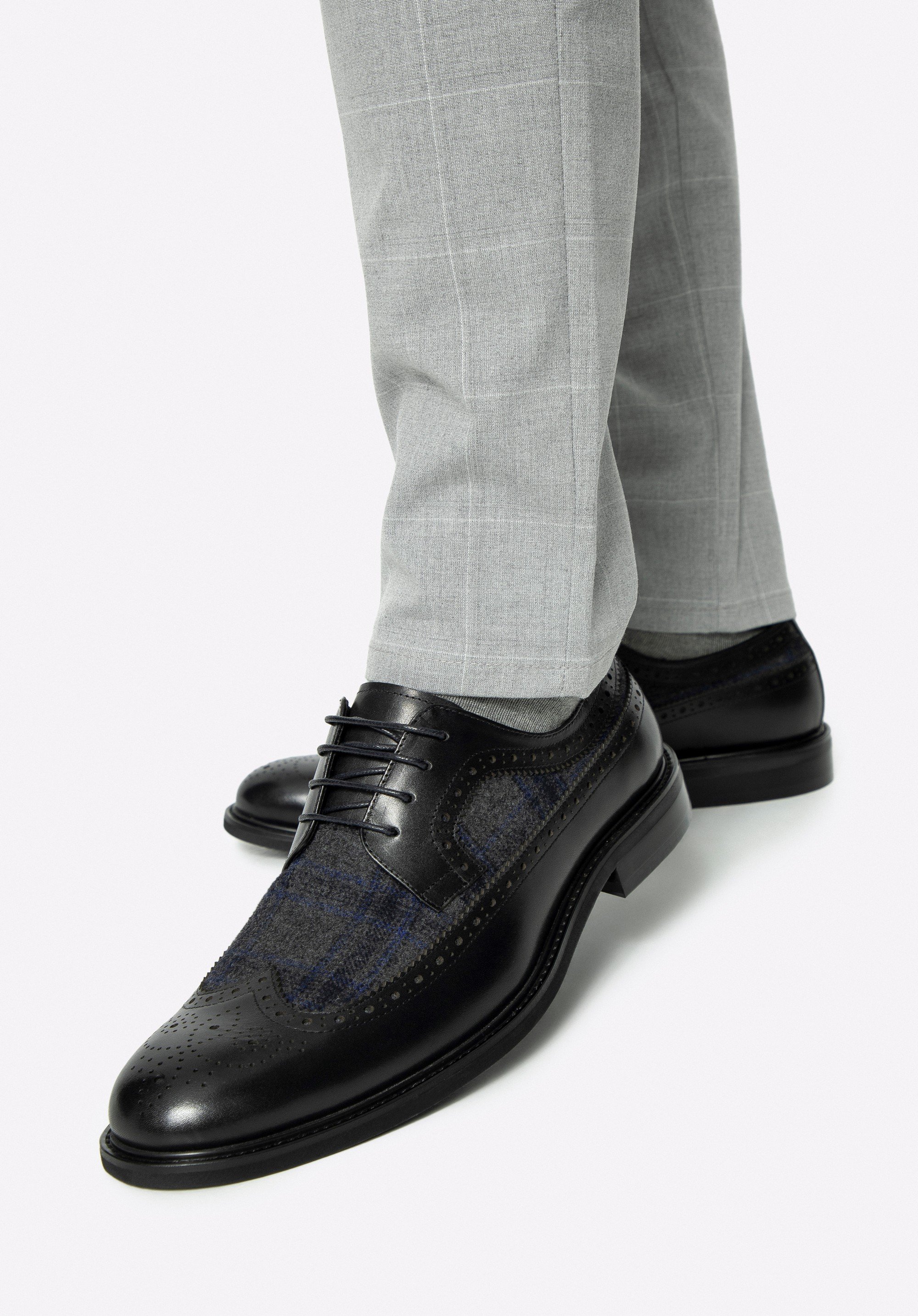 Pánske derby topánky s vložkou v rybej kosti čierne