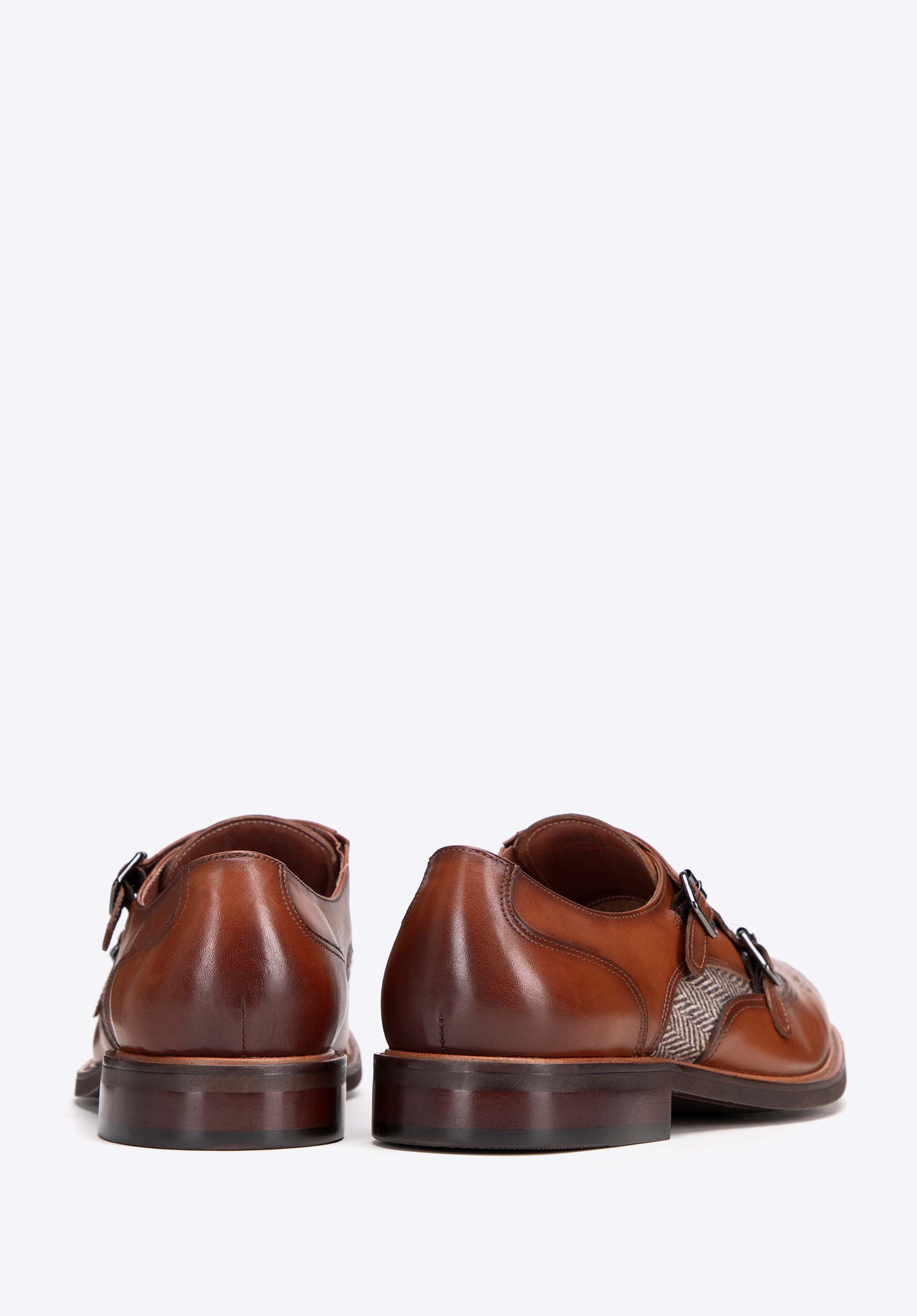 Objavte neodolateľnú eleganciu a pohodlie v pánskych poltopánkach double monki. Každý pár je starostlivo vyrobený z vysokokvalitnej prírodnej lícovej kože, čo zaručuje nielen dlhú životnosť, ale aj jedinečný vzhľad. Podšívka, vyrobená z mäkkej kože a tkaniny, zaisťuje neporovnateľný komfort počas celého dňa. Vložka v rybej kosti dodáva topánkam Double Monki mimoriadny pôvab a výraz s dôrazom na ich vysokú kvalitu a prepracovanosť. Vďaka pevnej konštrukcii a vysokokvalitným materiálom si ich užijete po mnoho sezón.