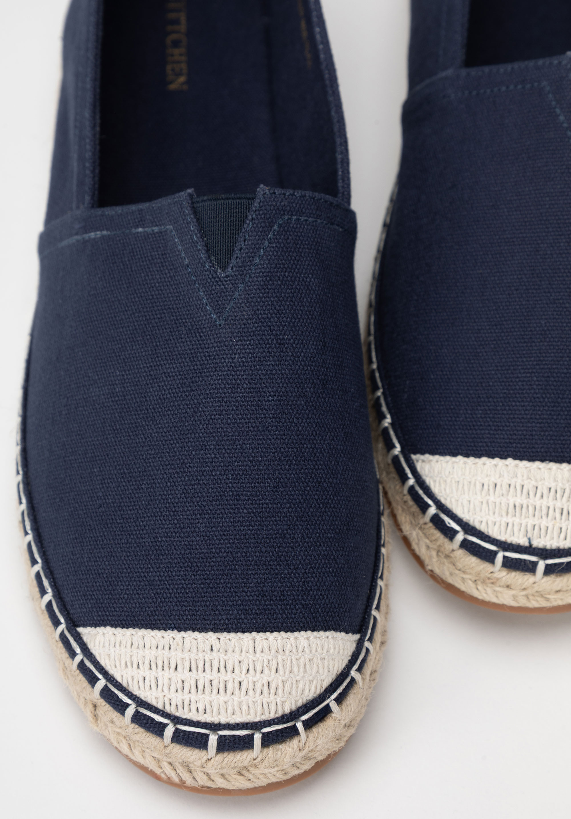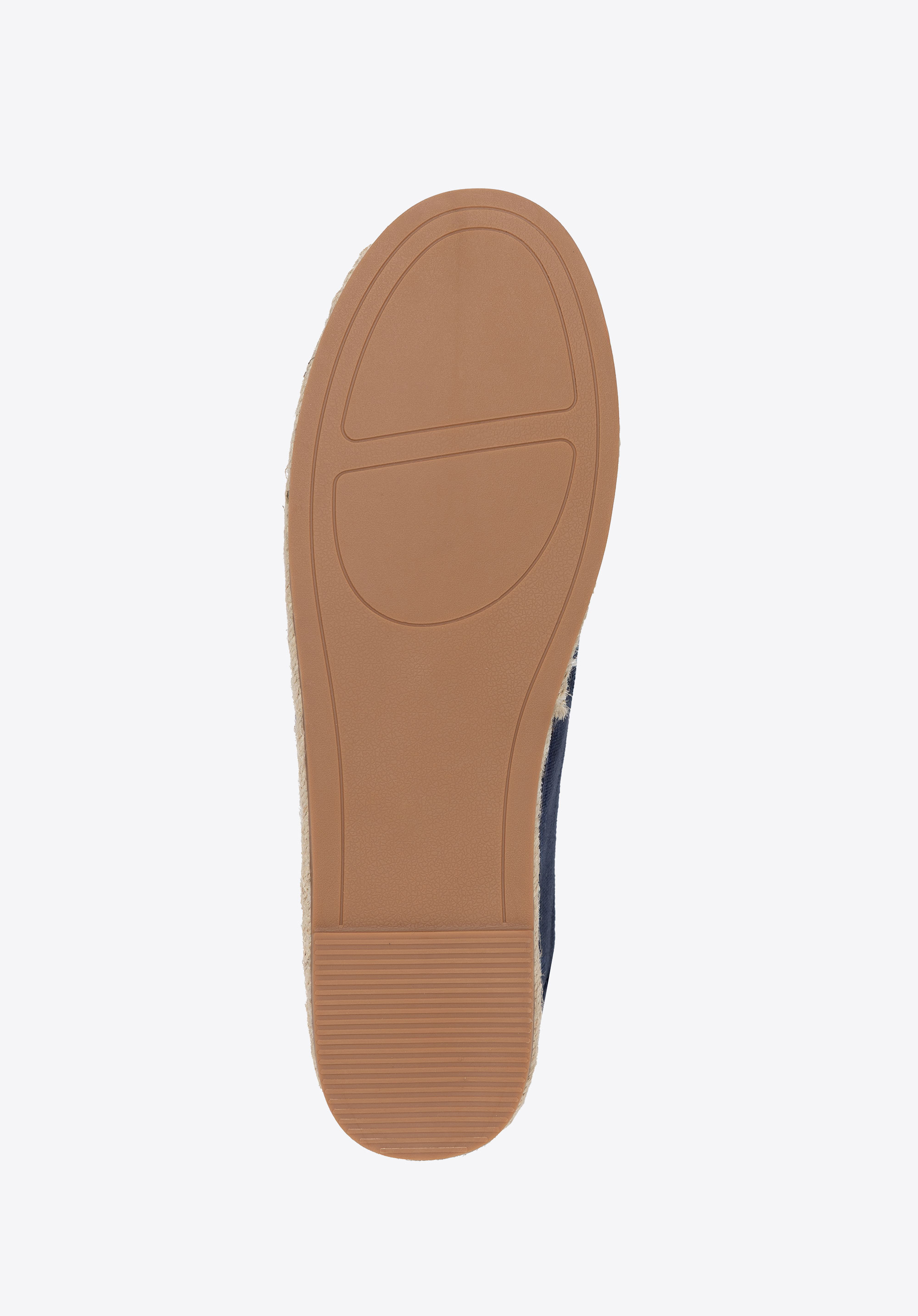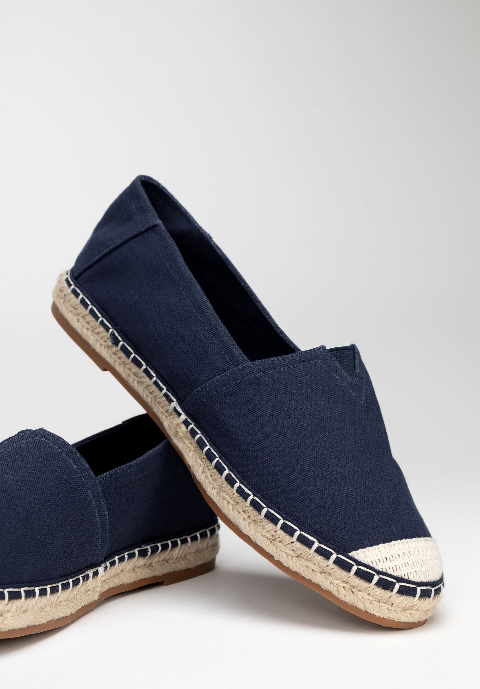 Tieto espadrilky, vyrobené z vysoko kvalitných materiálov, kombinujú pohodlie a štýl, vďaka čomu sú ideálne na každodenné nosenie. Vďaka okrúhlej špičke a plochému podpätku, ktoré sú charakteristickými znakmi tohto klasického dizajnu, ponúkajú celodenné pohodlie. **Ozdobný lem z povrazca** pozdĺž podrážky a špičky dodáva topánkam nádych letného šarmu a dodáva im uvoľnený, prirodzený vzhľad.