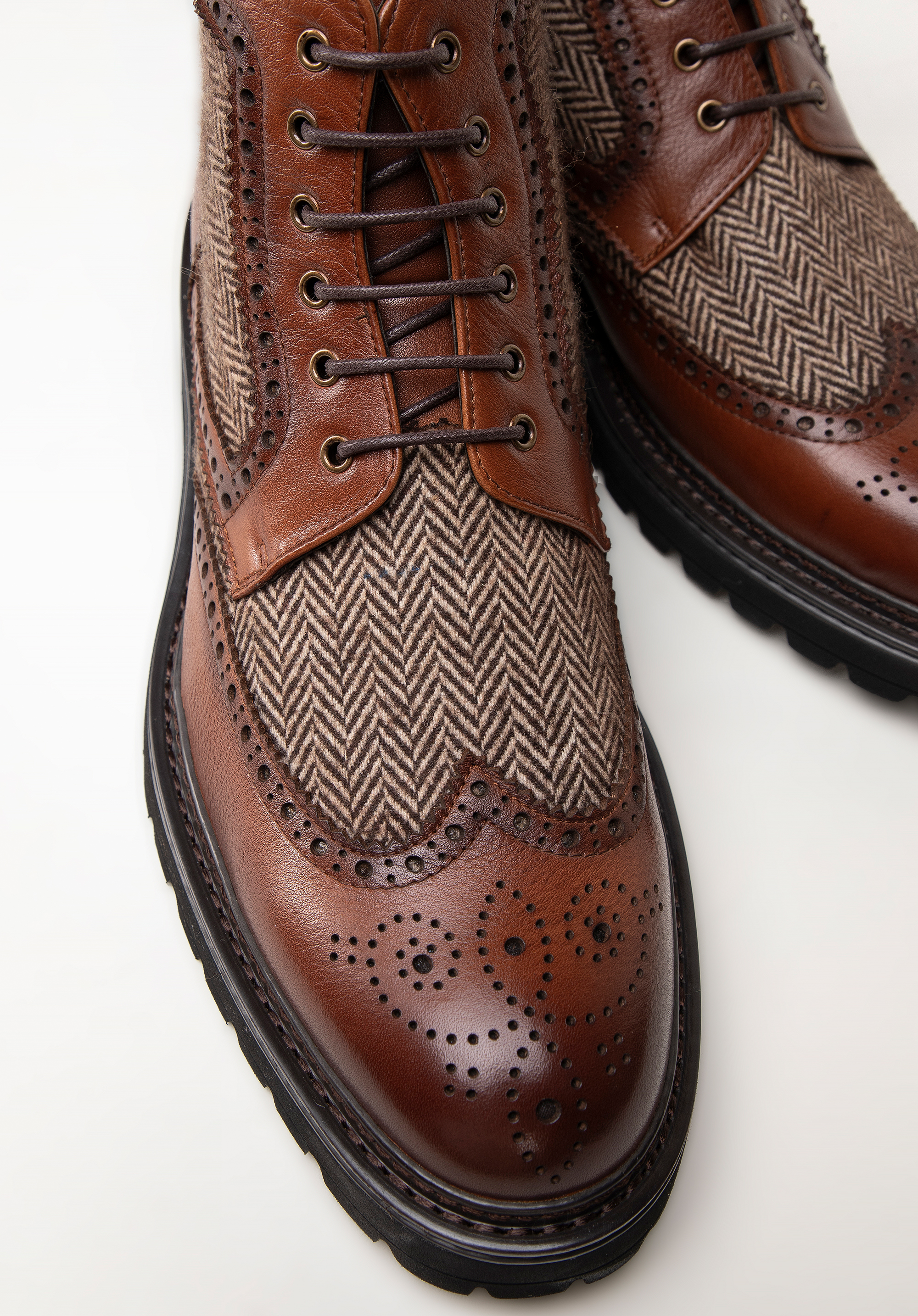 - Charakteristické dekorácie typu brogue poskytujú obuvi eleganciu a nenapodobniteľný vzhľad.