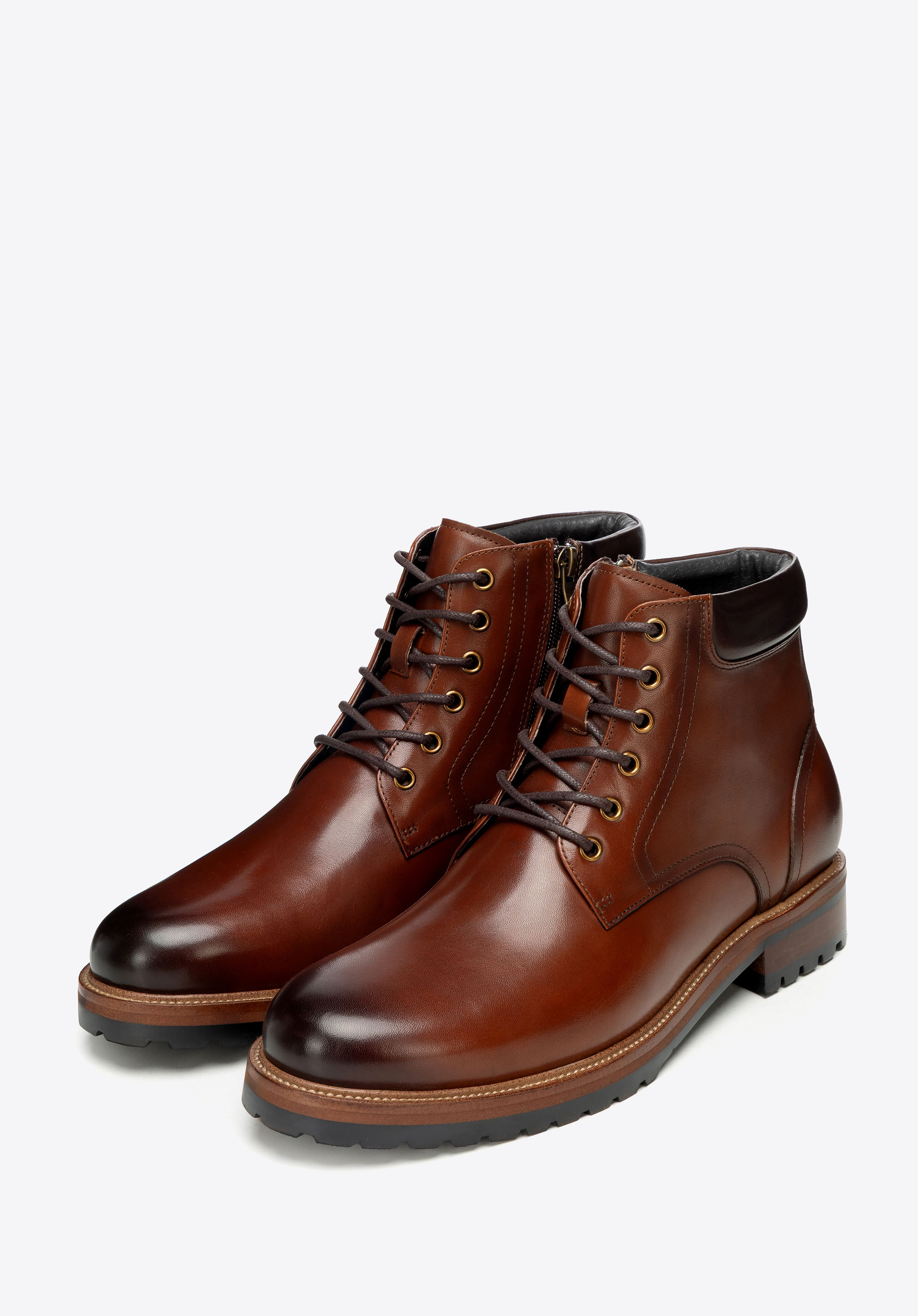 Objavte dokonalú zmes klasického štýlu a moderného pohodlia s pánskymi koženými čižmami vyrobenými z prémiovej prírodnej kože . Elegantná mandľová špička dodáva čižmám elegantnú siluetu, zatiaľ čo premyslene navrhnuté prvky spájajú pohodlie nosenia s praktickými riešeniami. Bočné zipsy umožňujú rýchle obúvanie a vyzuvanie, zatiaľ čo šnúrky vpredu zaisťujú perfektné prispôsobenie. Plochý podpätok a pevná gumená podrážka poskytujú stabilitu a istotu pri každom kroku.