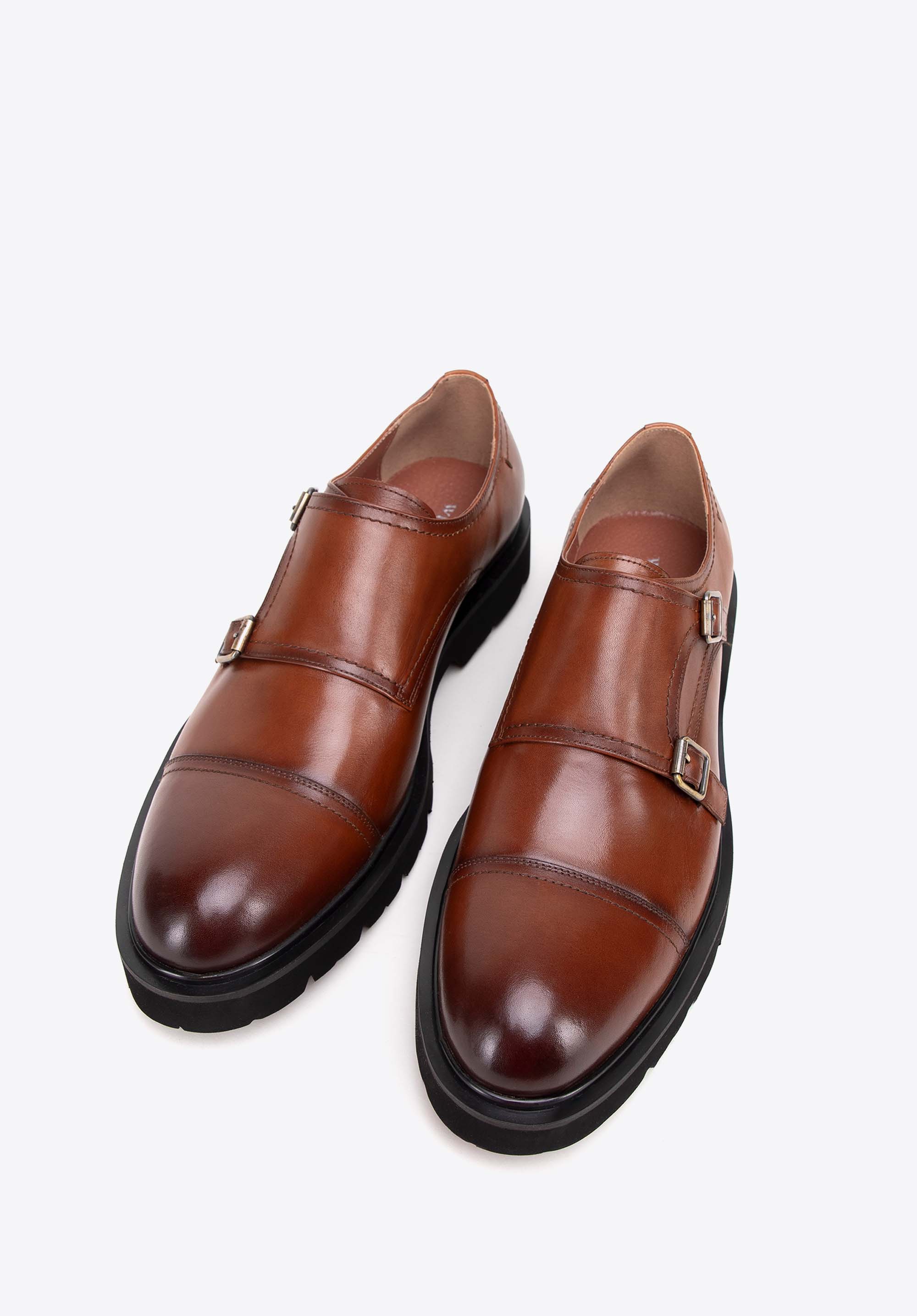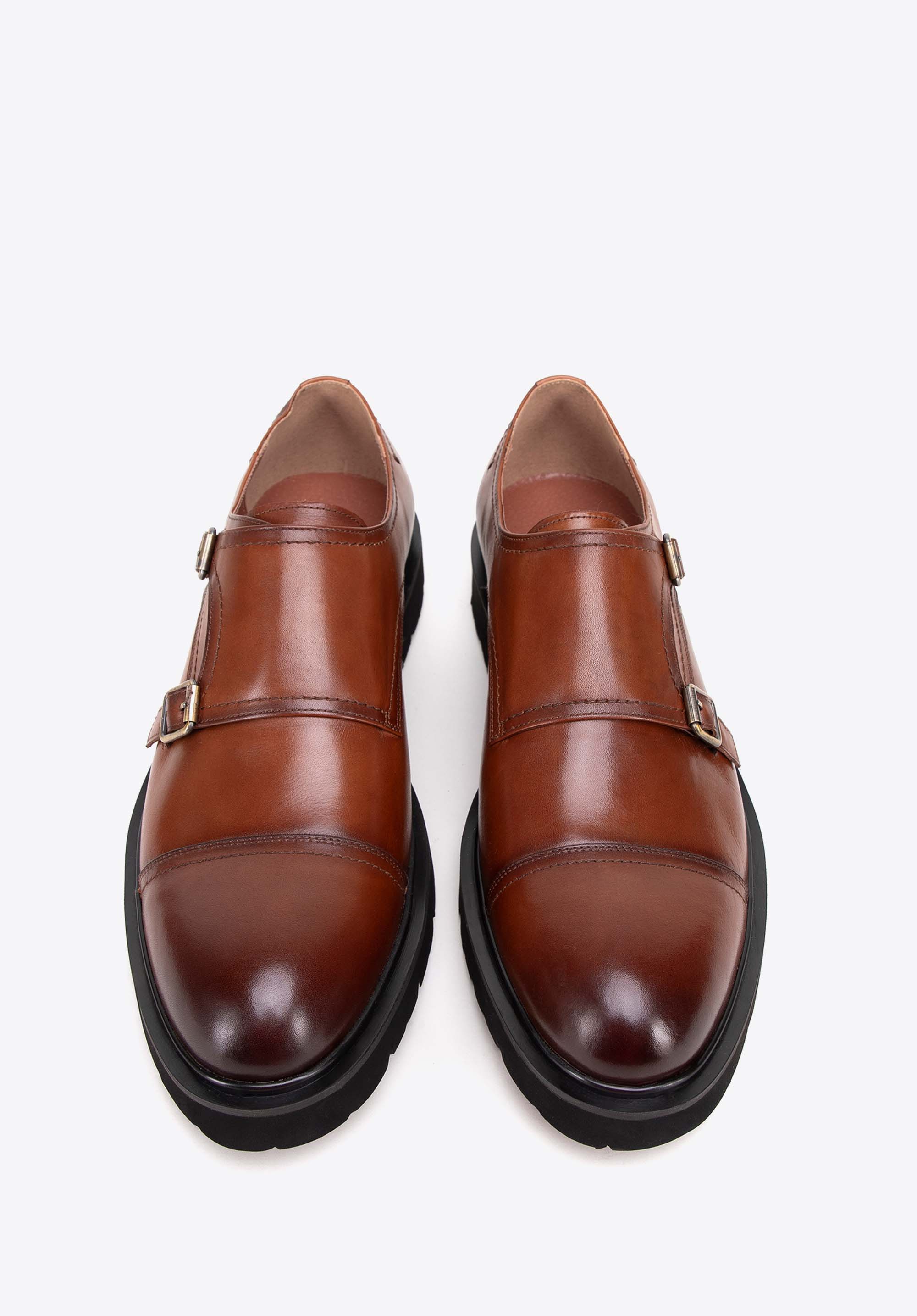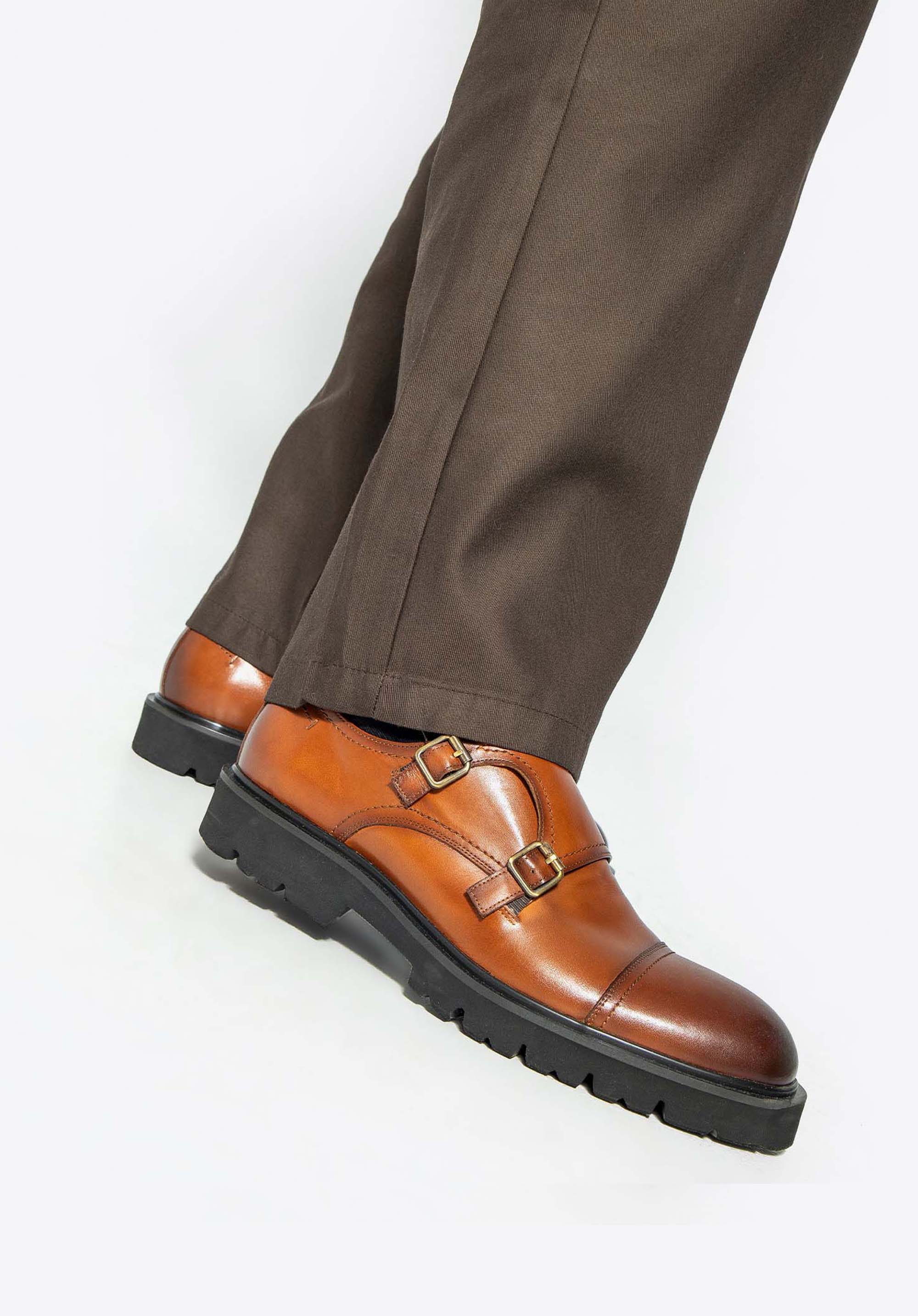 Pánske kožené double monki na hrubej podrážke hnedé