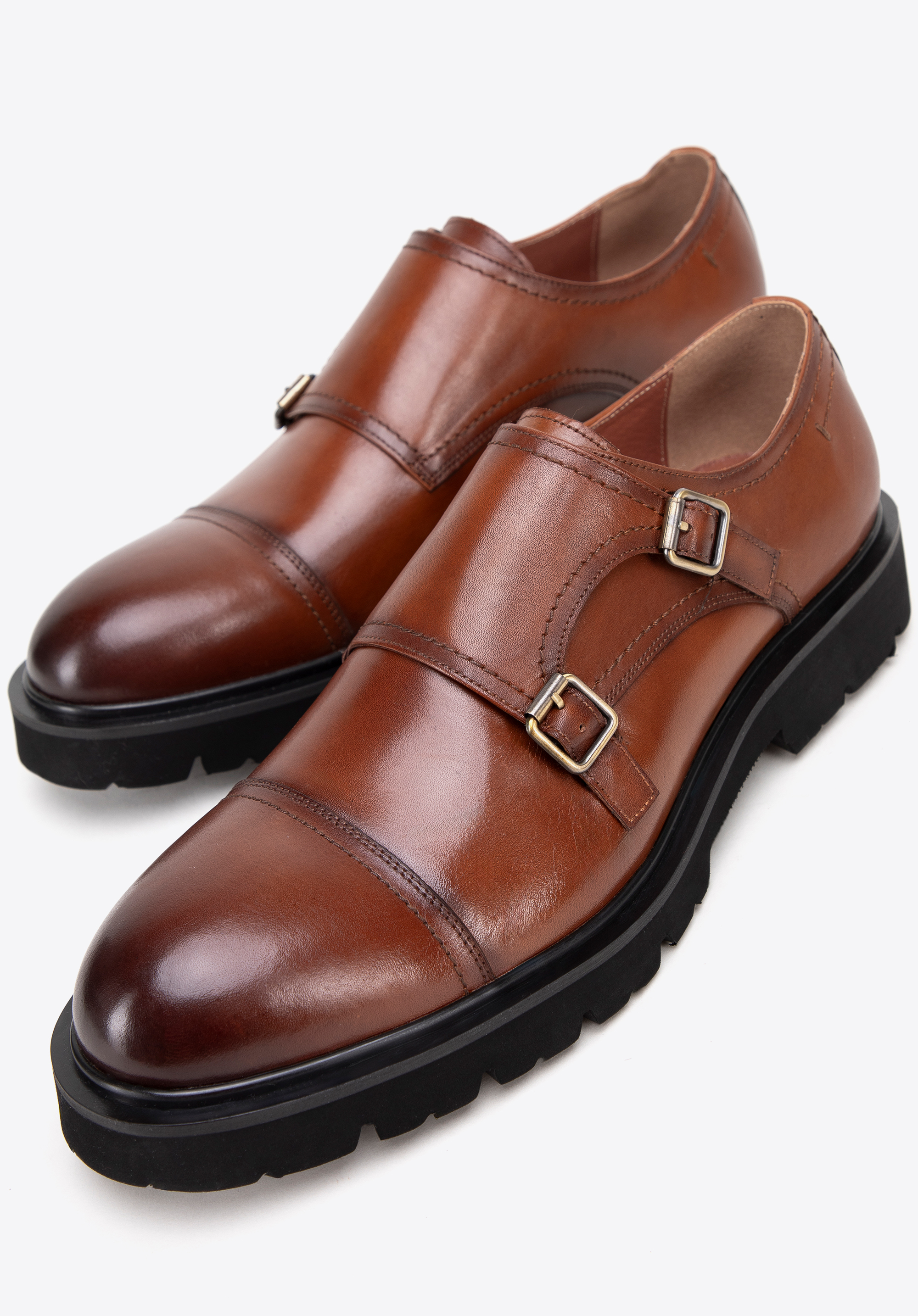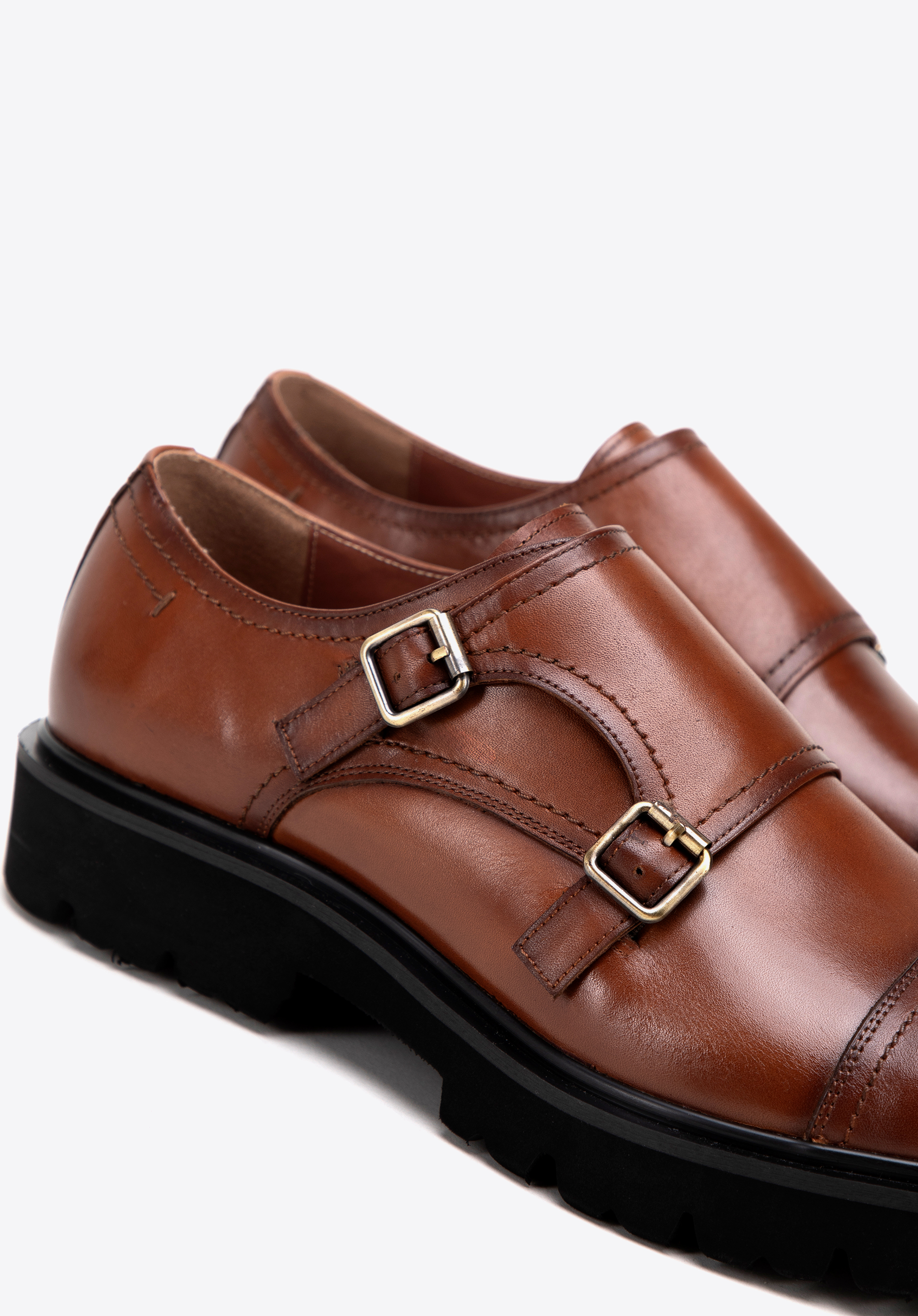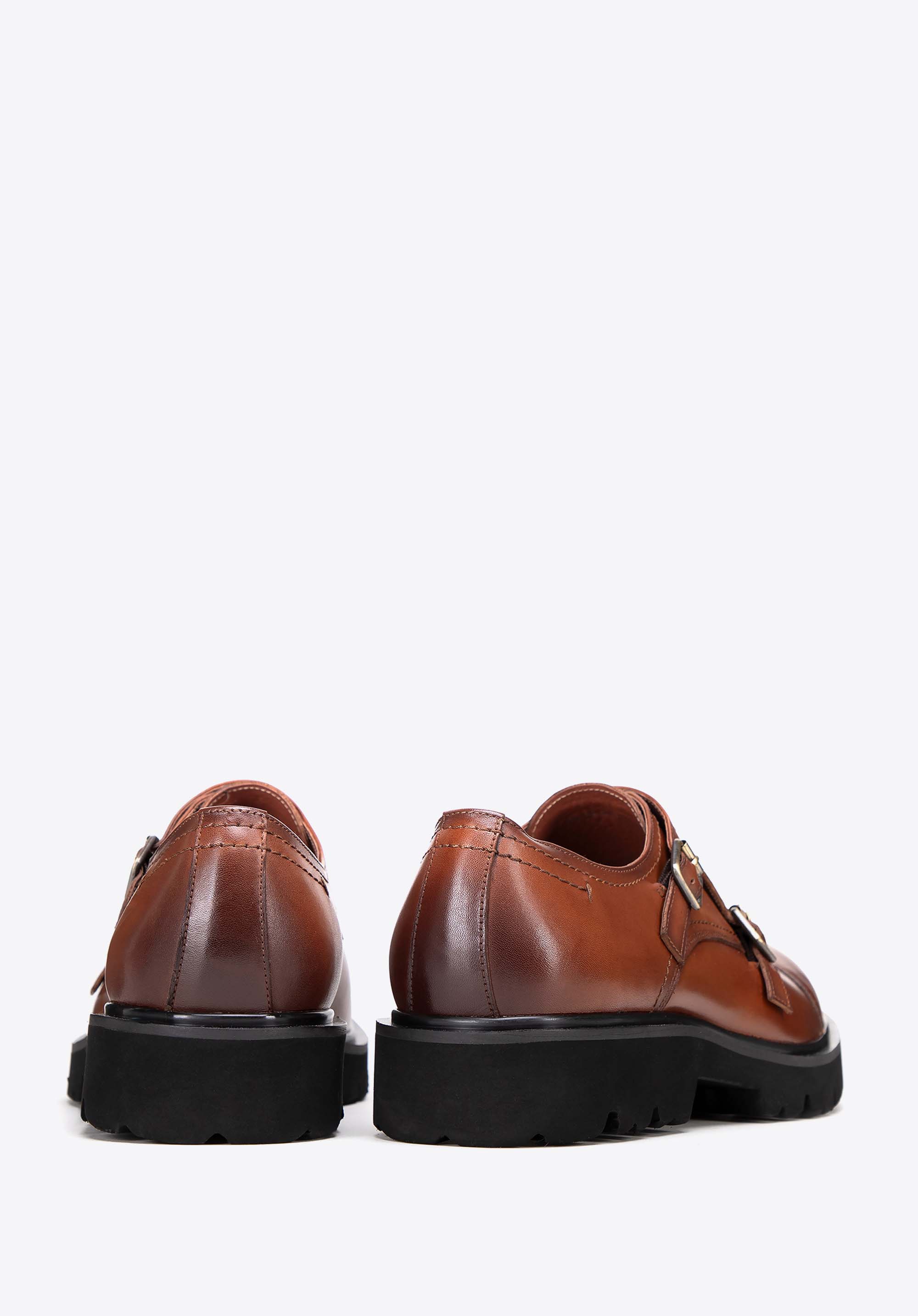 Pánske kožené double monki na hrubej podrážke hnedé