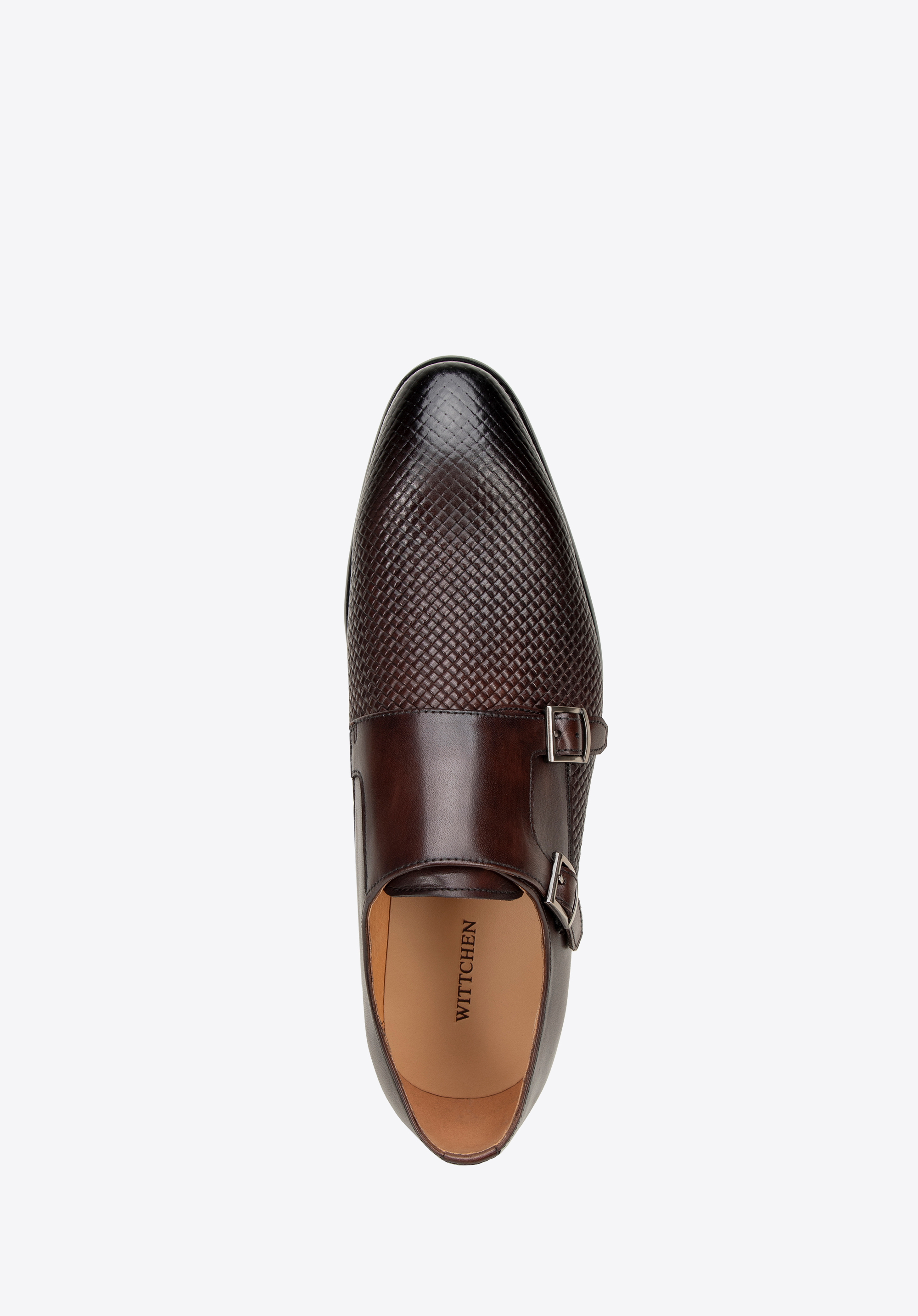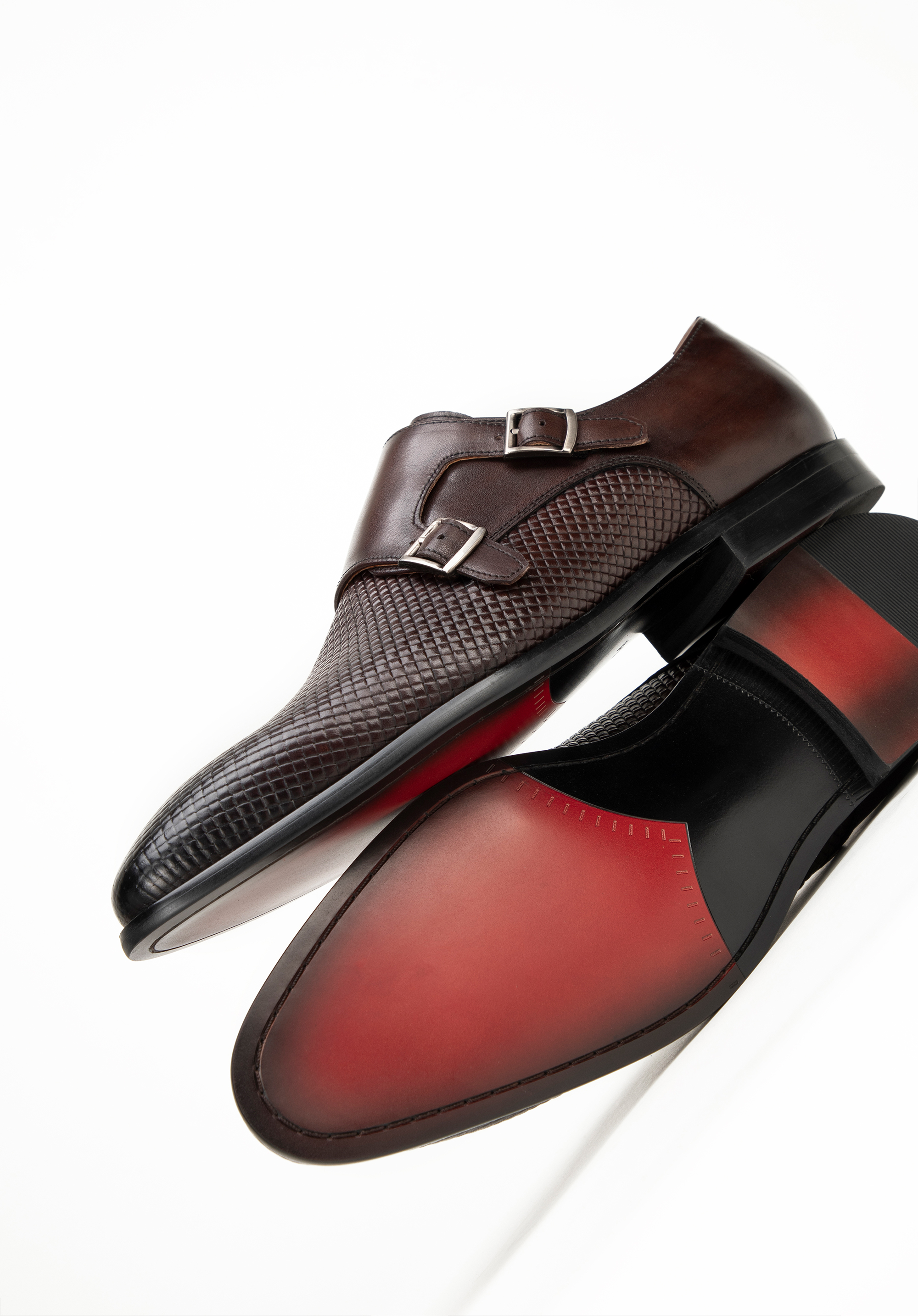 Zažite dokonalú kombináciu klasiky a modernosti s pánskymi poltopánkami typu double monki. Zvršok týchto unikátnych topánok je vyrobený z najkvalitnejšej prírodnej lícovej kože, ktorá zaručuje nielen trvanlivosť, ale aj luxusný vzhľad. Podrážka zaujme odvážnou čiernou farbou v spodnej časti, zatiaľ čo klasická mandľová špička a štvorcové pracky upútavajú pozornosť. Výrazným detailom tohto modelu je úplet na zvršku, ktorý dodáva jedinečný šarm a robí z topánok skutočné majstrovský kúsok.