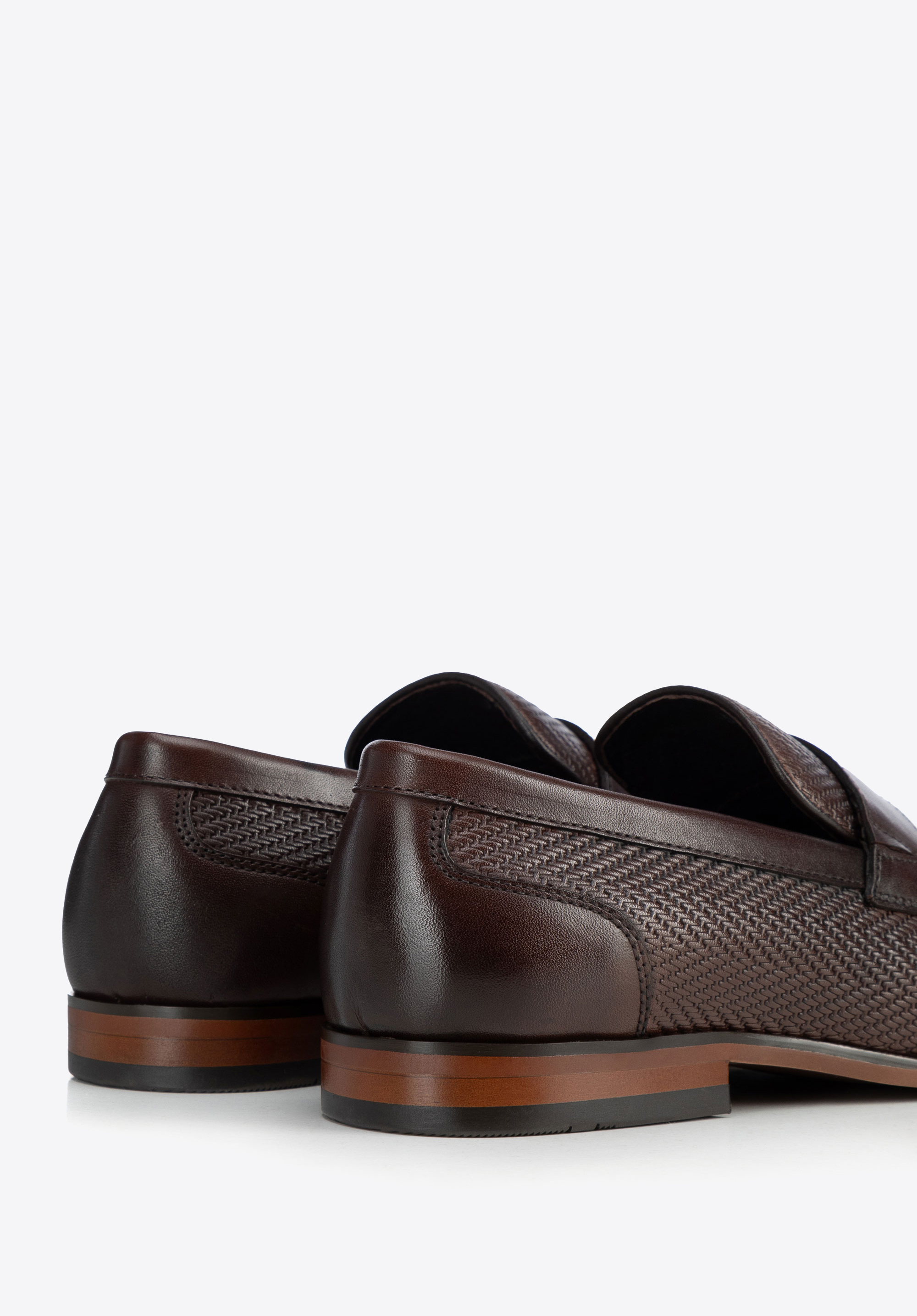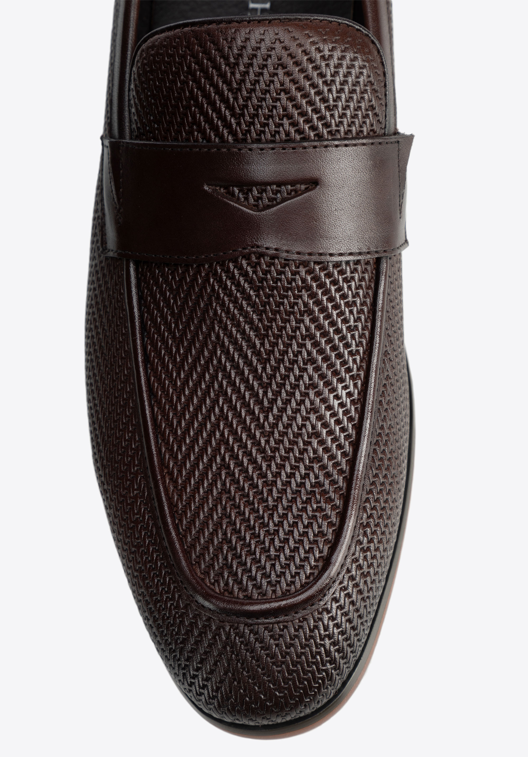Tieto pánske mokasíny kombinujú nadčasovú eleganciu s moderným nádychom – ideálne pre tých, ktorí oceňujú klasický štýl s nádychom sofistikovaného vzhľadu. Sú vyrobené z prémiovej prírodnej kože , majú elegantnú mandľovú špičku a ozdobný remienok s výrezom pre väčší vzhľad. Plochý podpätok a gumená podrážka poskytujú celodenné pohodlie, zatiaľ čo všestranný dizajn ich ľahko kombinuje s formálnym aj elegantne-ležérnym vzhľadom.
