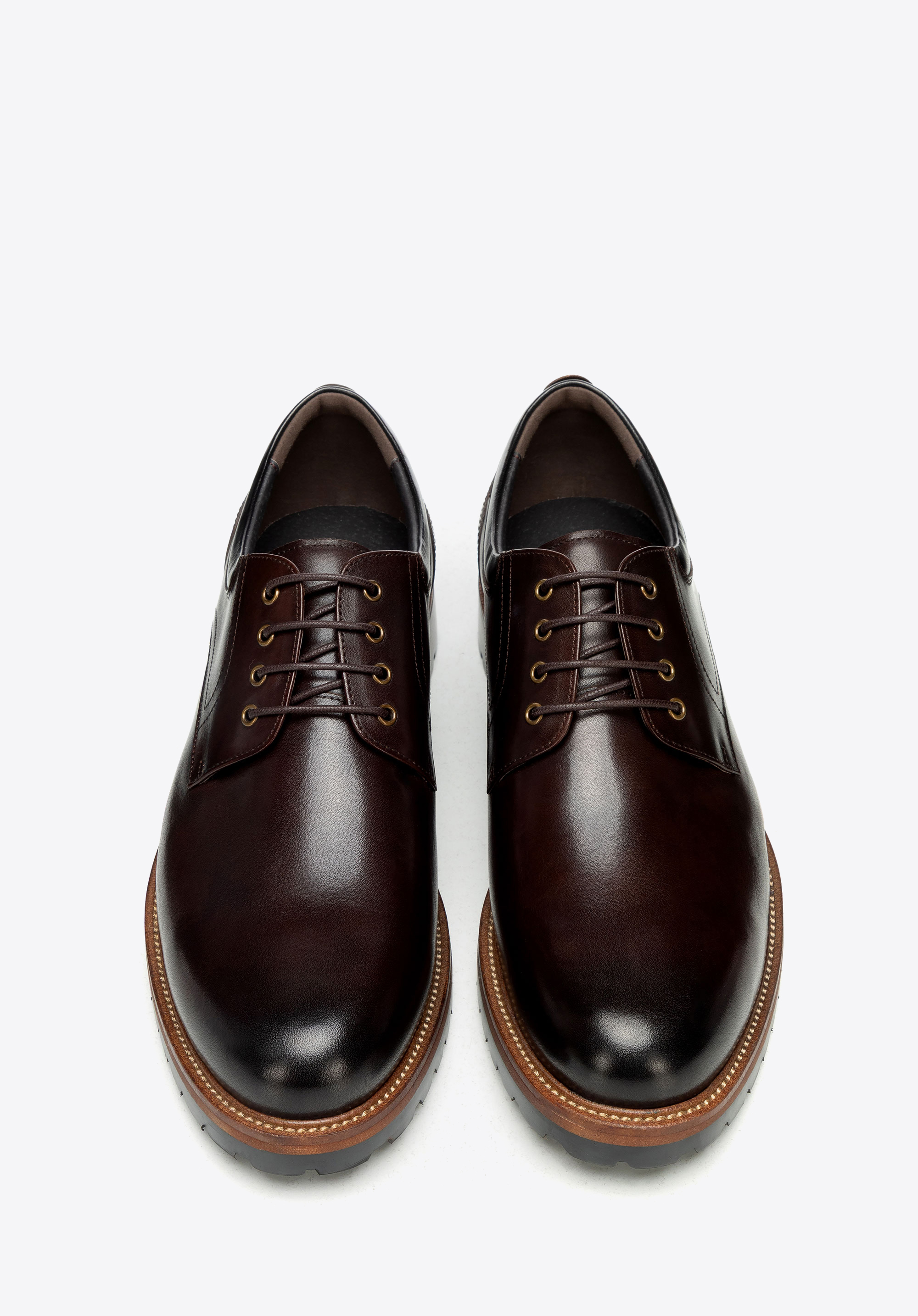Zvoľte si nadčasovú eleganciu a spoľahlivé pohodlie s pánskymi koženými topánkami vyrobenými z prémiovej prírodnej hovädzej kože . Ich elegantný dizajn v derby štýle dokonale spája klasickú estetiku s moderným charakterom, zatiaľ čo mandľový tvar špičky im dodáva rafinovaný a uhladený vzhľad. Šnurovací zvršok zaisťuje perfektné padnutie a plochý podpätok v kombinácii s pevnou gumenou podrážkou v štýle bežeckej obuvi poskytuje stabilitu a istotu pri každom kroku.