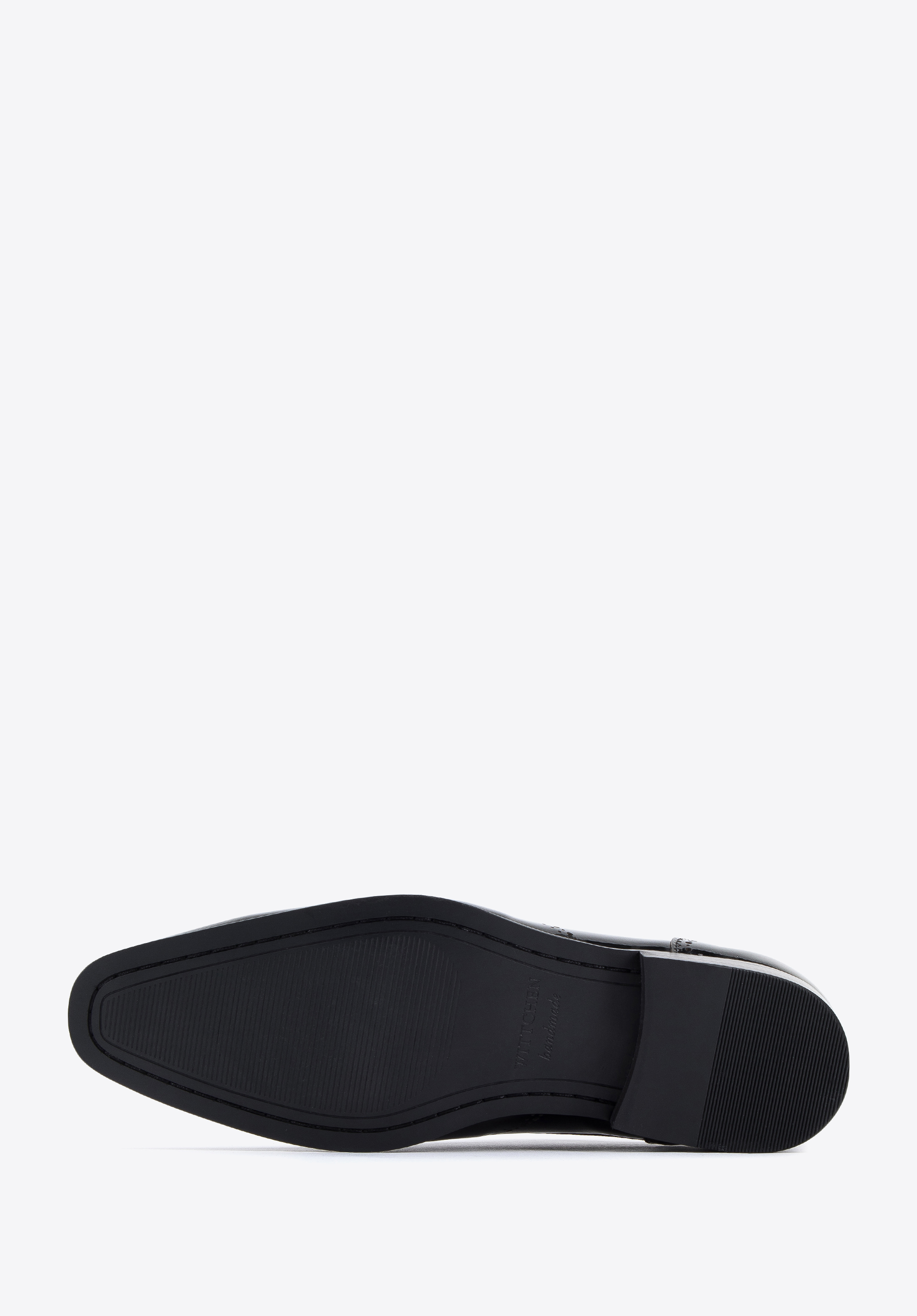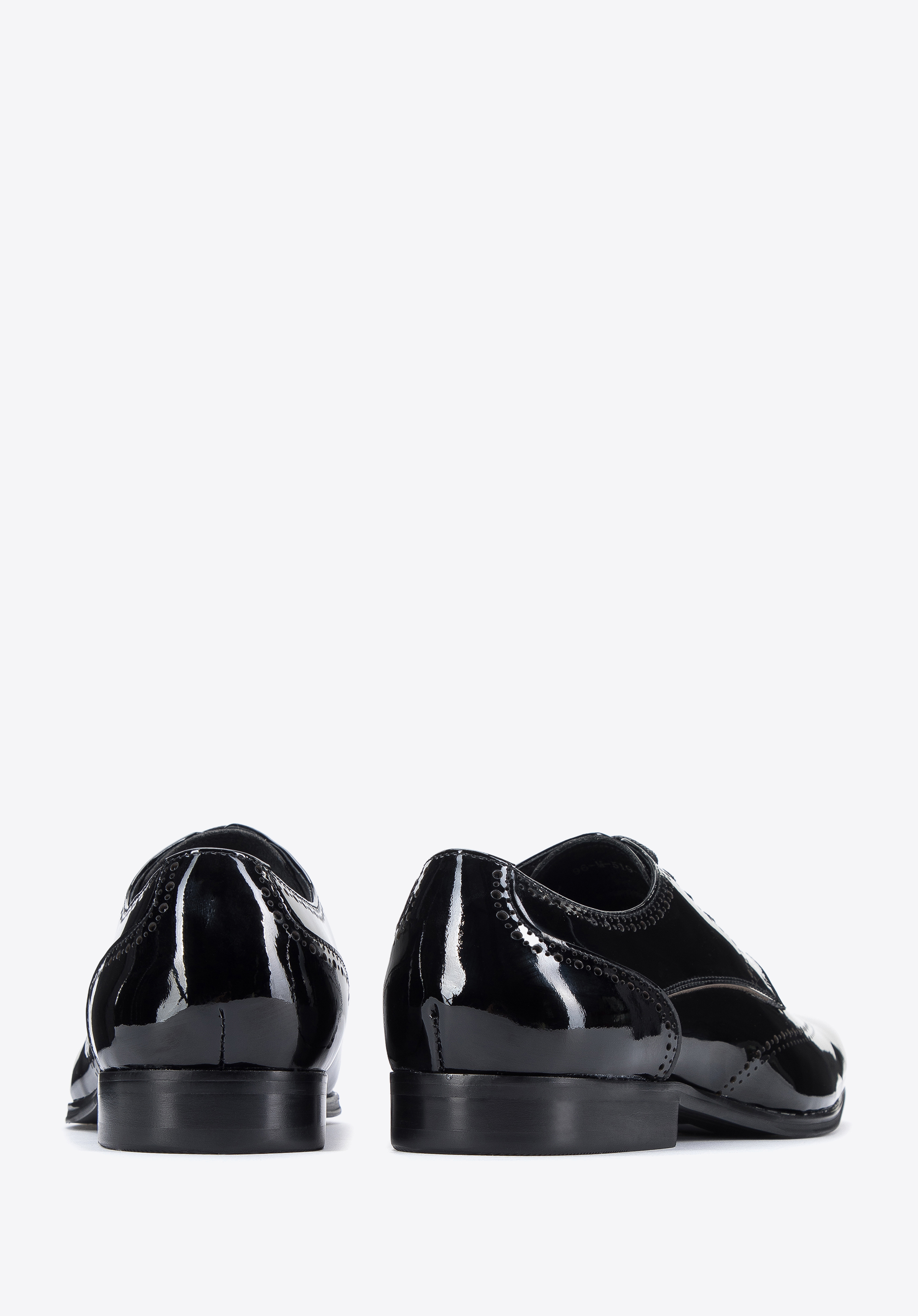 Mierne predĺžený nos zoštíhli vaše chodidlo a vďaka koženej stielke v nich budete pohodlne chodiť celé hodiny. Pánske lakované derby topánky s ozdobnou perforáciou sú klasikou s moderným nádychom, ktorú sa oplatí mať vo svojom šatníku.