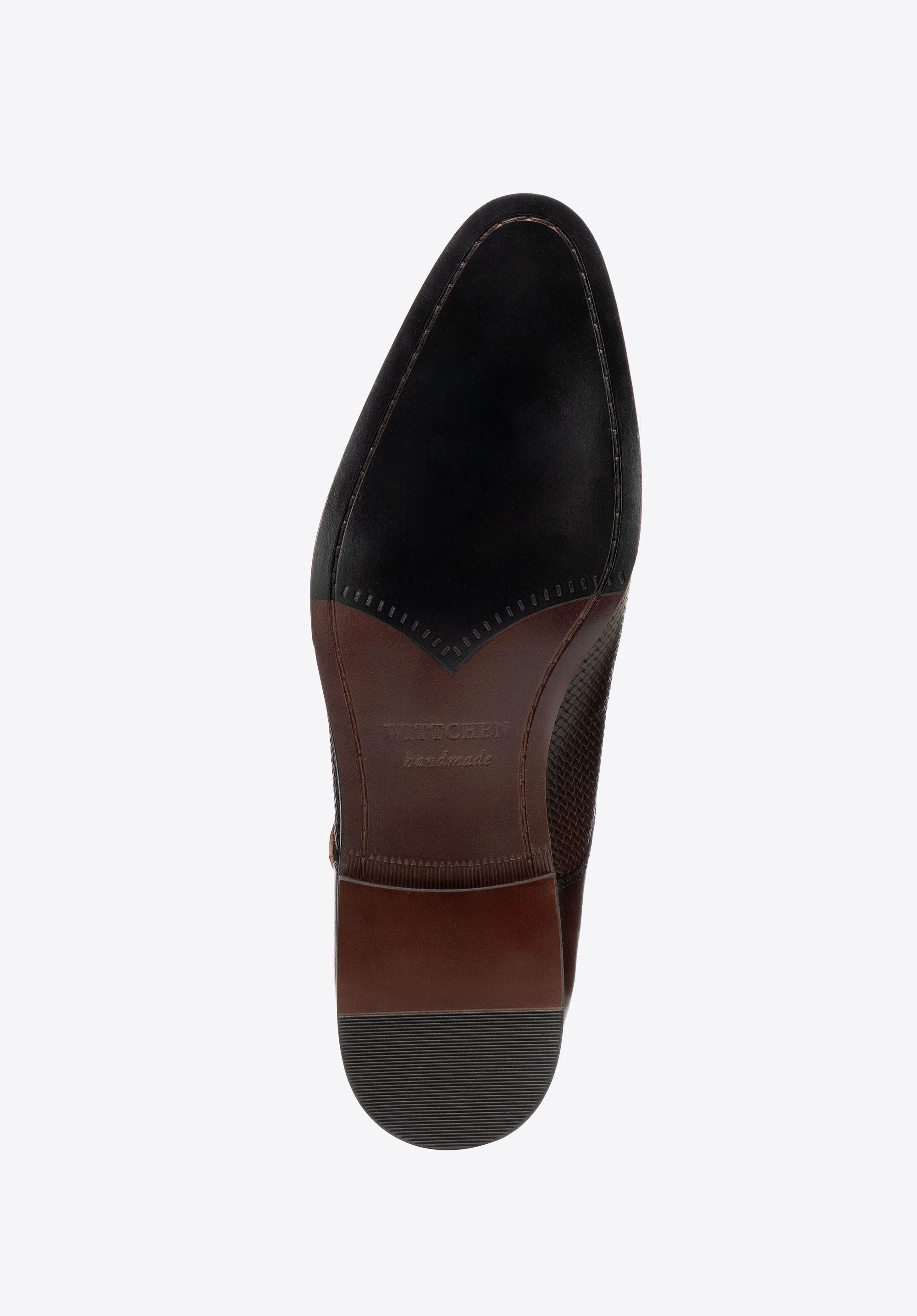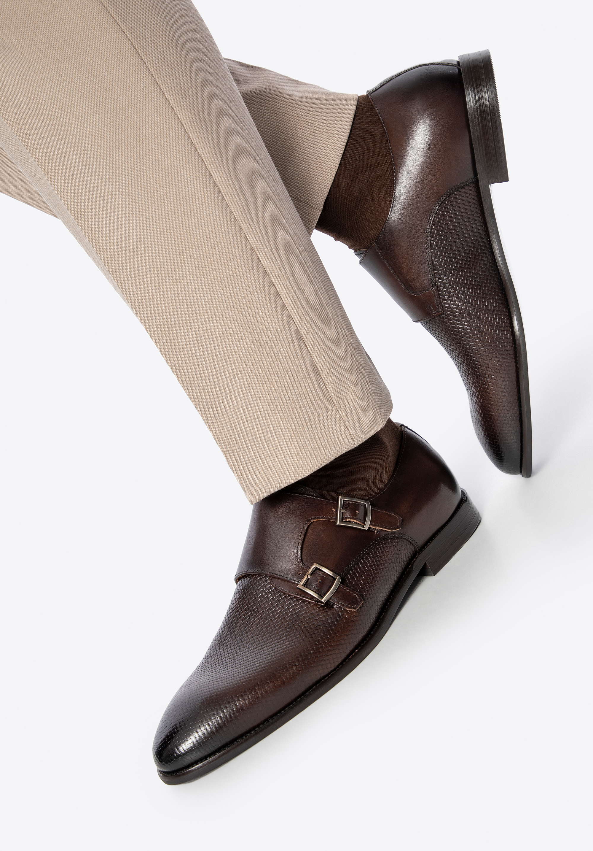 Vyberte si topánky , ktoré kombinujú klasickú siluetu s výrazným detailom. Sú vyrobené z prírodnej kože a vynikajú rafinovanou perforovanou textúrou , ktorá im dodáva jedinečný a moderný charakter. Štýl s charakteristickými dvojitými prackami prináša modernú energiu do tradičnej obuvi, zatiaľ čo mandľovitý tvar špičky zvýrazňuje elegantnú líniu chodidla a dodáva elegantný nádych. Vnútorná časť je zakončená mäkkou koženou stielkou a podšívkou, ktorá zaisťuje celodenné pohodlie aj pri dlhom nosení.