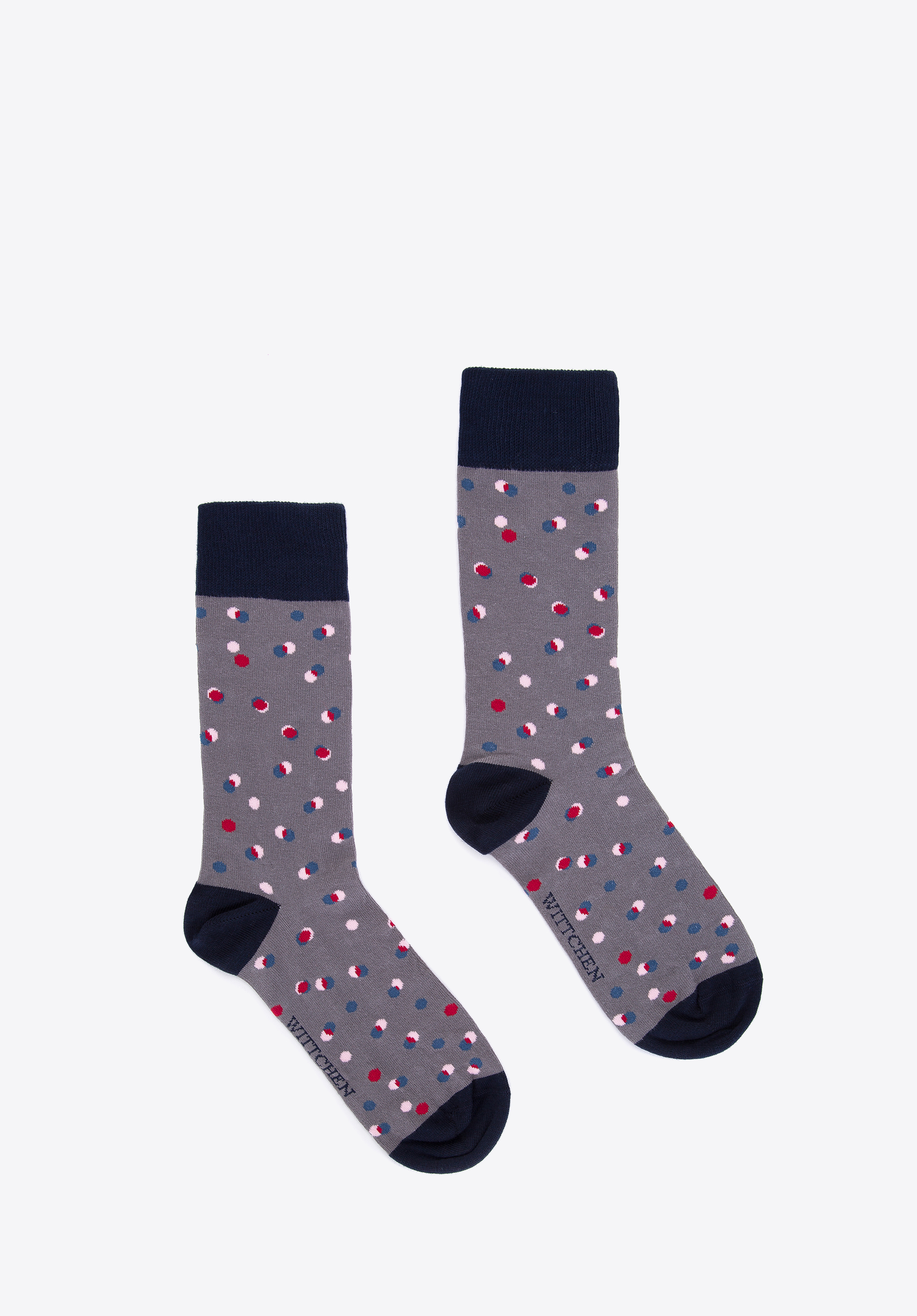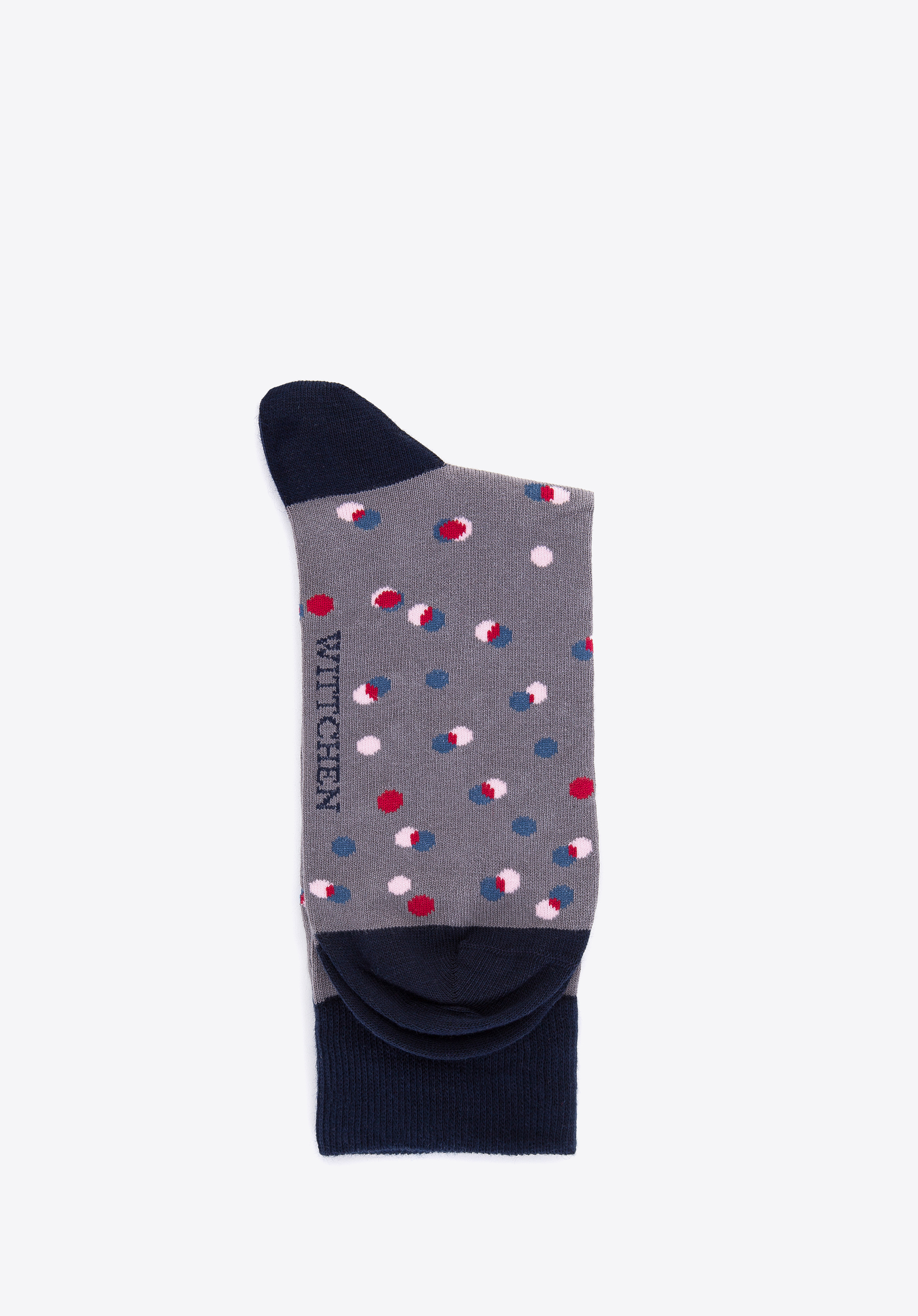 Tieto pánske ponožky spestria každý váš outfit. Celok je pokrytý kontrastným vzorom vo farebných bodkách. Tento model je vyrobený z vysokokvalitnej bavlny s prídavkom vlákien, ktoré zlepšujú pružnosť. Na spodnej strane je nenápadné logo WITTCHEN. Noste ich každý deň, k džínsom aj k elegantným nohaviciam. Pánske farebné bodkované ponožky sú nadčasovým doplnkom pre každého štýlového muža.