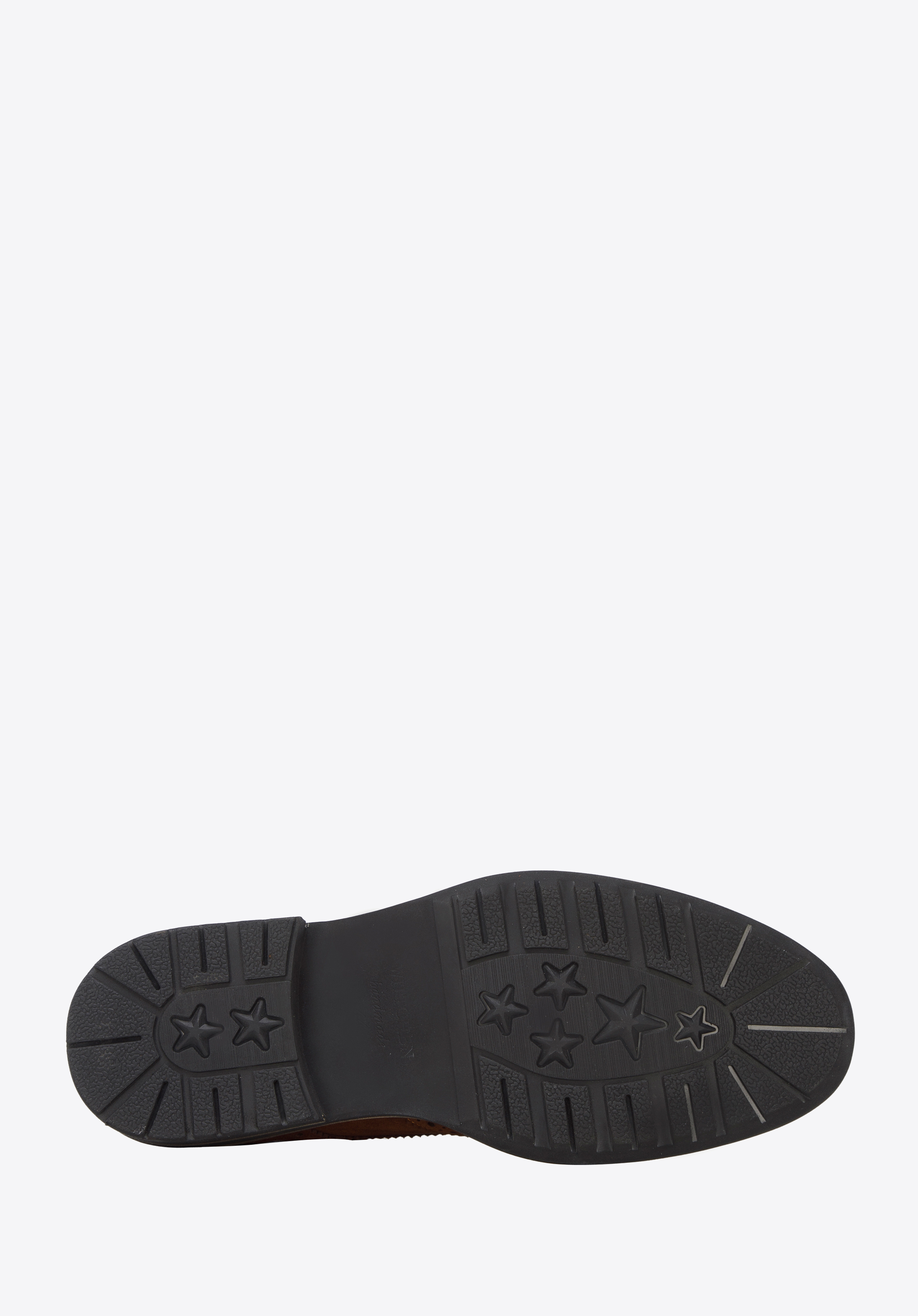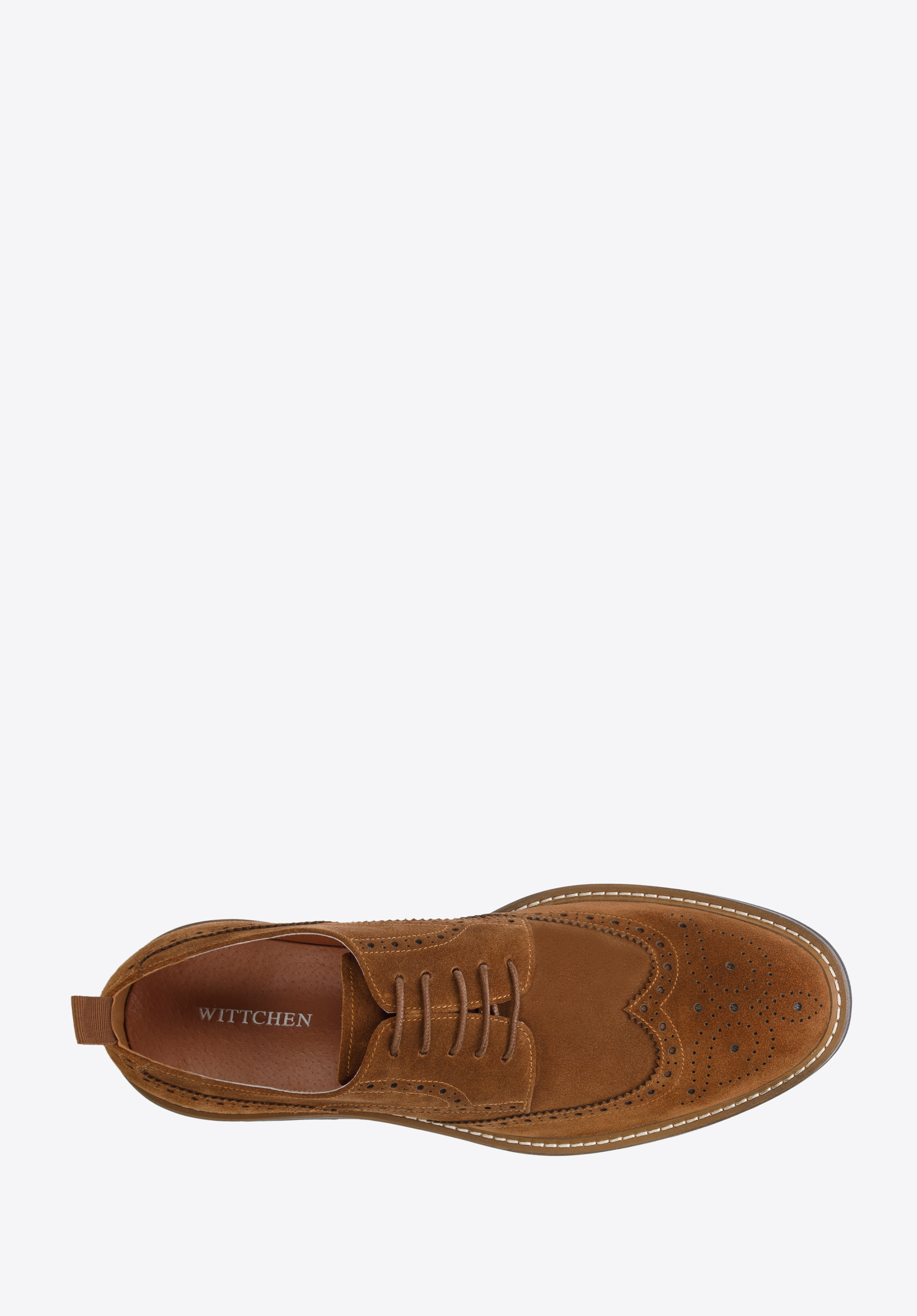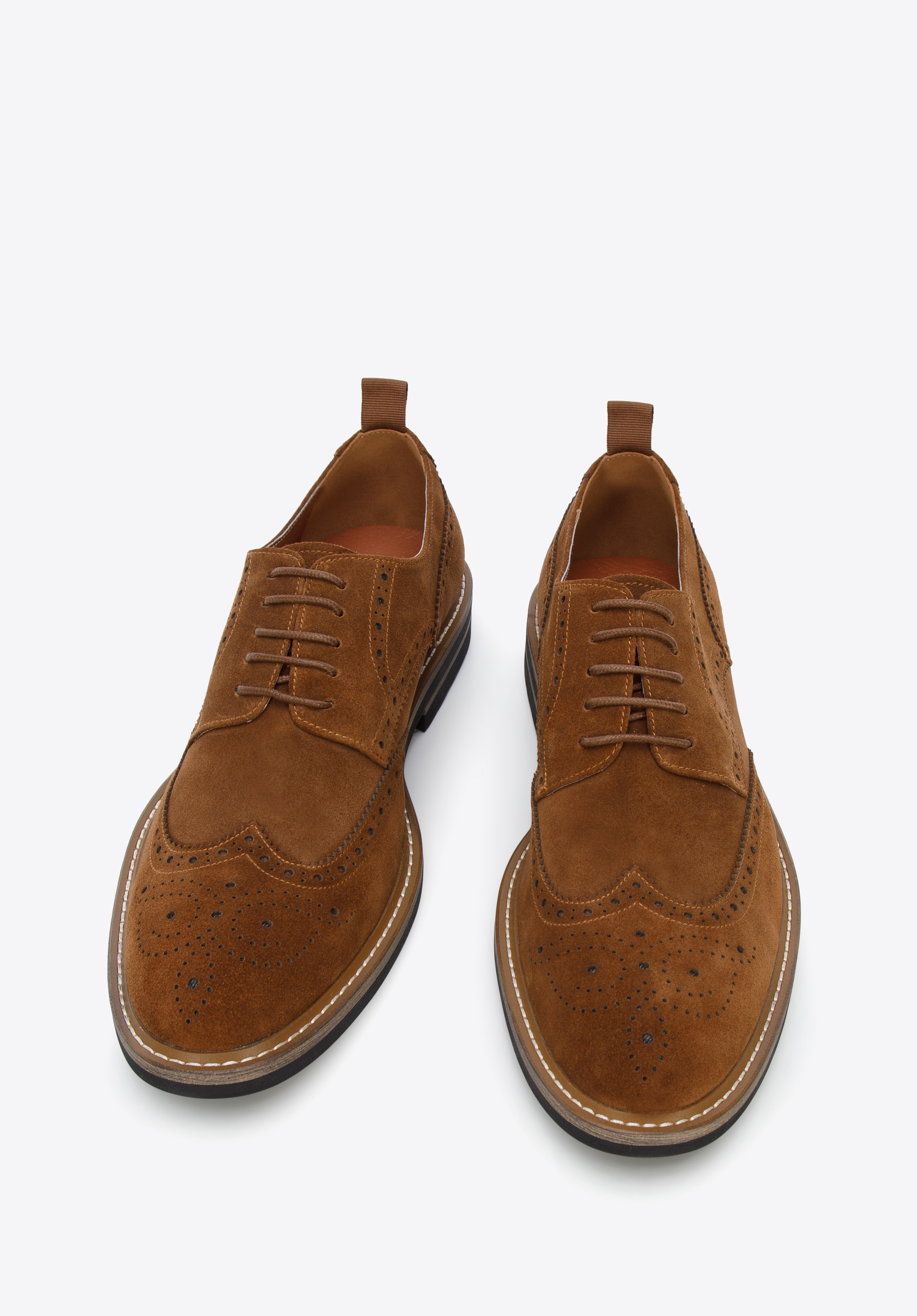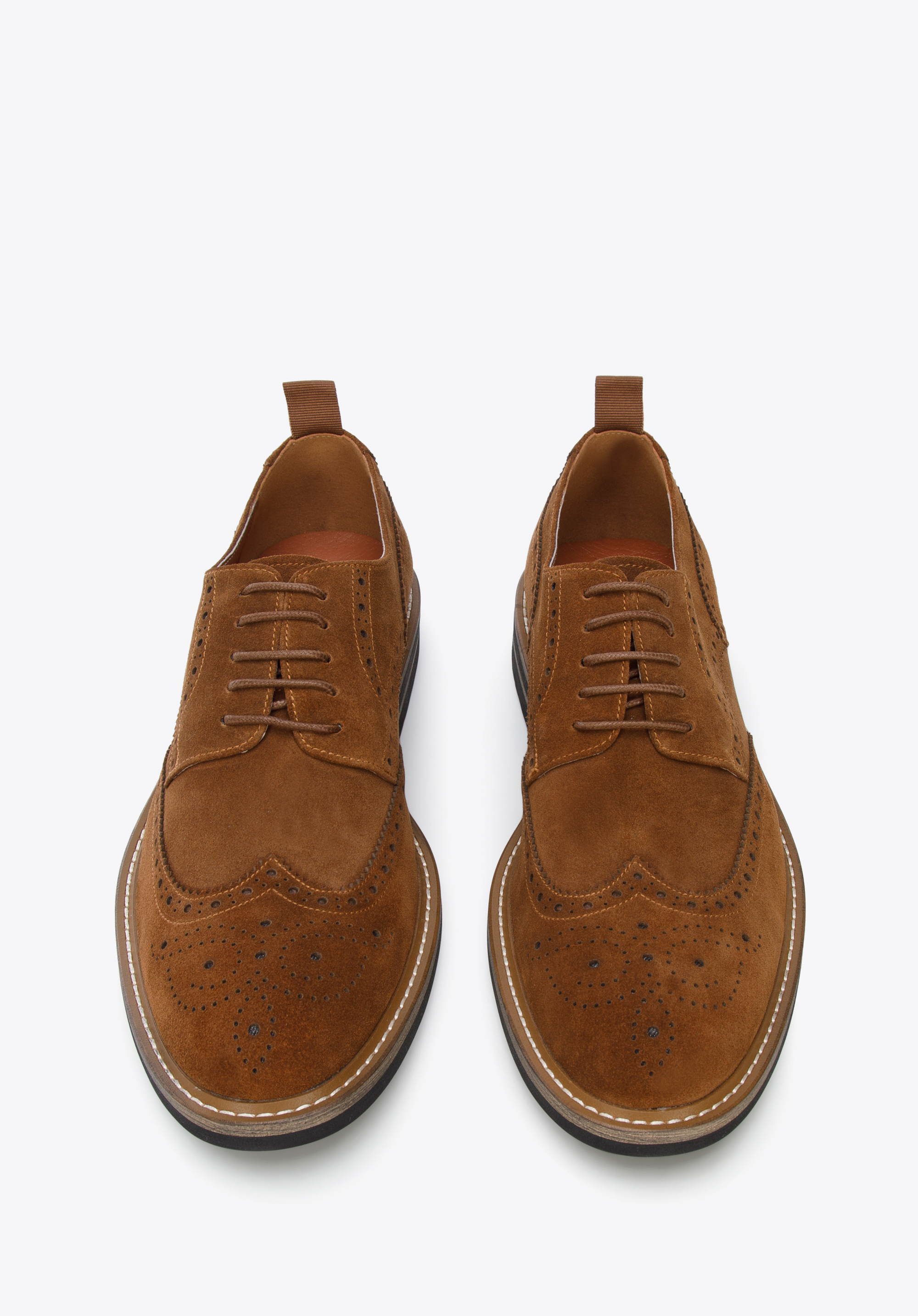 podrážka zdobená kontrastnou niťou a dvojfarebný podpätok. Pánske semišové brogue topánky s kontrastnou niťou sú klasikou v modernom prevedení, ktorú sa oplatí mať vo svojom šatníku.