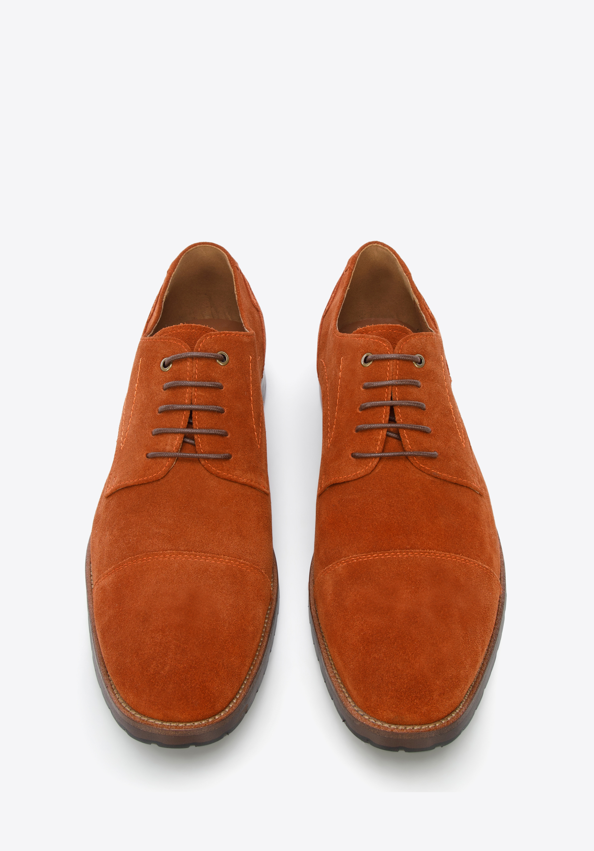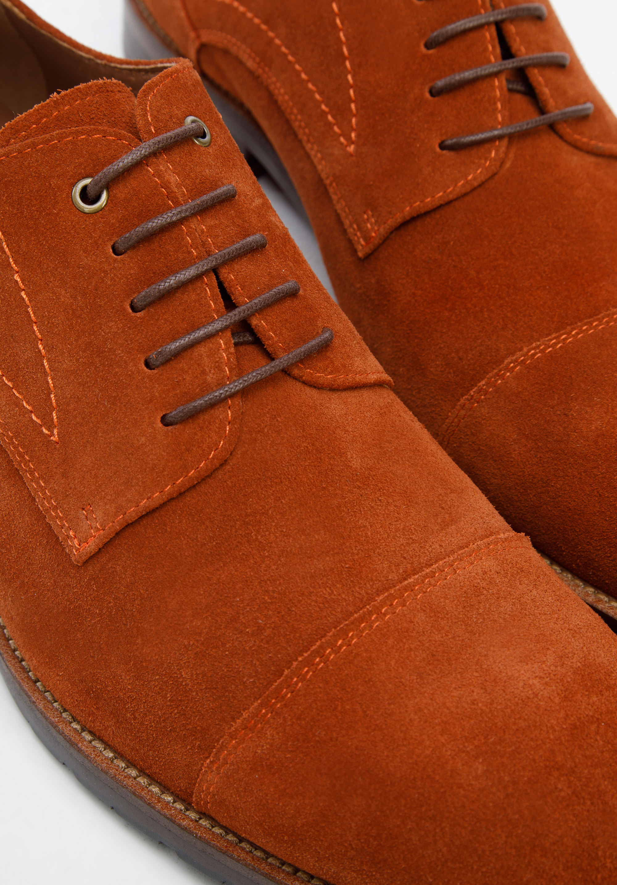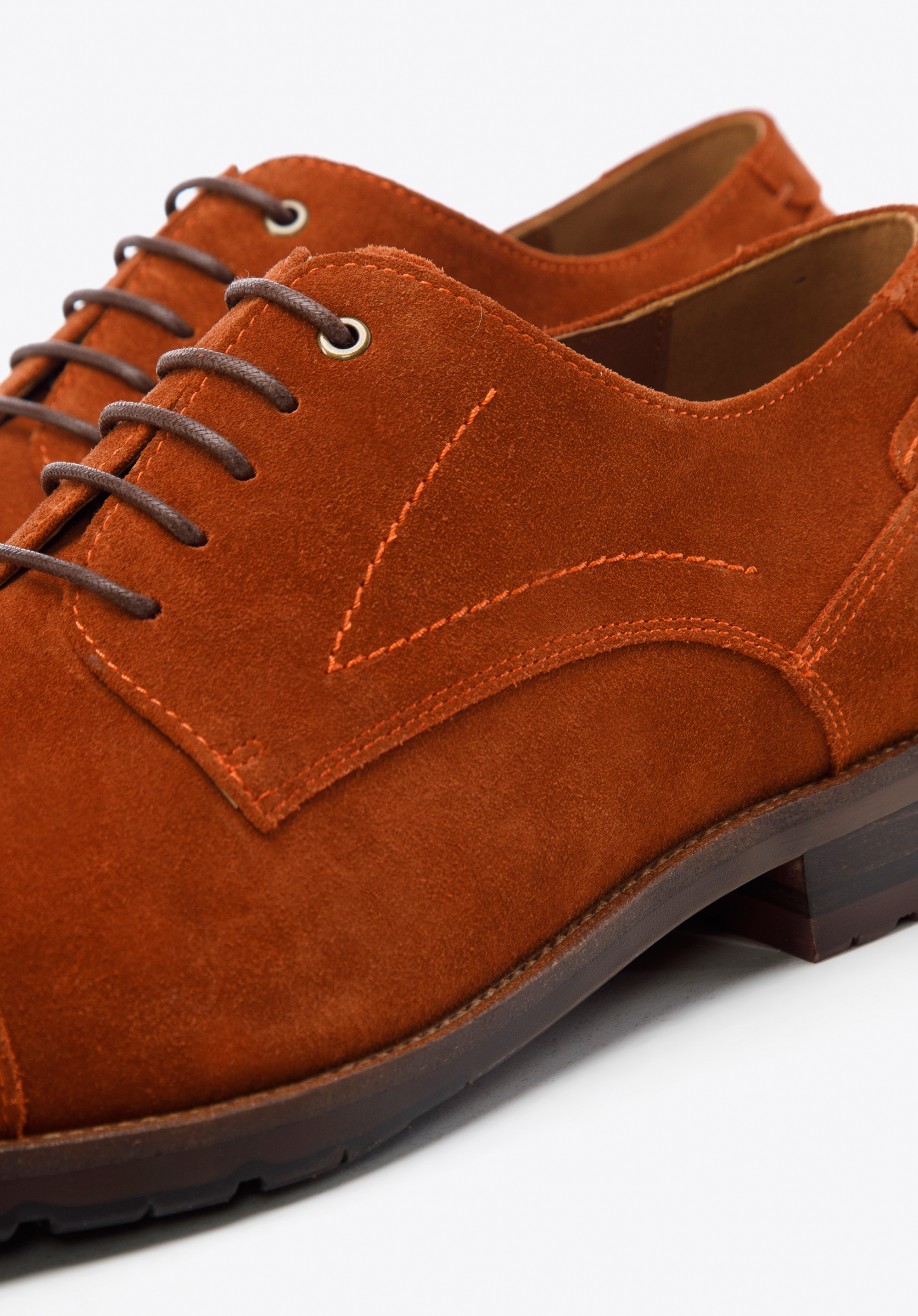 Pánske semišové derby topánky s ozdobnými lemami tehlové