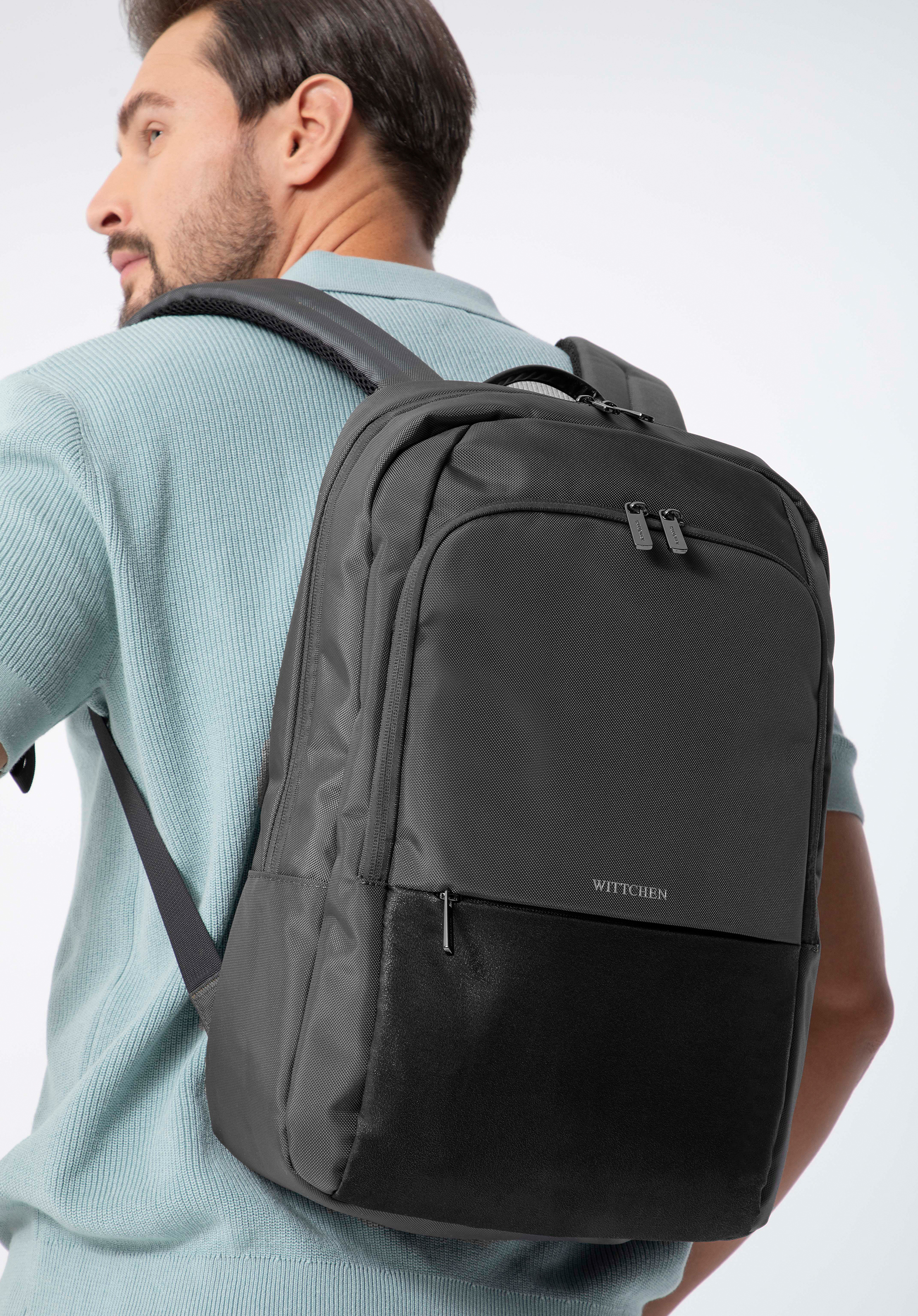 vrecko na notebook so suchým zipsom s maximálnymi rozmermi 26 cm x 36 cm (maximálne 15,6”). Do veľkého vrecka na prednej strane uložíte kancelárske potreby. Tento jednoduchý a všestranný model môžete nosiť každý deň do práce a nosiť v ňom všetky potrebné veci. Pánsky batoh na notebook 15.6 ” s vložkou je praktickou voľbou, ktorá bude skvelou alternatívou ku klasickej
