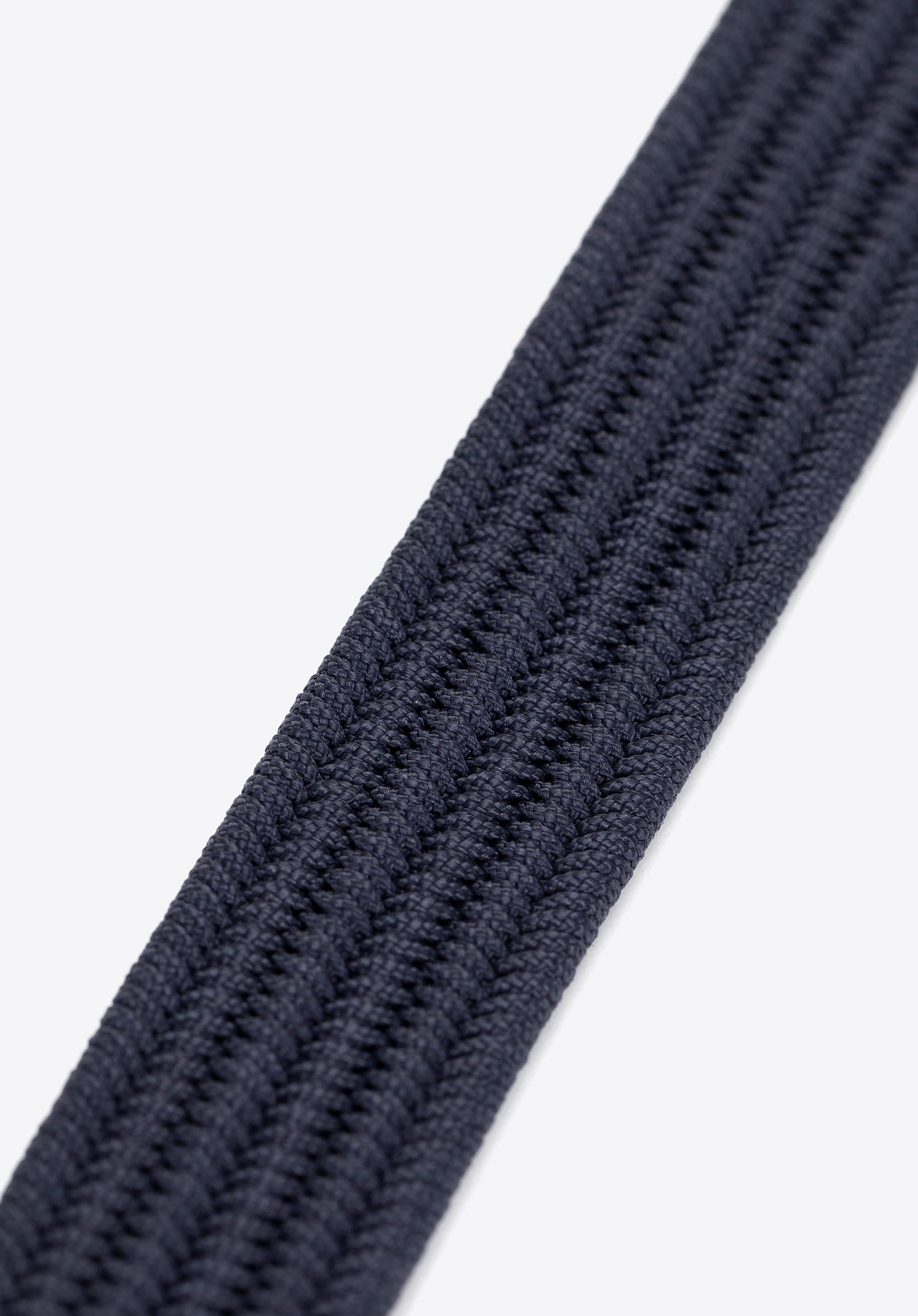 Tento funkčný, štýlový a mimoriadne pohodlný pánsky opasok je vyrobený z odolnej zmesi polyesteru a latexu s rafinovanými koženými akcentmi. Jeho flexibilný dizajn sa naťahuje, aby dokonale sedel a poskytoval pohodlie počas celého dňa. Namiesto tradičných otvorov umožňuje tkaná konštrukcia jednoduché a presné nastavenie a zároveň pomáha predchádzať opotrebovaniu. Vďaka všestrannej šírke sa úhľadne zmestí do väčšiny pútok na opasok, od ležérnych džínsov až po elegantné nohavice.