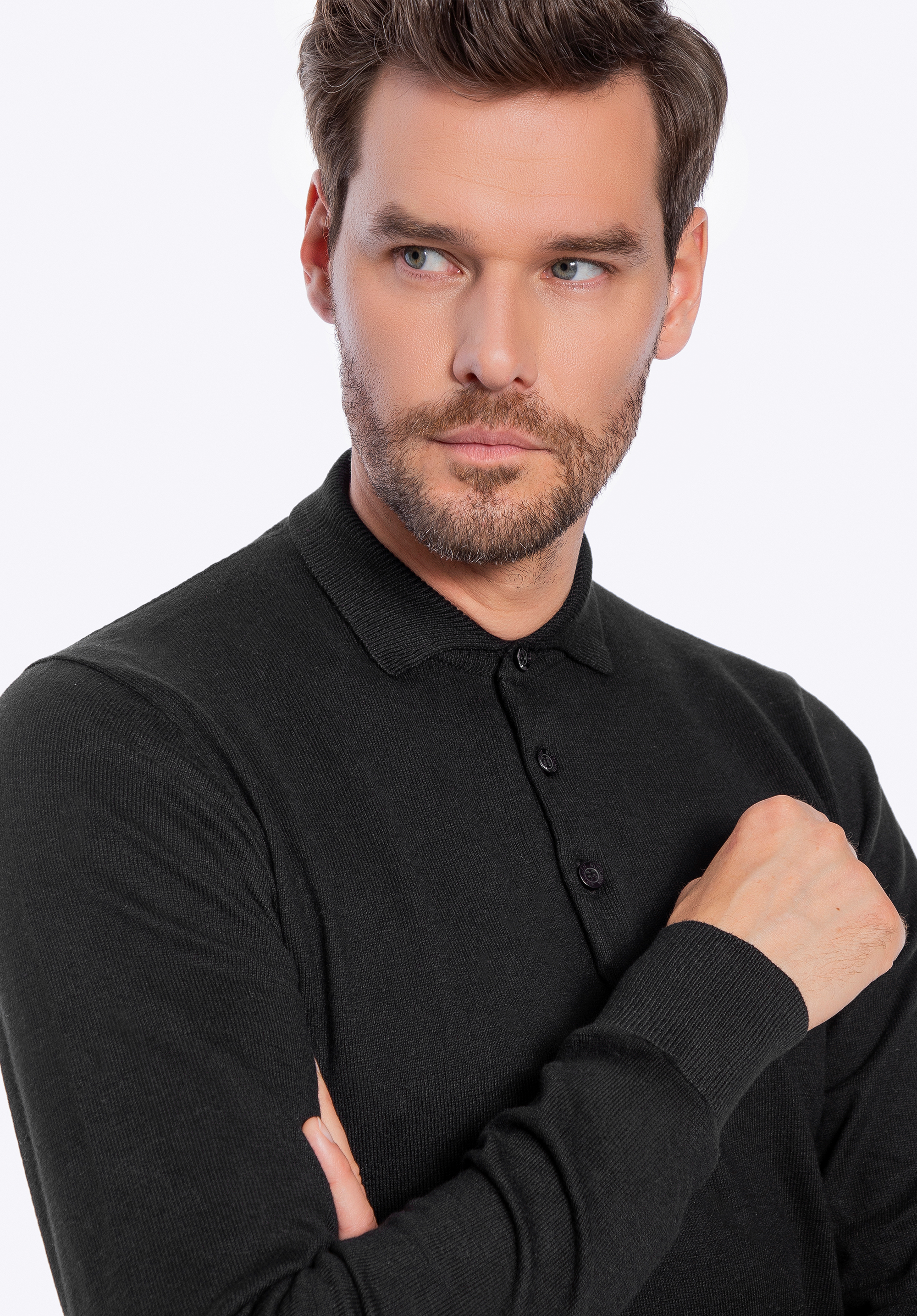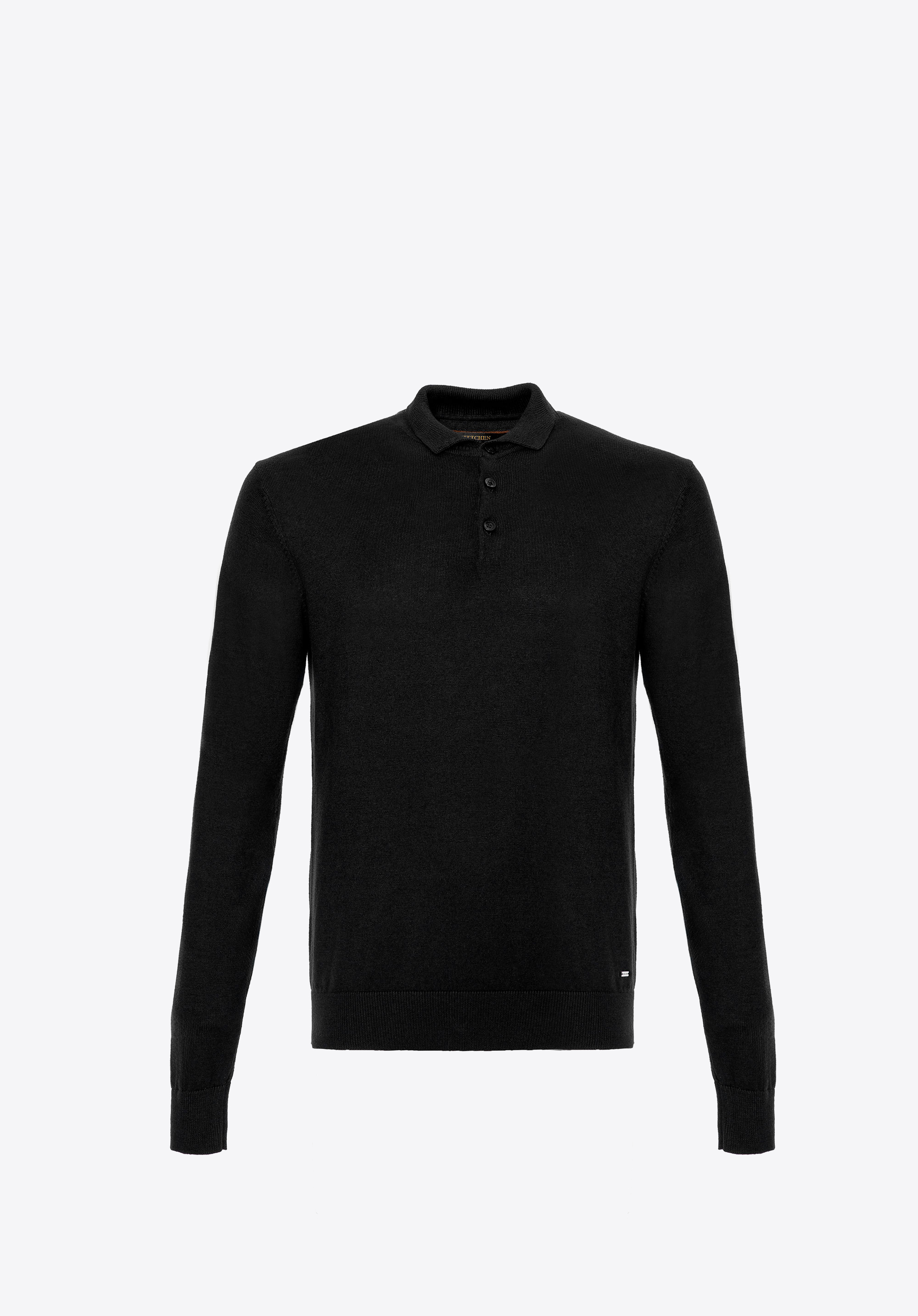 Decentný každodenný luxus – tento pánsky sveter s dlhým rukávom je poctou nadčasovej klasike, ktorú ocení každý muž, ktorý si cení pohodlie a kvalitu. Vyrobený z mäkkej bavlny zmiešanej s kašmírom , zahalí vás teplom a zároveň poskytne prirodzenú priedušnosť – ideálny do chladnejších dní. Kľúčovým prvkom je elegantný golier s gombíkmi na výstrihu – jednoduchým gestom môžete zmeniť svoj vzhľad z uvoľnenejšieho na uhladenejší, elegantne-ležérny štýl. Diskrétne kovové logo v blízkosti spodného okraja dotvára dizajn – malý detail, ktorý hovorí veľa o kvalite.