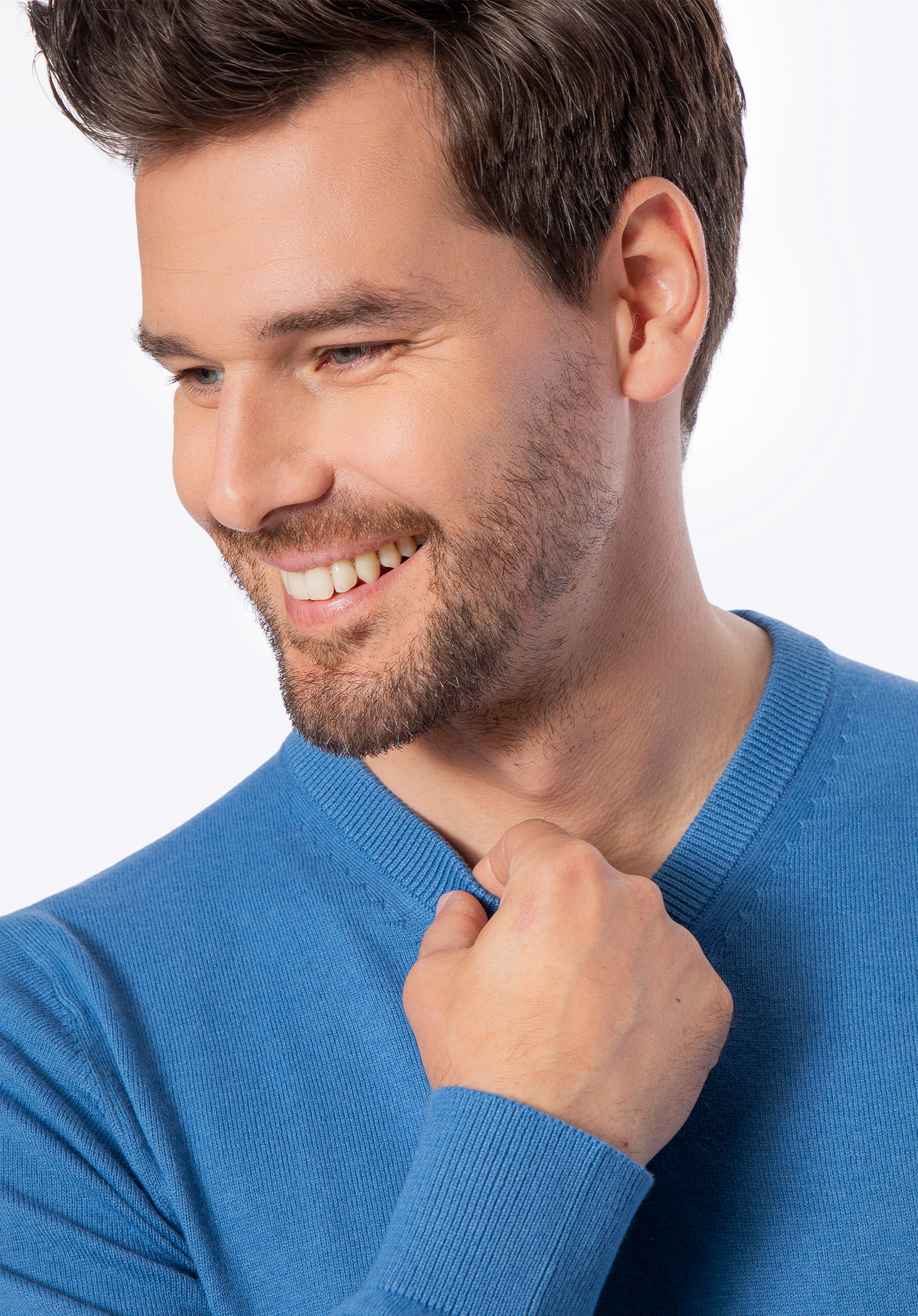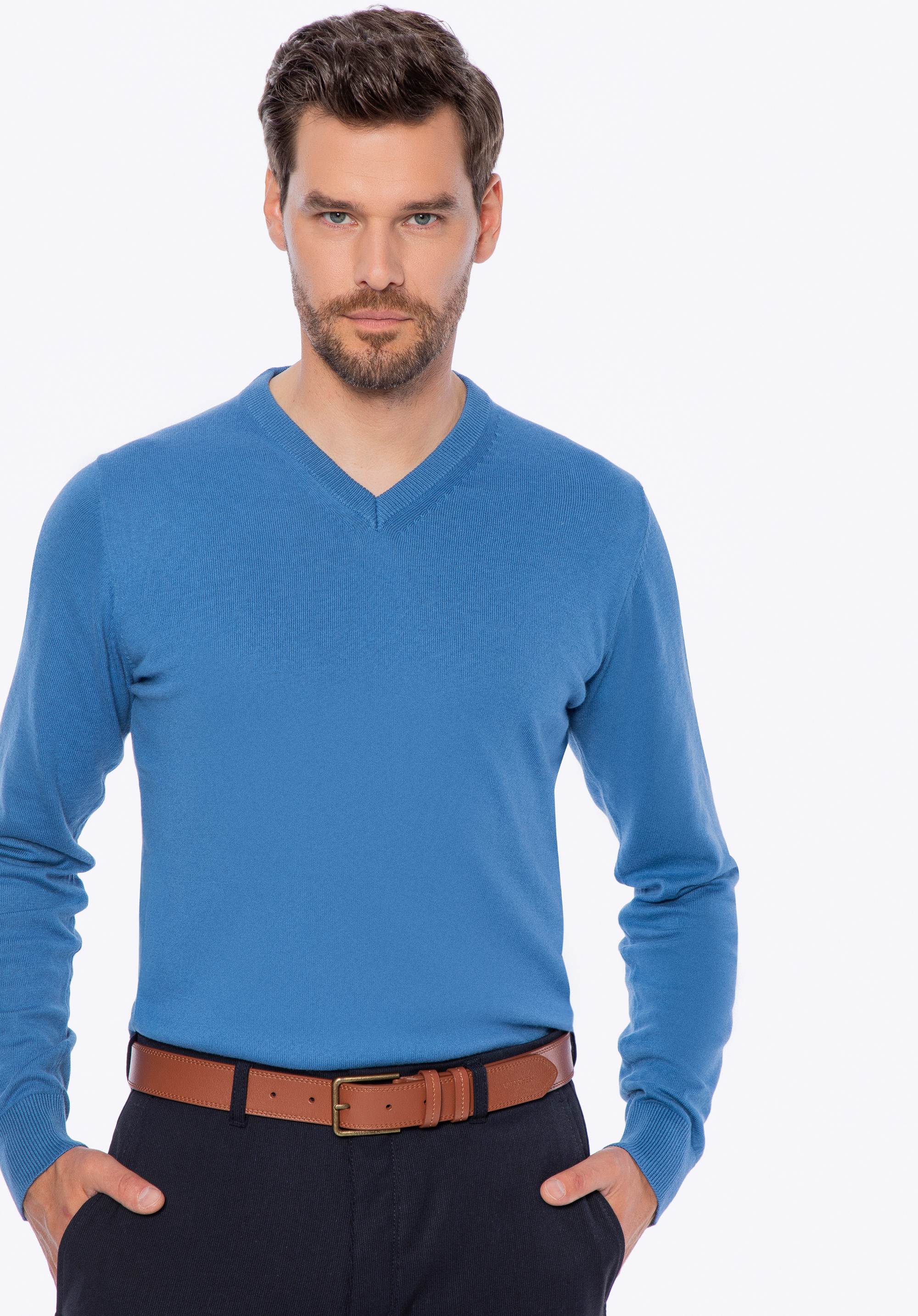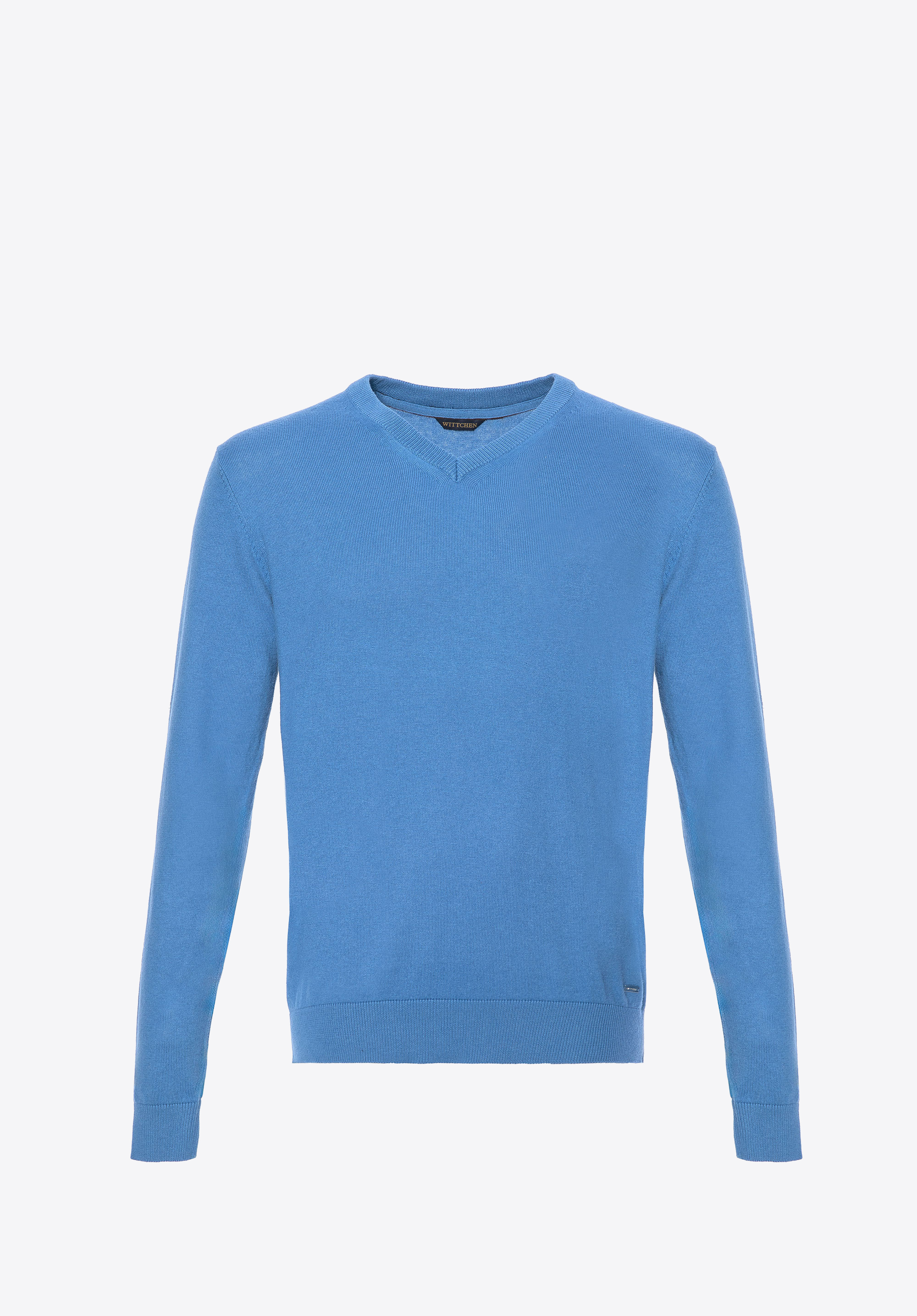 Pánsky sveter zo zmesi bavlny a kašmíru Farba: modrá