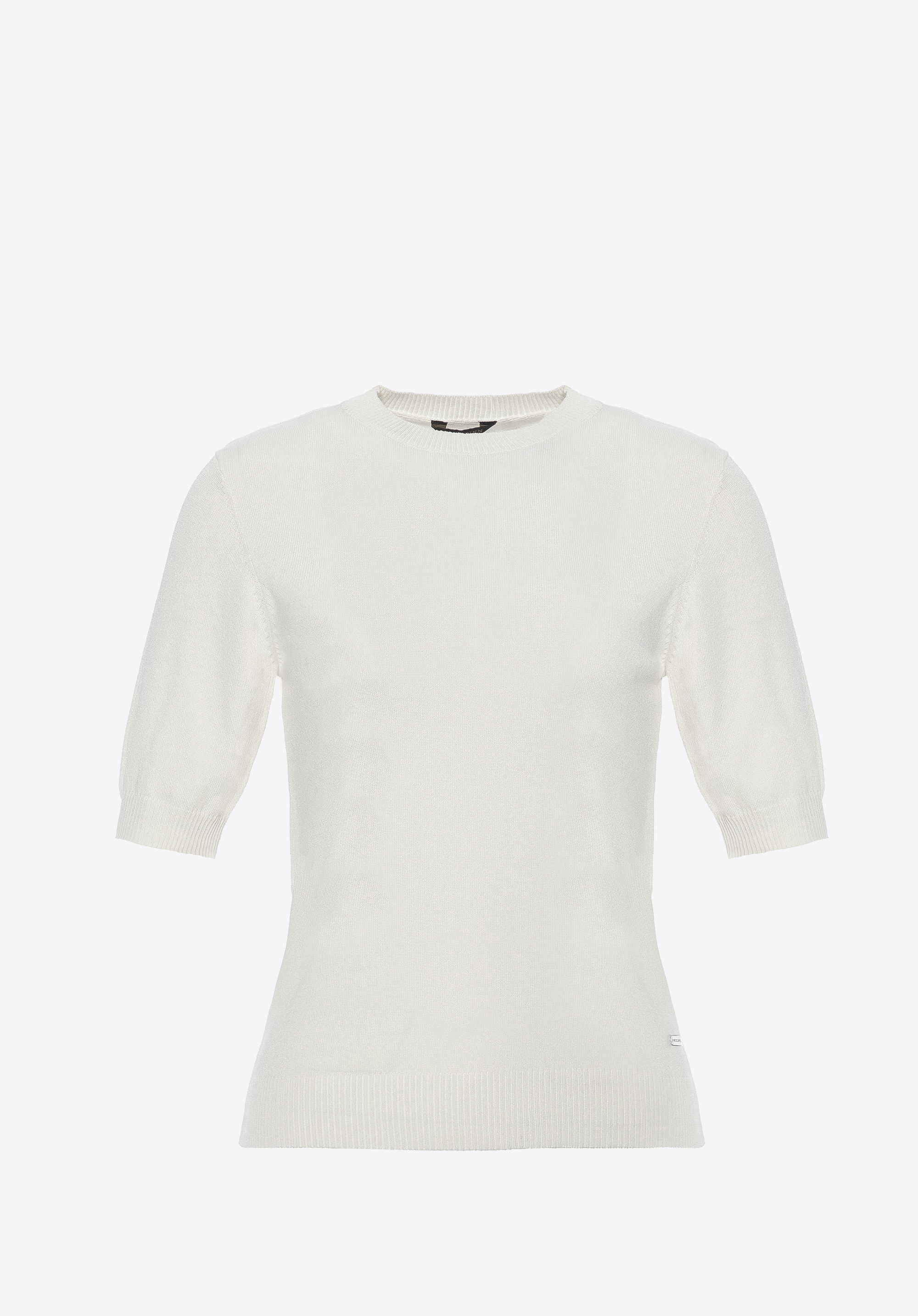 Táto blúzka dokazuje, že prepracované detaily a jednoduchý strih dokážu vytvoriť výnimočne štýlový vzhľad. Vyrobená z mäkkej pletenej viskózy zmiešanej s nylonom , krásne prilieha k postave a zároveň ponúka celodenné pohodlie. Krátke rukávy a jemne priliehavý lem obopínajú postavu, zatiaľ čo rebrovaný okrúhly výstrih dodáva nádych jemnej elegancie. Malé kovové logo na spodnom okraji dotvára dizajn decentným akcentom, ktorý zdôrazňuje kvalitné remeselné spracovanie.
