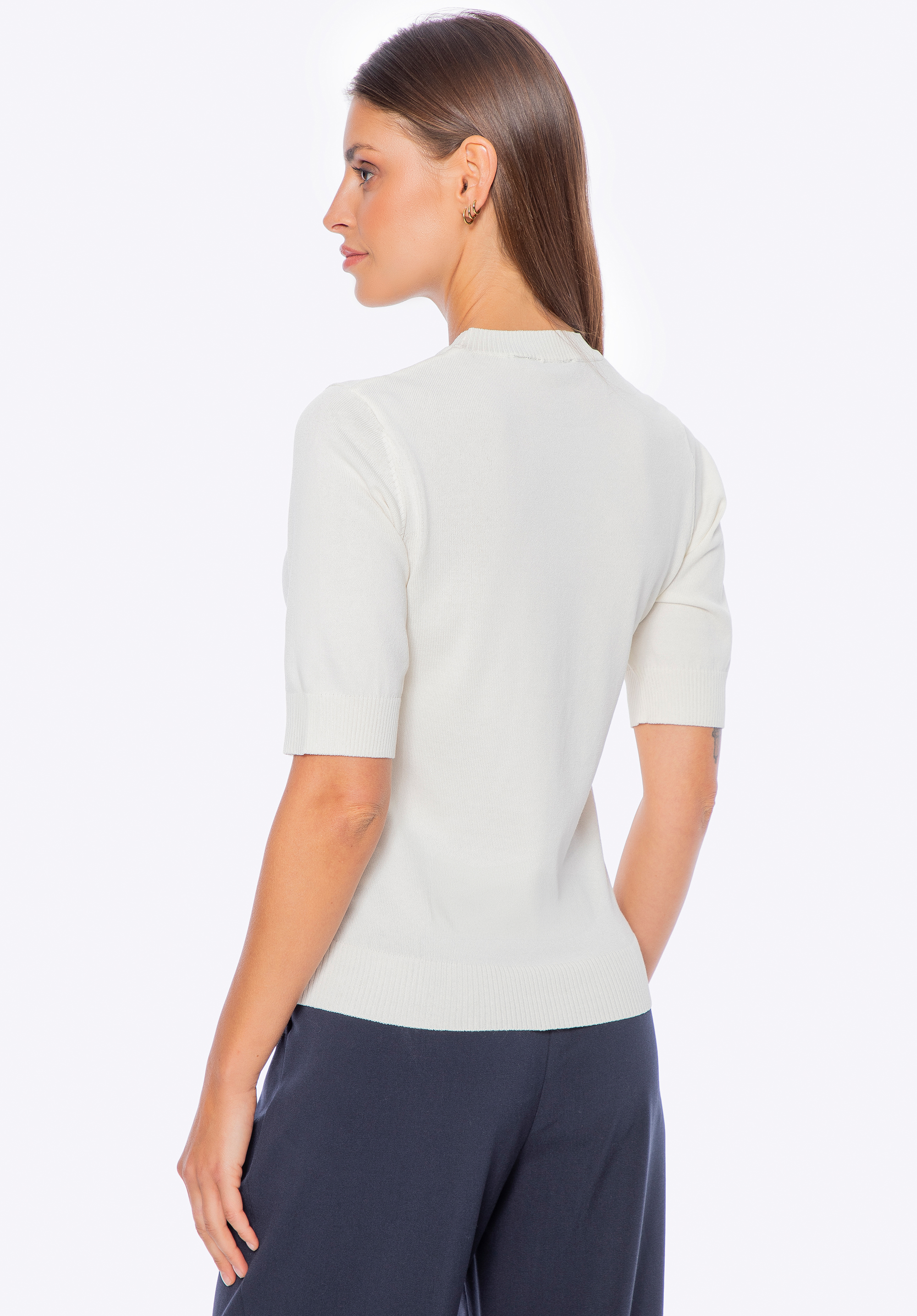 Minimalizmus so ženskou energiou – pletená blúzka z viskózy a nylonu