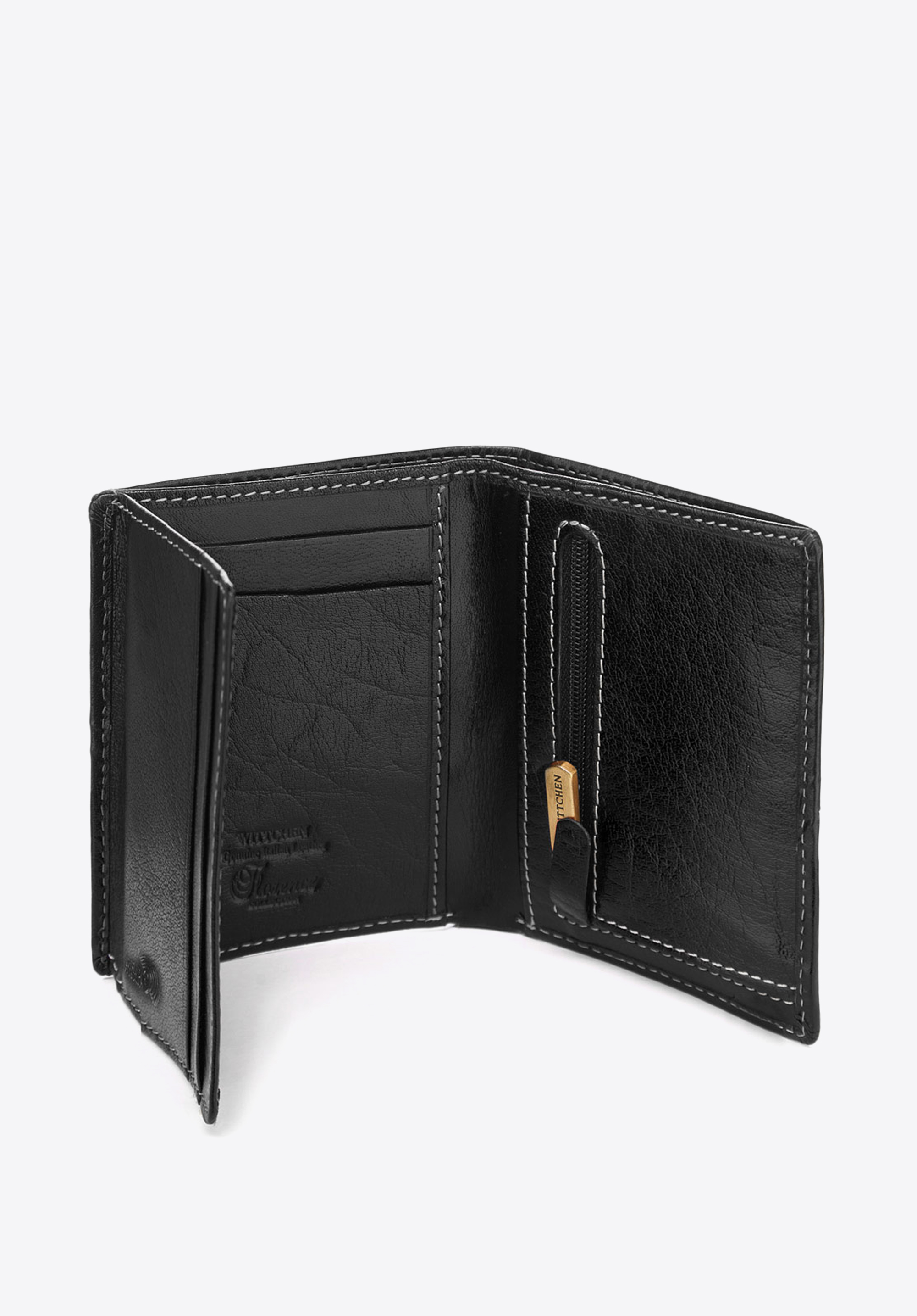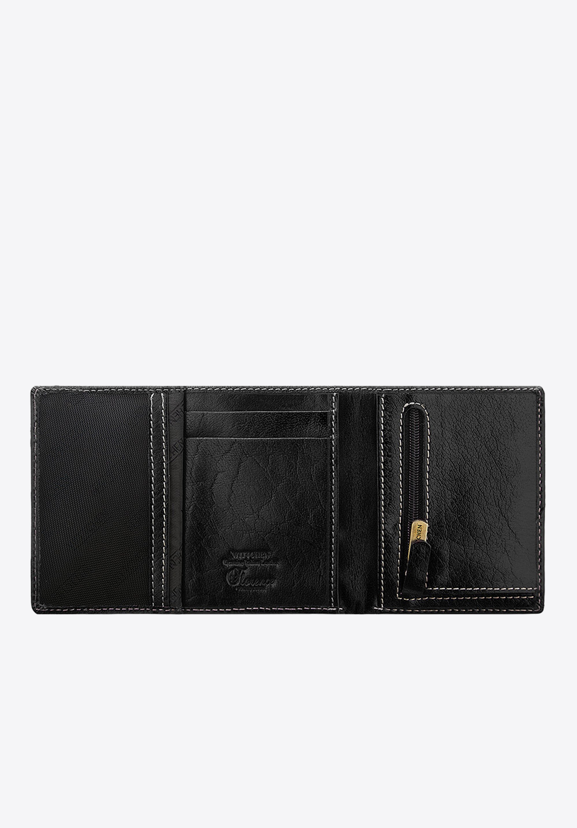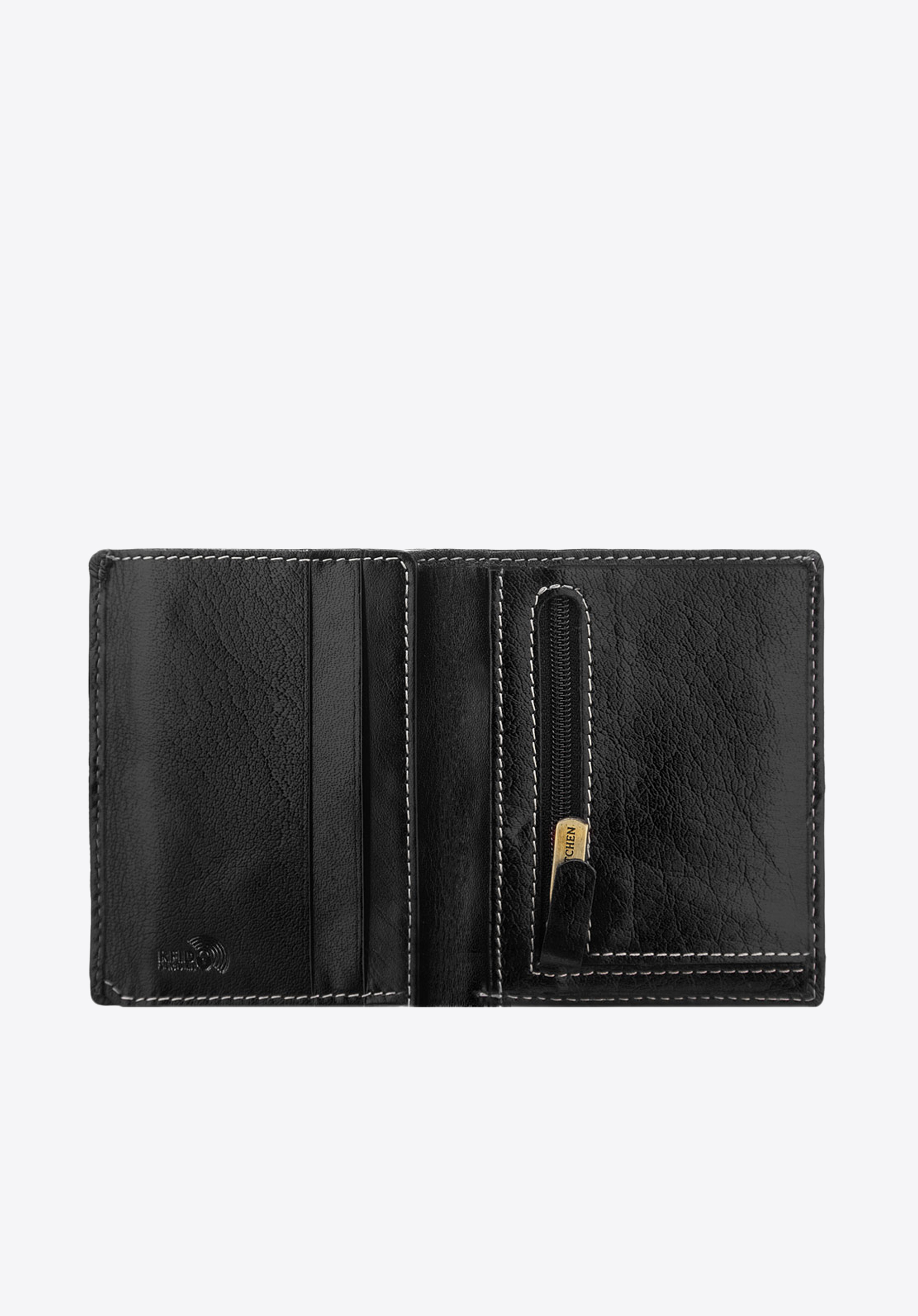Tenká peňaženka prešitá svetlými niťami, ktoré zvýrazňujú strohý charakter modelu. Napriek svojej malej veľkosti má peňaženka veľa praktických vreciek. Podšívka, vďaka použitiu najnovšej technológie RFID, chráni obsah vašich kariet pred tretími stranami. Je vyrobená výhradne z najkvalitnejšej lícovej kože, ktorá bude časom vyzerať ešte lepšie. Táto kožená peňaženka má vo vnútri dve vrecká na bankovky, zapínaný na zips priestor na mince, štyri priehradky na kreditné karty a tri vrecká, z ktorých jedno je vyrobené z odolnej sieťoviny.