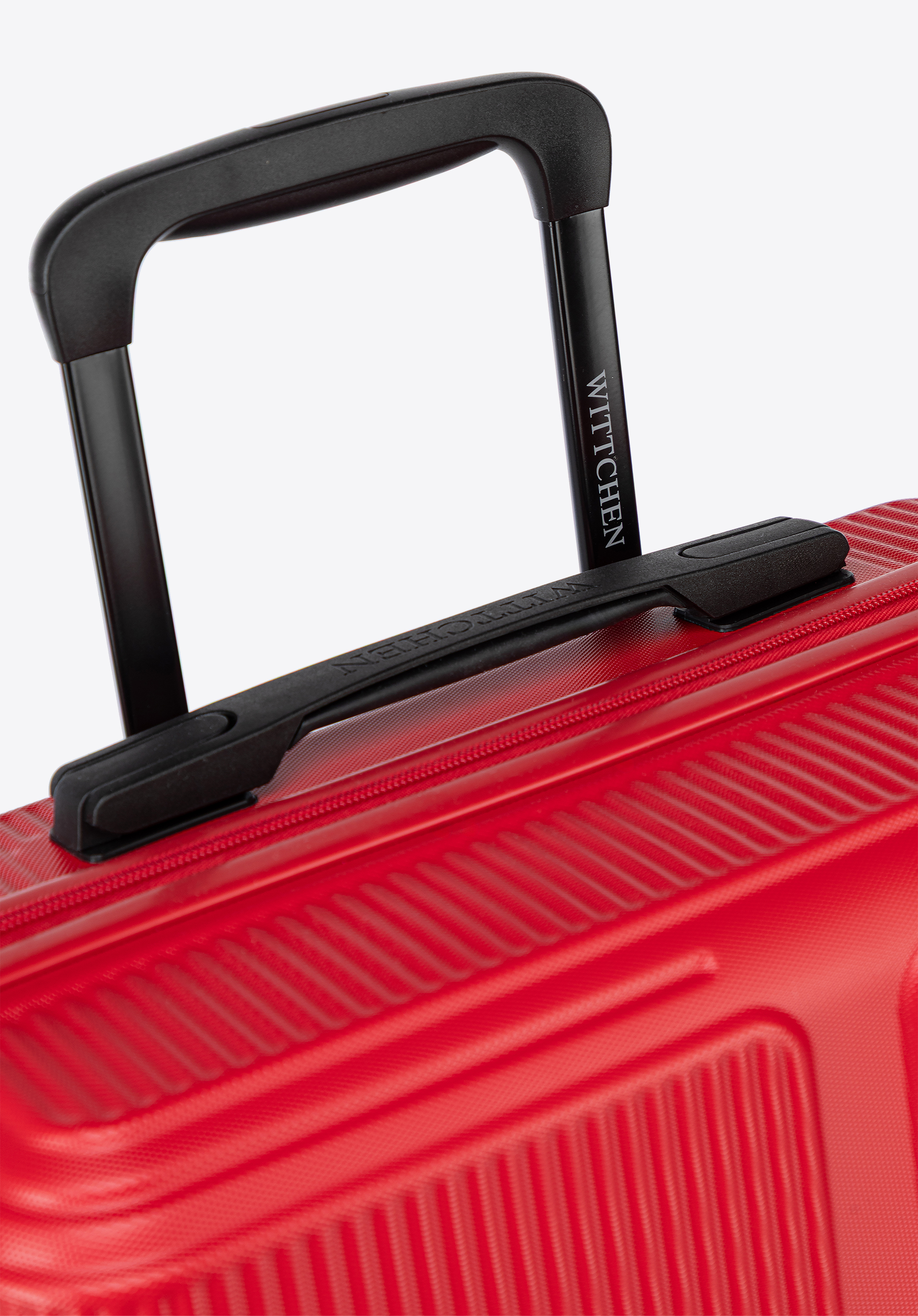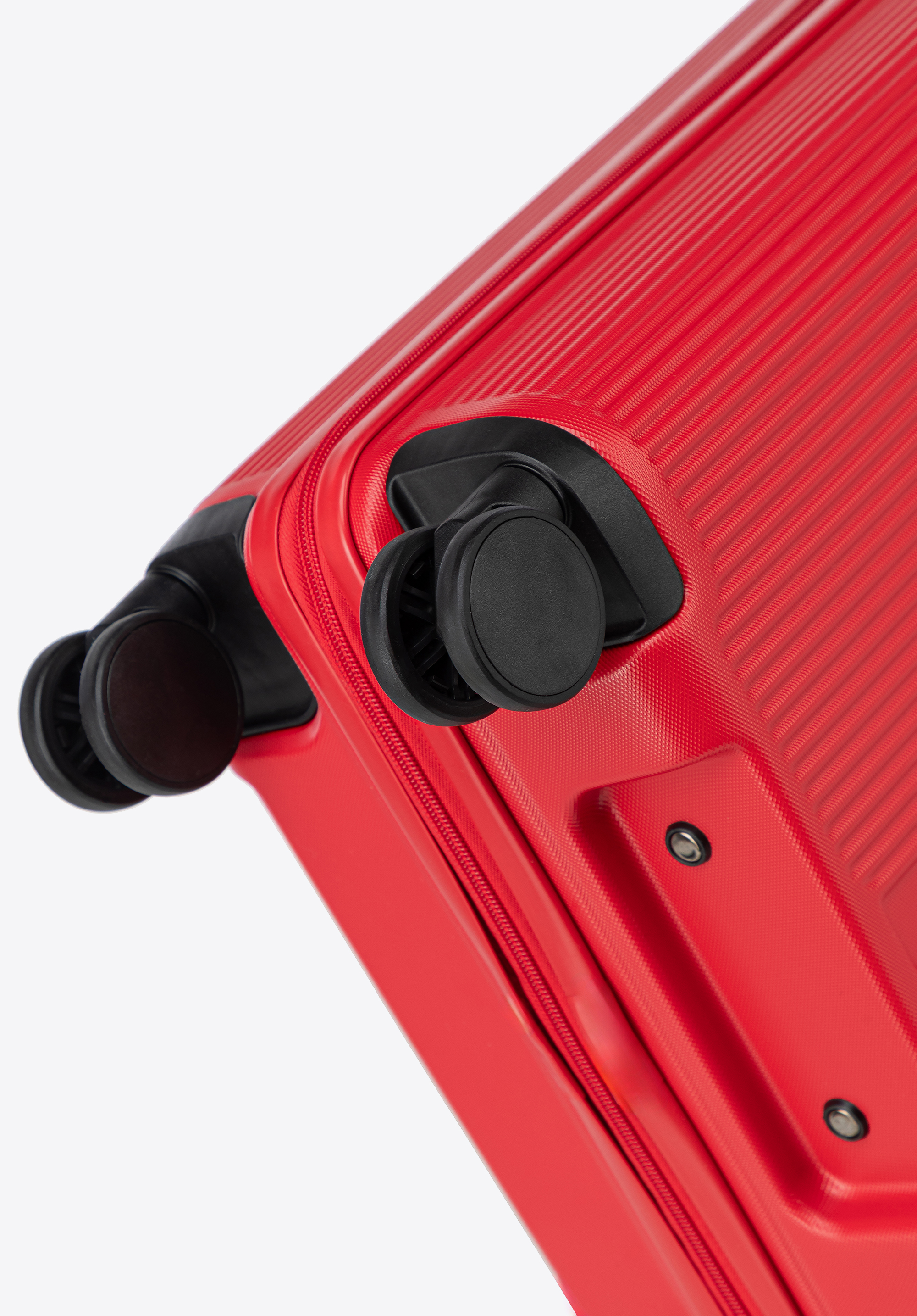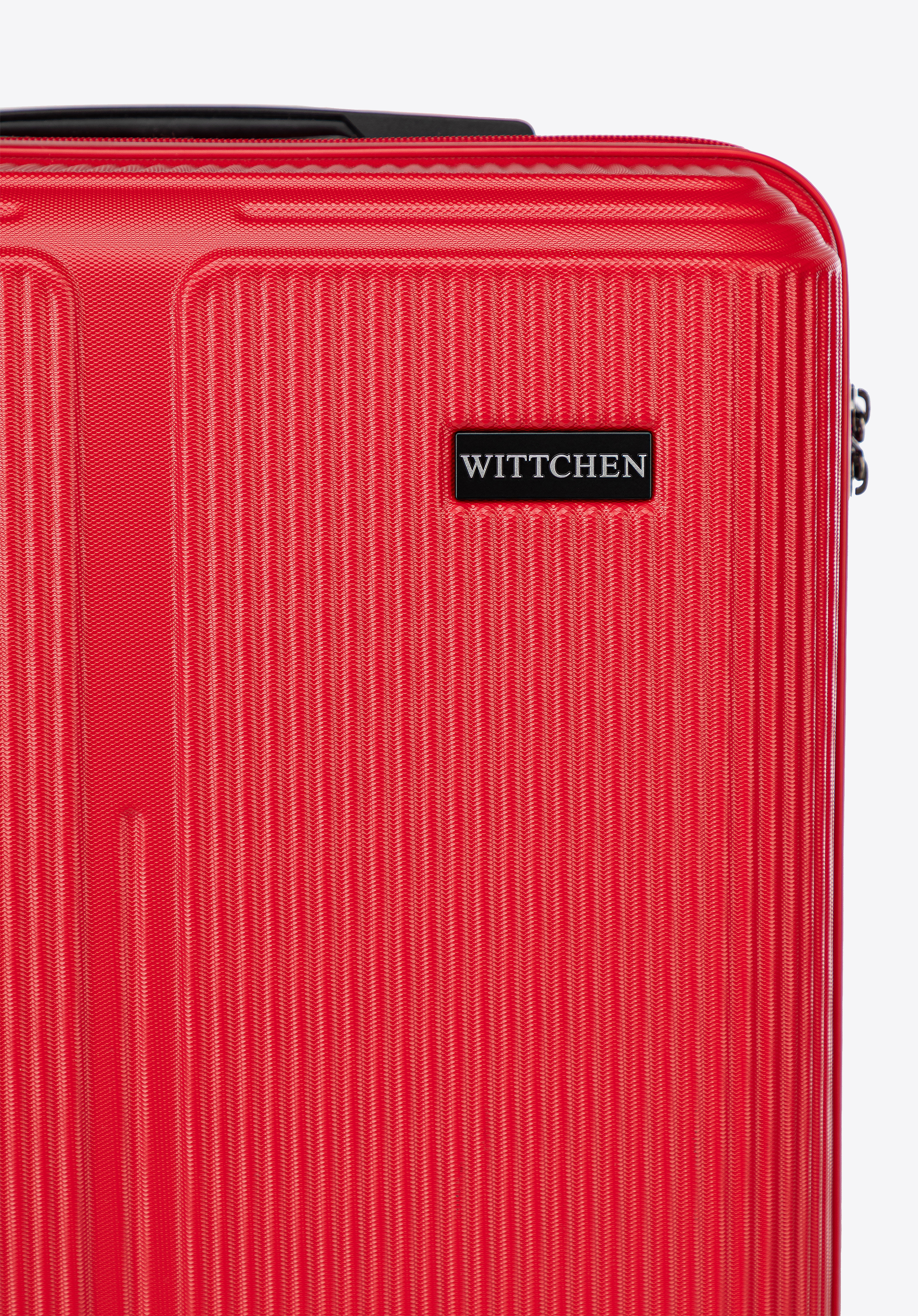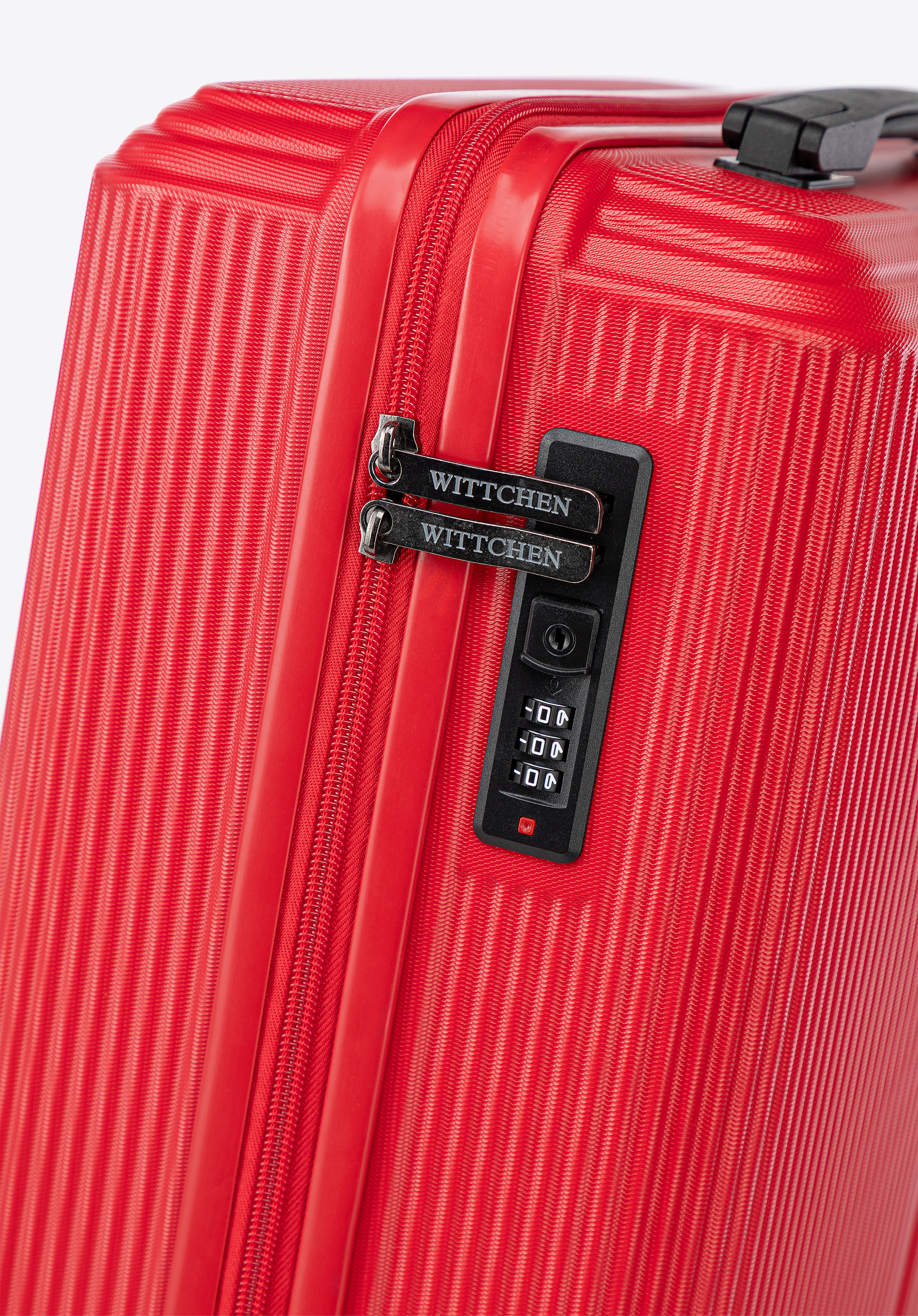- Dizajn : Moderná vertikálna razba na škrupine a čierne detaily dodávajú kufru elegantný a nadčasový vzhľad.