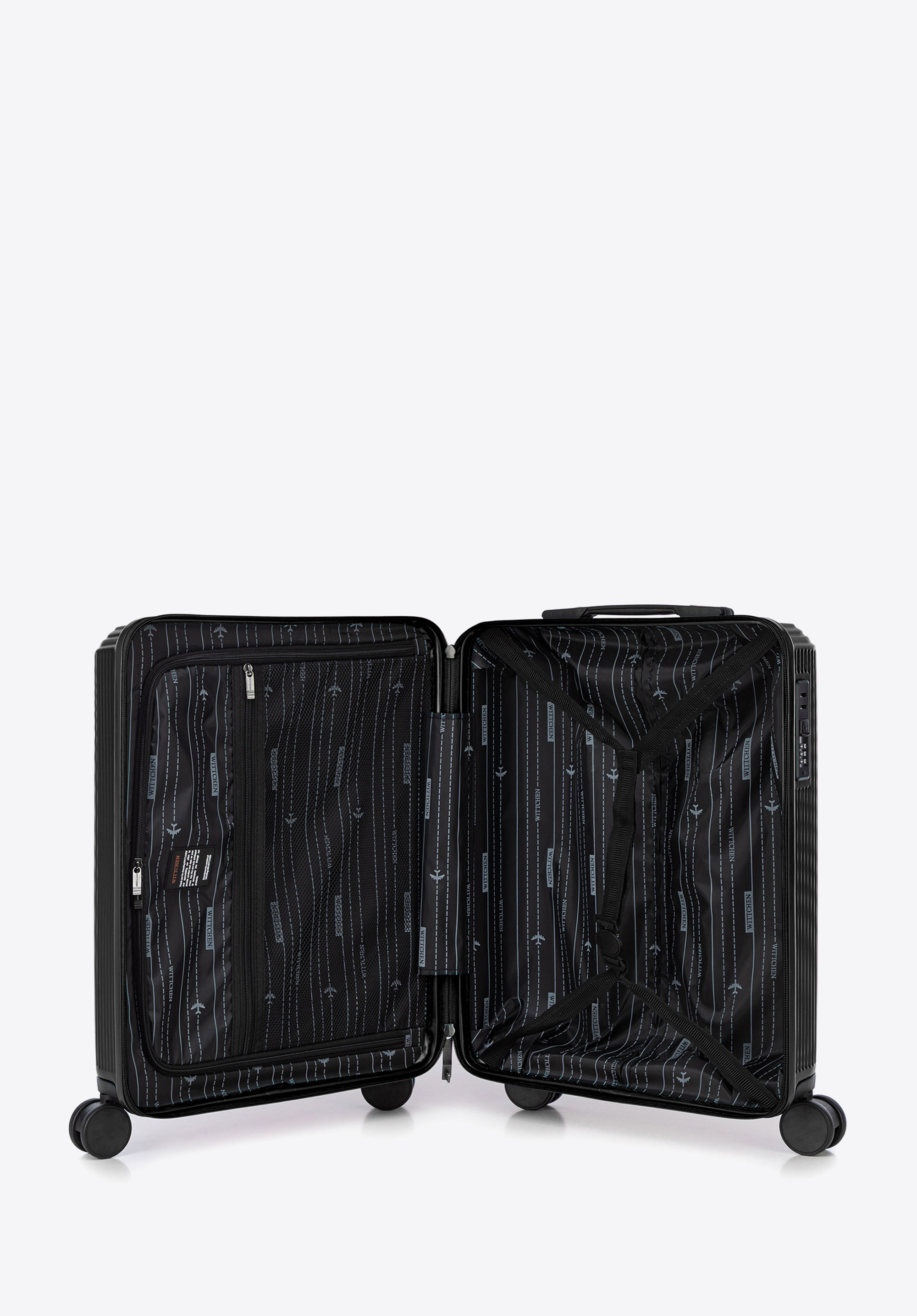 Náš príručný kufor z kolekcie Stripes Line kombinuje moderný dizajn s každodennou funkčnosťou. Povrch je vylepšený elegantnými zvislými drážkami , zatiaľ čo škrupina z ABS plastu poskytuje vynikajúcu odolnosť na vašich cestách. Štyri dvojité kolieska s rotáciou 360° a teleskopická aretačná rukoväť s pohodlným úchopom zabezpečujú plynulú manipuláciu, nech ste kdekoľvek.
