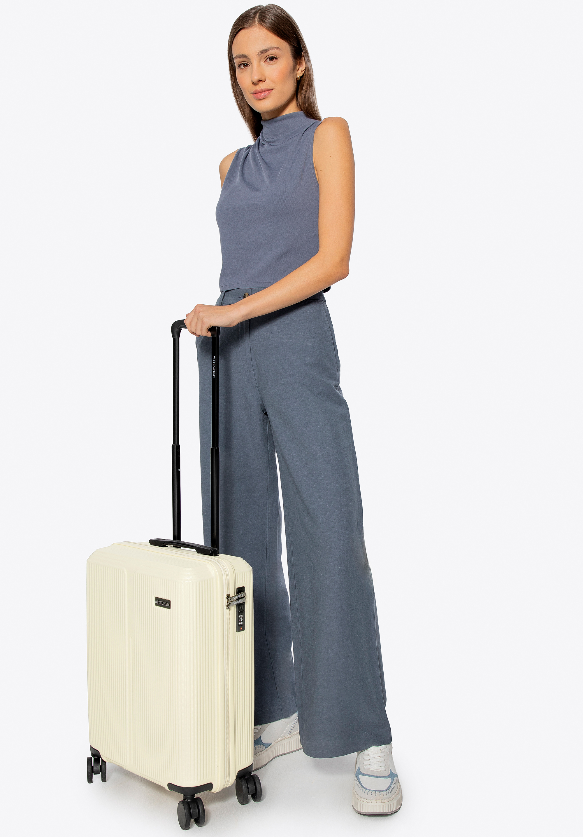 Príručný kufor z ABS materiálu s jemnými pruhmi Farba: krémová