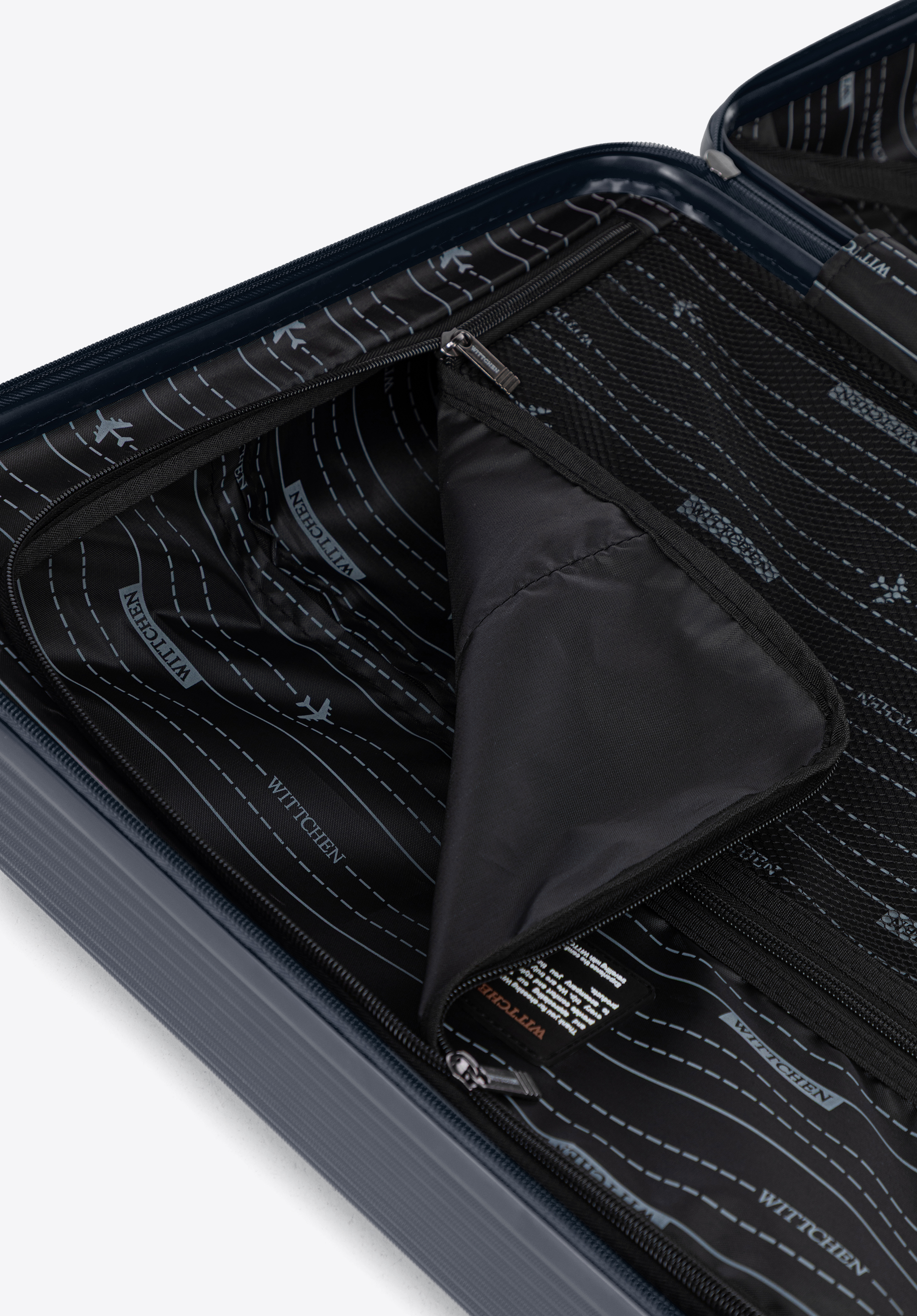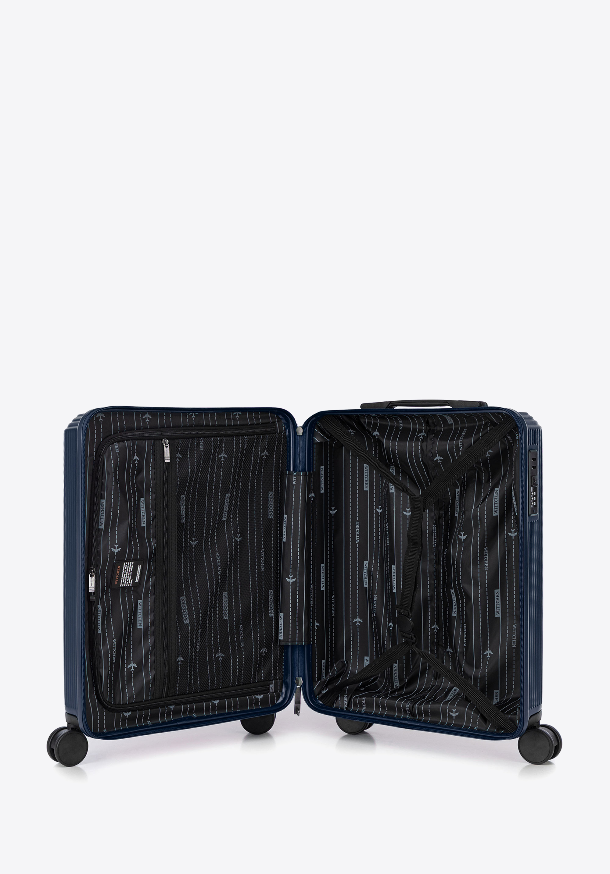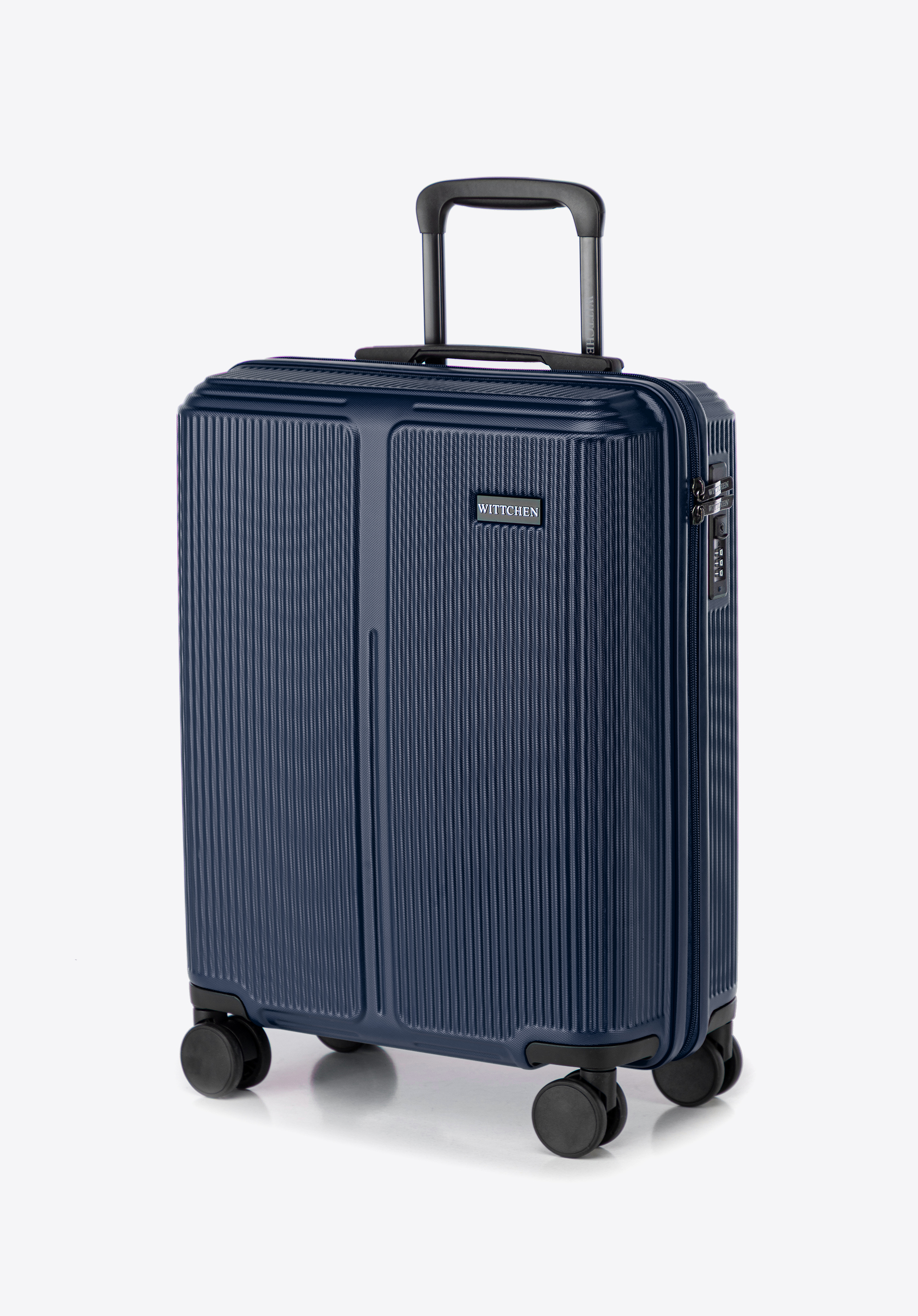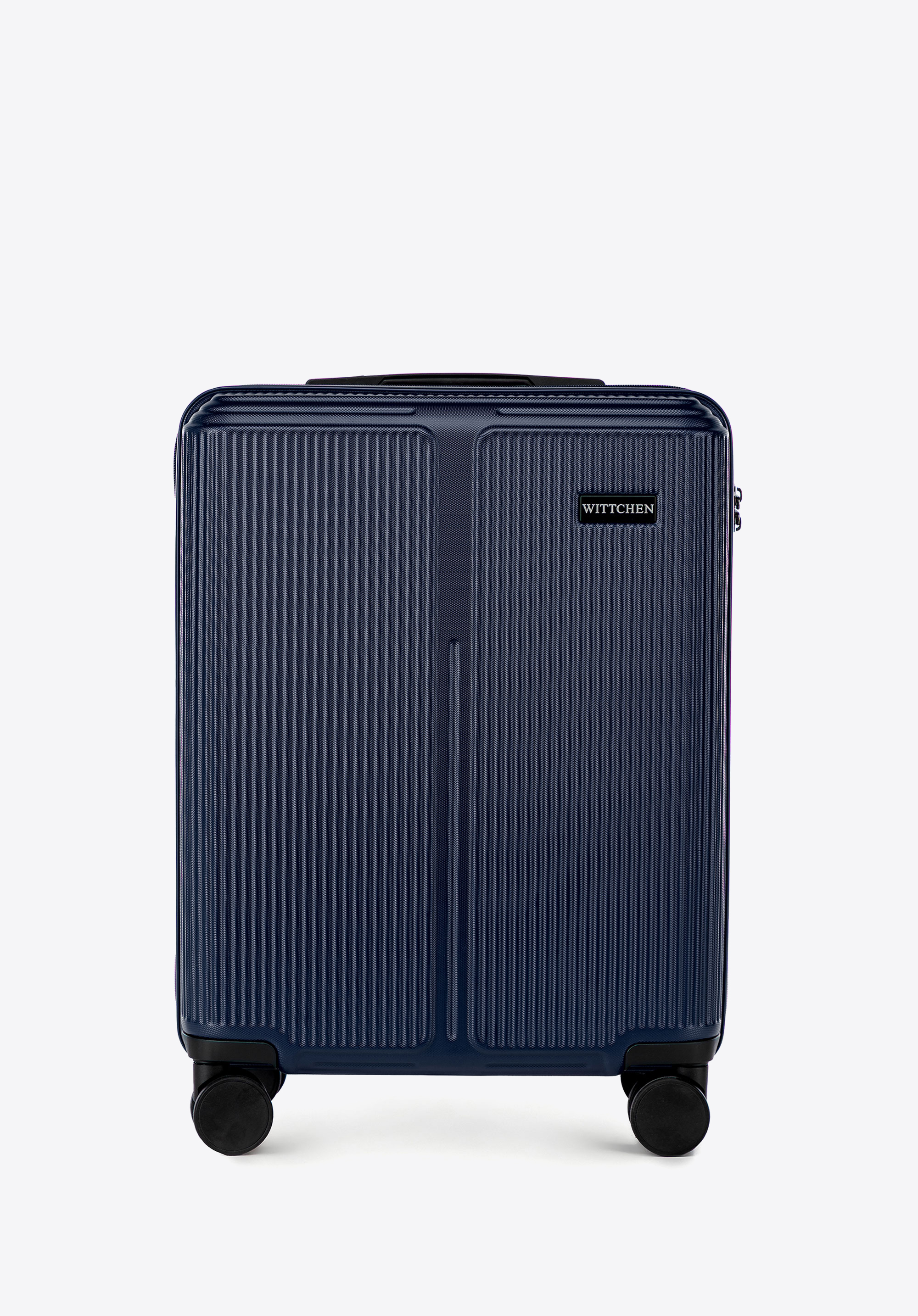Príručný kufor z ABS materiálu s jemnými pruhmi - tmavomodrý