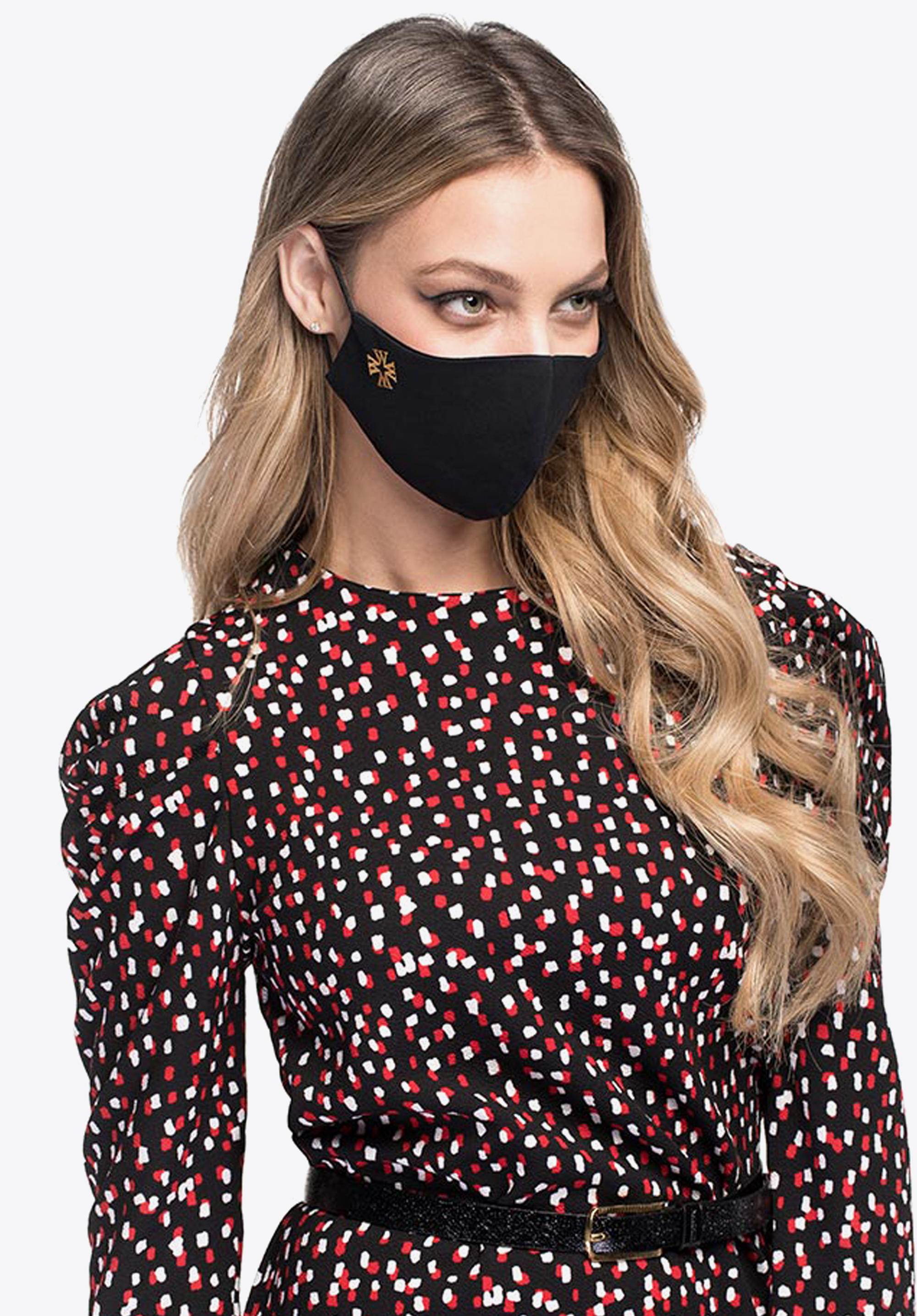 Profilovaná bavlnená maska so zlatým monogramom MASECZKA-3