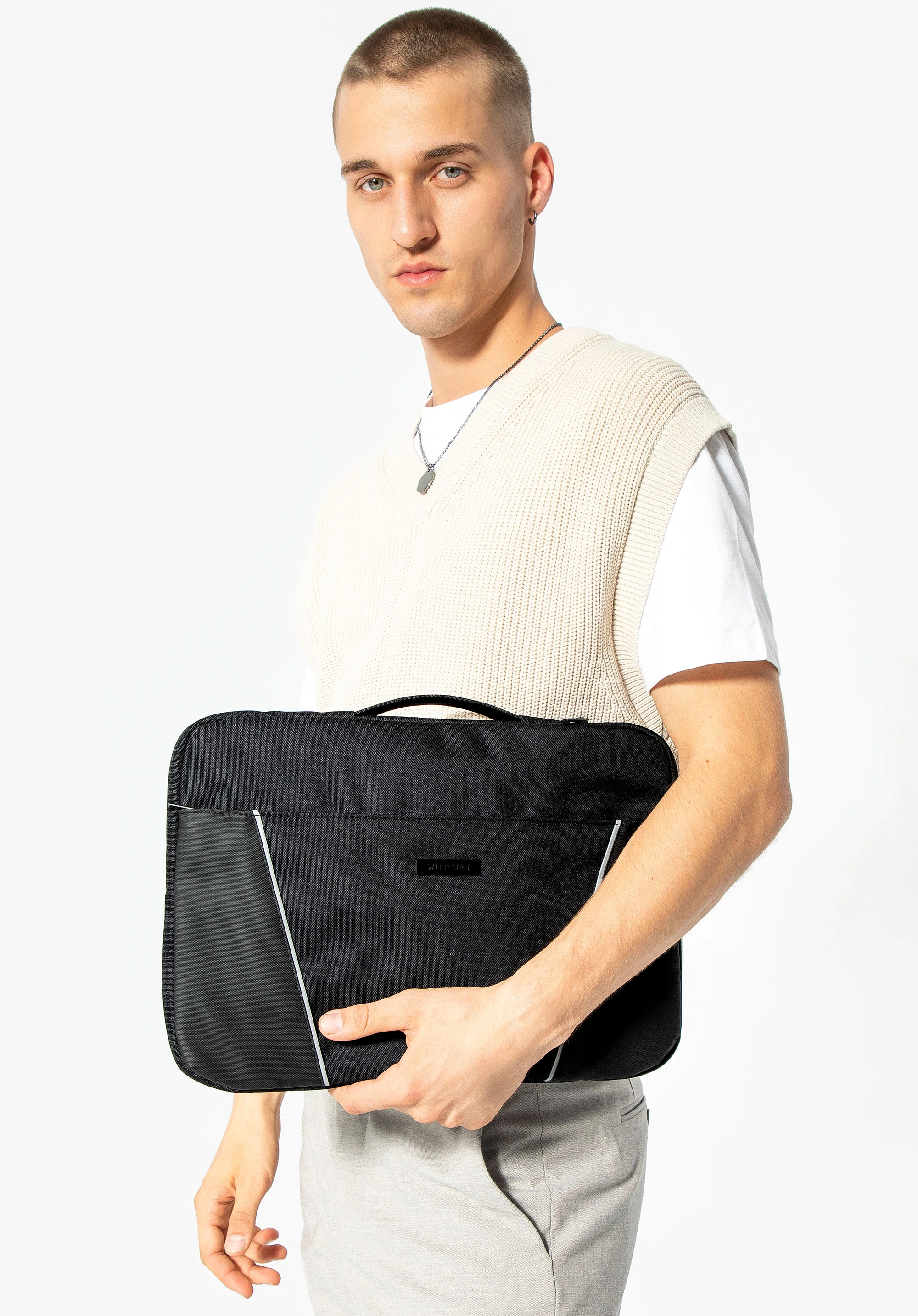 Toto puzdro je spoľahlivým spoločníkom pre každého profesionála, spája funkčnosť a eleganciu v dokonalej harmónii. Jeho ergonomická rukoväť na pravej strane uľahčuje prenášanie a zaisťuje bezkonkurenčné pohodlie. Jemné prešívanie a estetické logo dodávajú sofistikovaný nádych a dokonale zvýrazňujú jeho elegantný dizajn. Je nevyhnutnou súčasťou vášho každodenného odevu, ktorý nielen chráni, ale aj podčiarkuje vašu profesionalitu a štýl.
