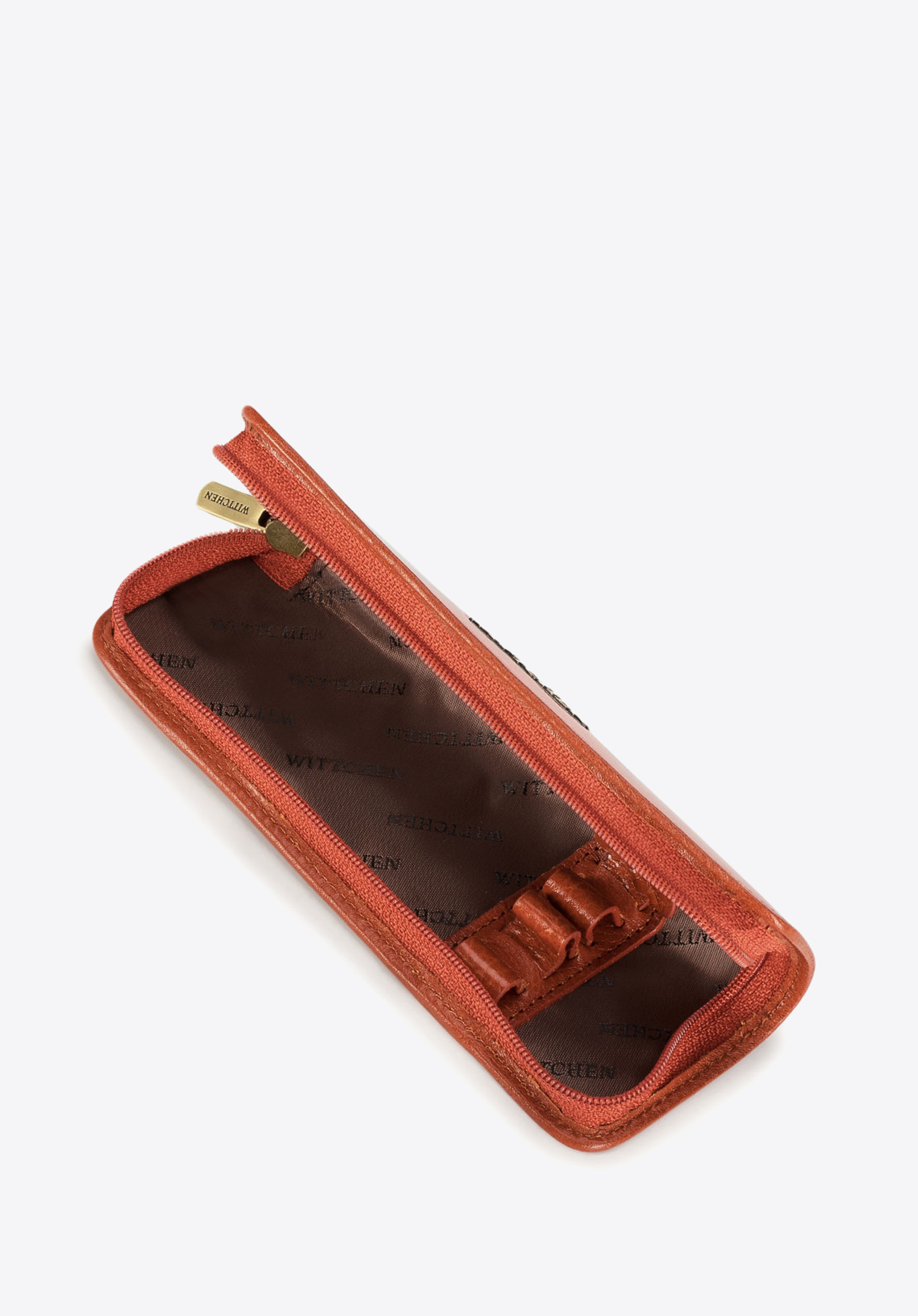 Puzdro na perá z kolekcie Verona. Veľmi starostlivo a esteticky, ručne vyrobené puzdro z lakovanej kože. Vnútro a lemy sú vyrobené z lícovej kože. Logo - kovový štítok s erbom WITTCHEN vo farbe starého zlata. Puzdro poskytuje ideálnu ochranu písacích potrieb a vďaka malým rozmerom je mimoriadne praktické a pohodlné. Výborne sa hodí na obchodné stretnutia aj na každodenné používanie. Puzdro je zabalené v exkluzívnom obale - signované logom WITTCHEN.