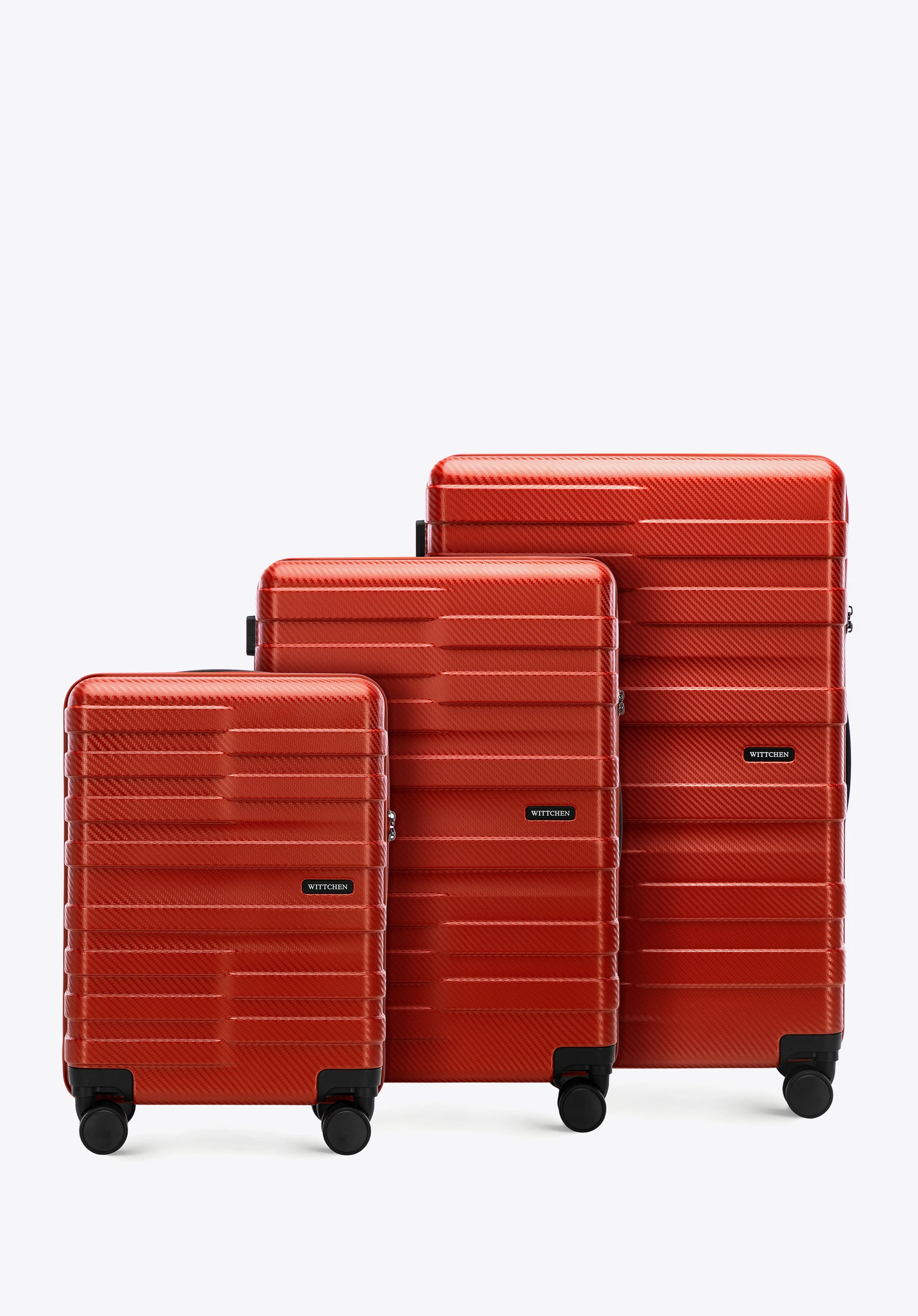 Táto sada batožiny je perfektnou voľbou pre cestovateľov, ktorí si cenia štýl aj praktickosť. Táto sada pozostáva z príručného kufra , stredného a veľkého kufra a je vyrobená z odolného polykarbonátu , ktorý ponúka výnimočnú odolnosť voči preliačinám a zároveň si zachováva elegantný vzhľad. Horizontálny pruhovaný vzor a prepracované detaily dodávajú sade moderný a nadčasový vzhľad .