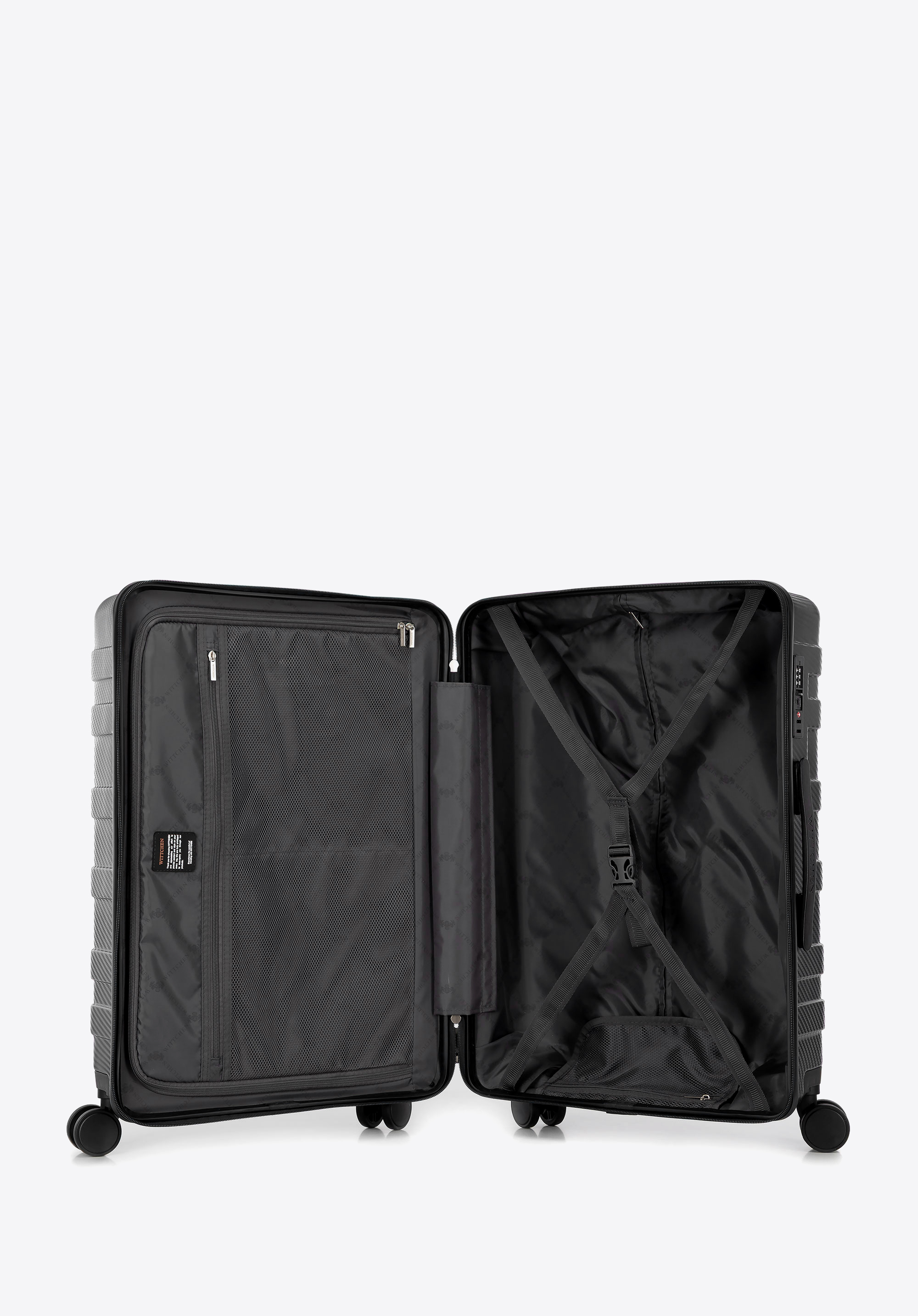 Táto sada batožiny je perfektnou voľbou pre cestovateľov, ktorí si cenia štýl aj praktickosť. Táto sada pozostáva z príručného kufra , stredného a veľkého kufra a je vyrobená z odolného polykarbonátu , ktorý ponúka výnimočnú odolnosť voči preliačinám a zároveň si zachováva elegantný vzhľad. Horizontálny pruhovaný vzor a prepracované detaily dodávajú sade moderný a nadčasový vzhľad .