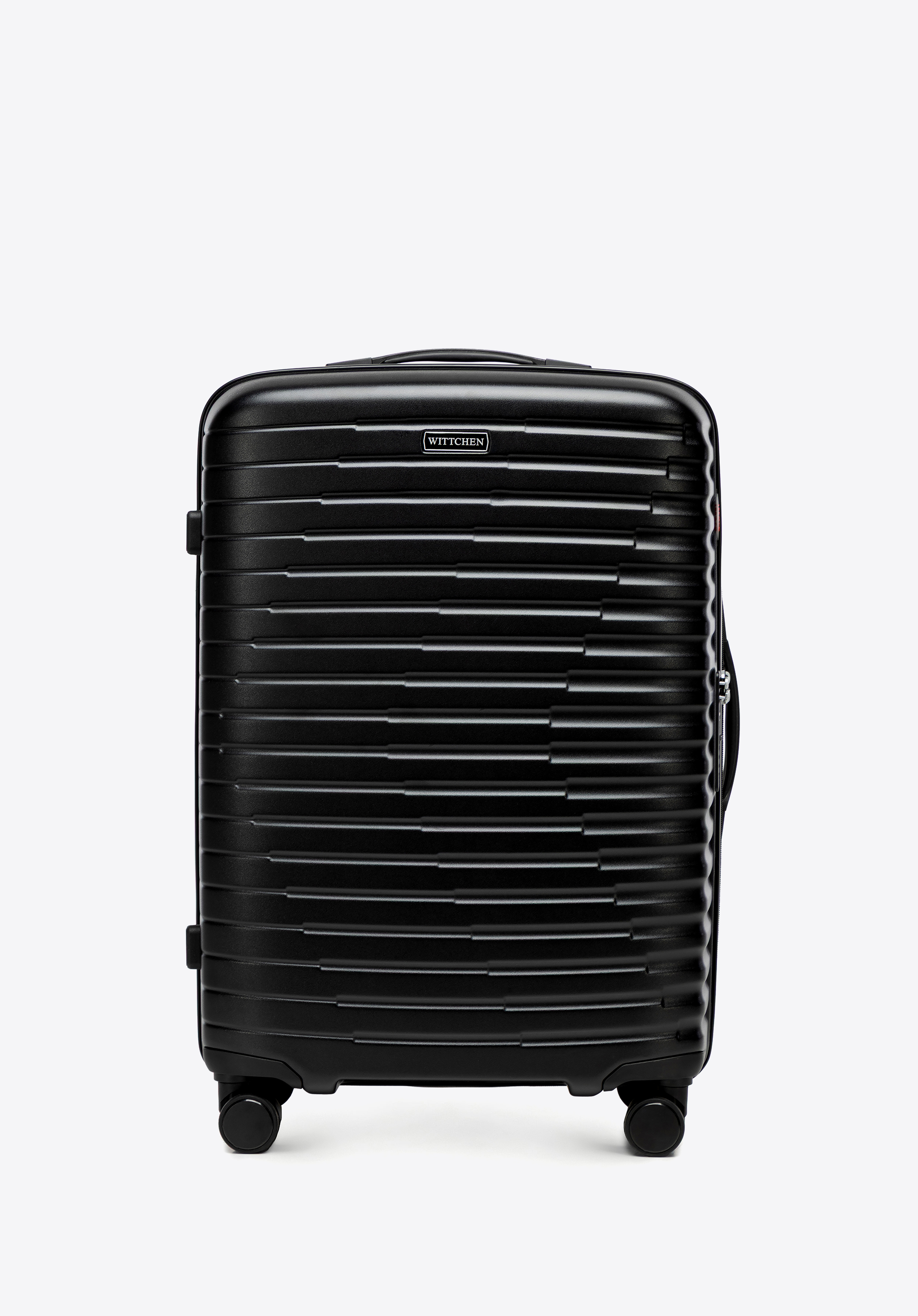 Sada kufrov z polykarbonátu s horizontálnym rebrovaním - čierna