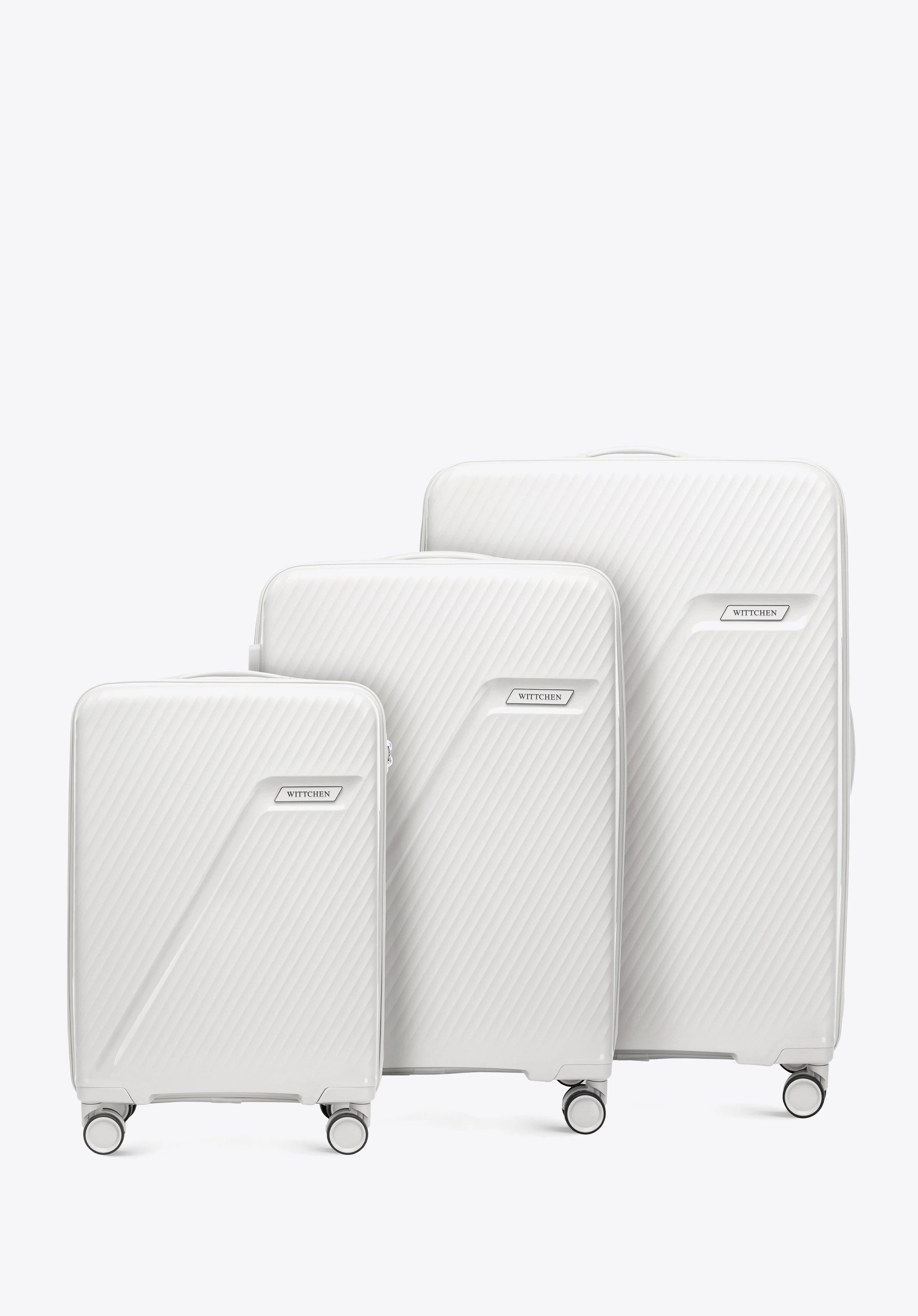 Či už sa chystáte na výlet, služobnú cestu alebo dlhú dovolenku, táto sada batožiny WITTCHEN z kolekcie WIN LINE je perfektným spoločníkom na cesty. Vďaka trom veľkostiam ( príručná , stredná a veľká ), ľahkej polypropylénovej konštrukcii , elegantnému diagonálnemu reliéfu a roztiahnuteľnému dizajnu ponúka táto sada pohodlie a štýl pre každé dobrodružstvo.
