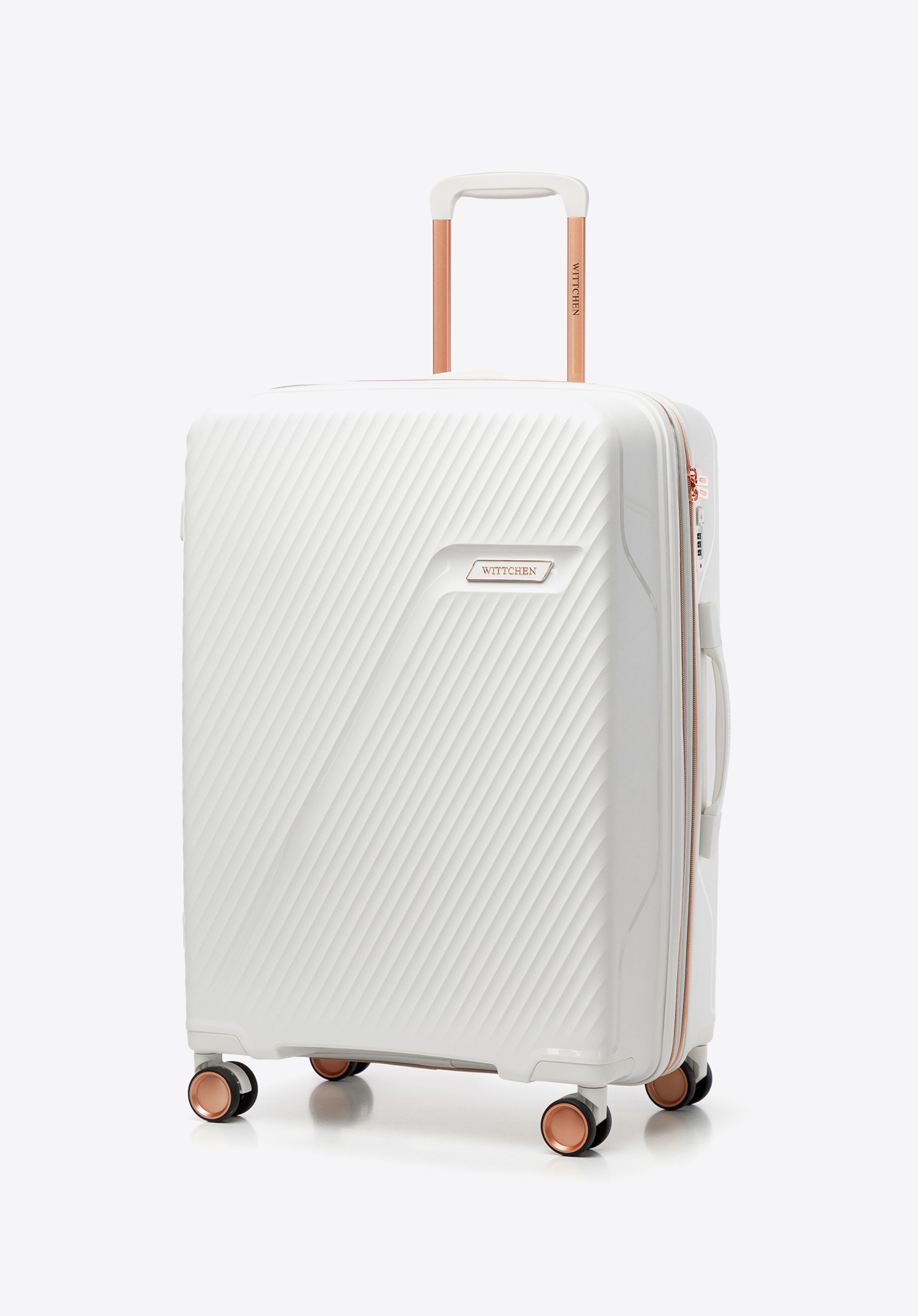 Sada kufrov z polypropylénu s diagonálnym vzorom Farba: krémovo-zlatá