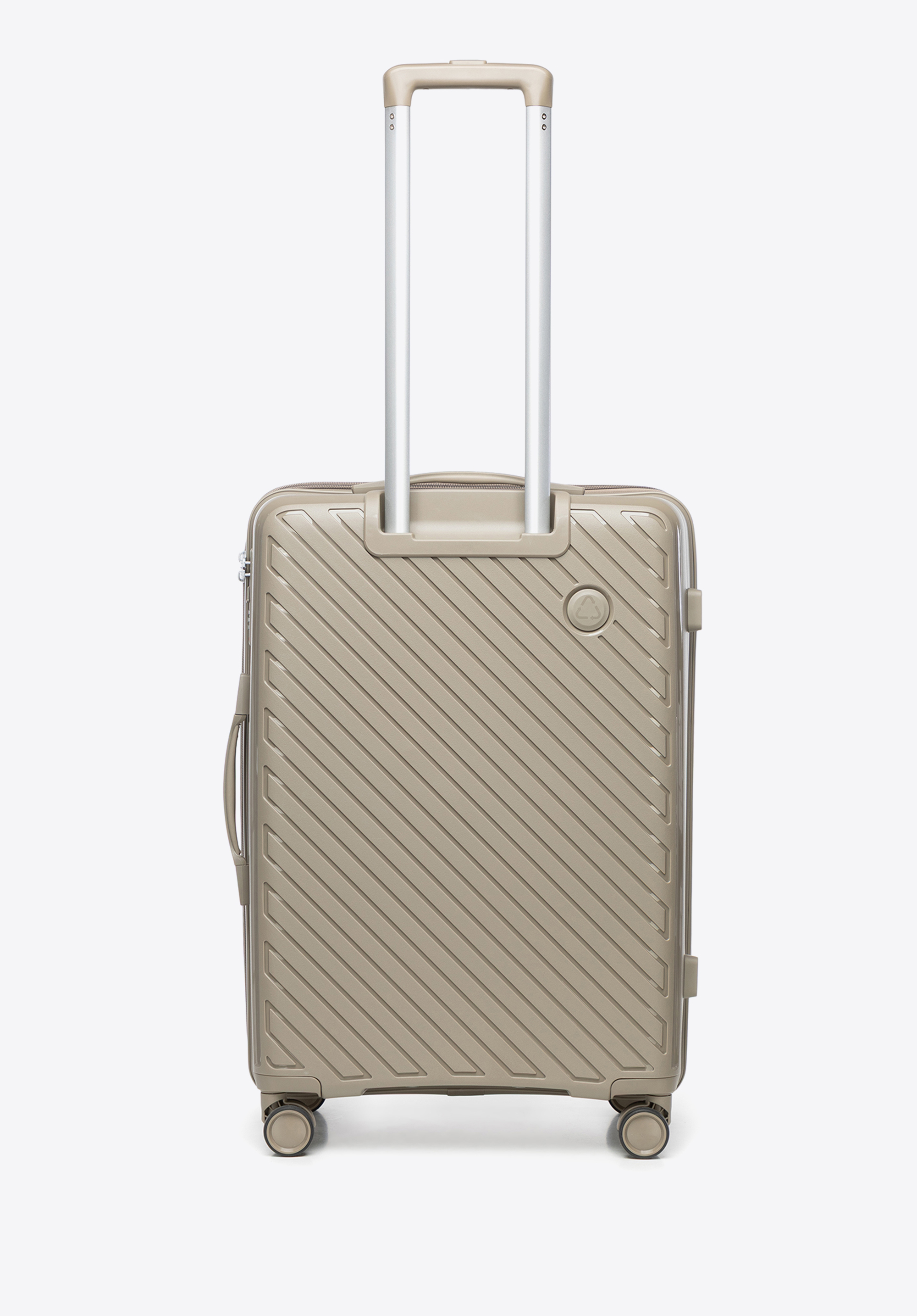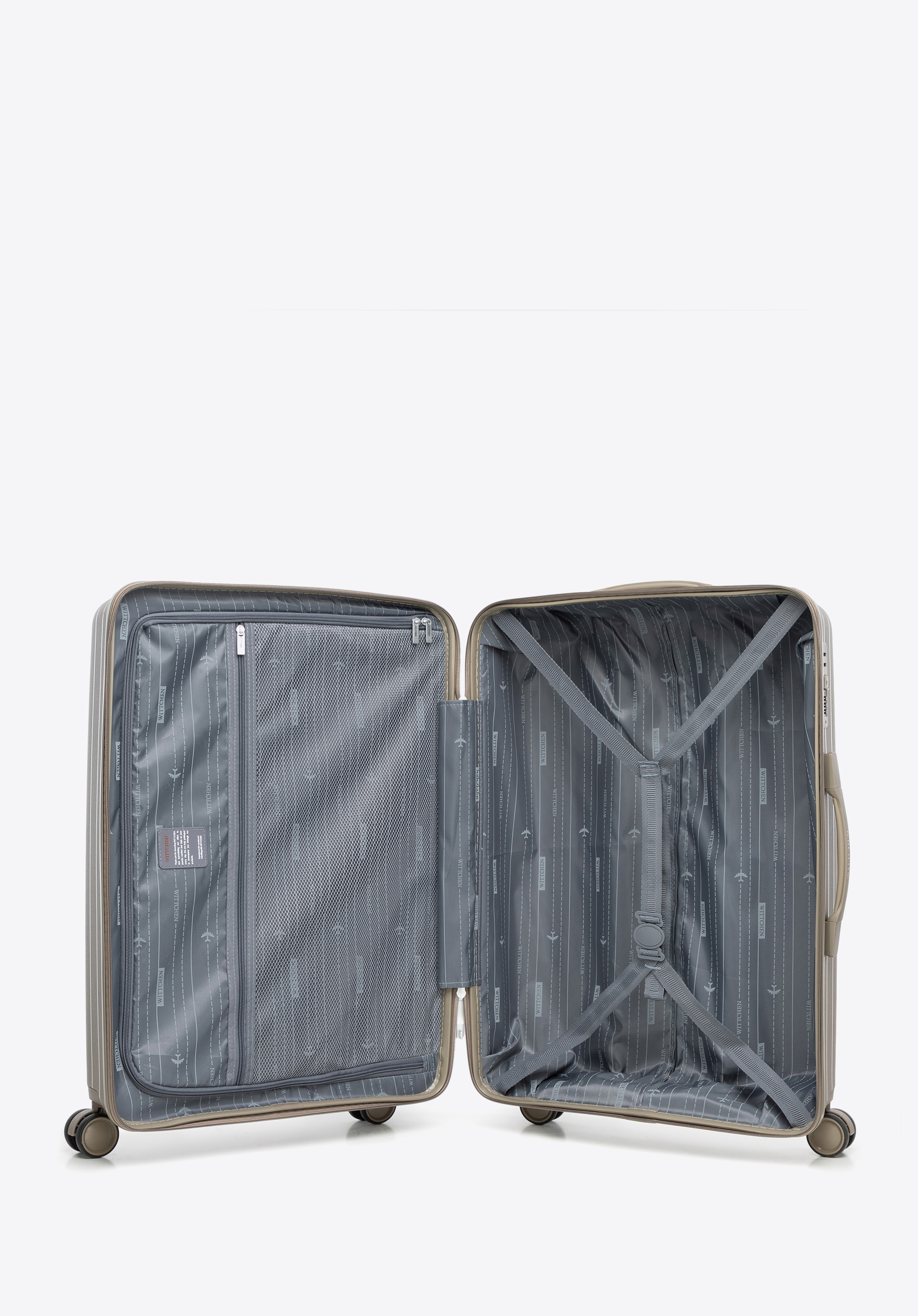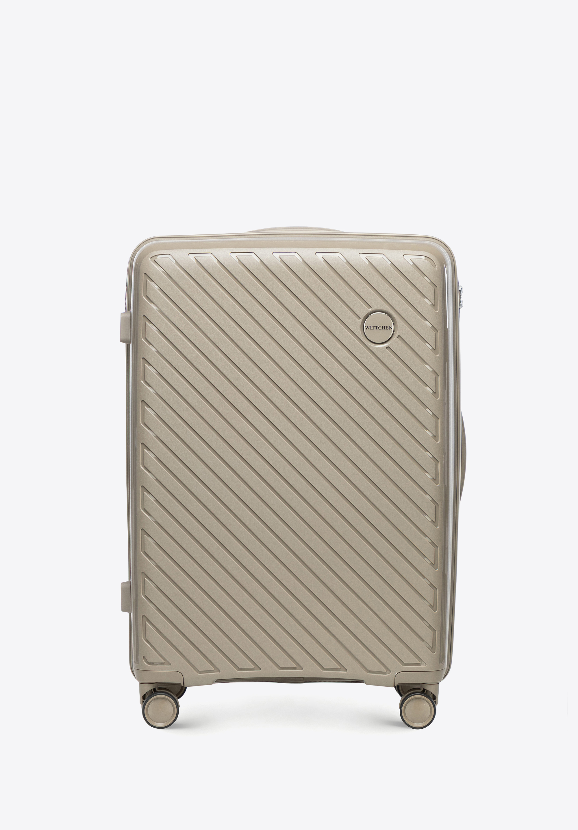 Sada kufrov z polypropylénu s lisovanými pruhmi - tmavobéžová