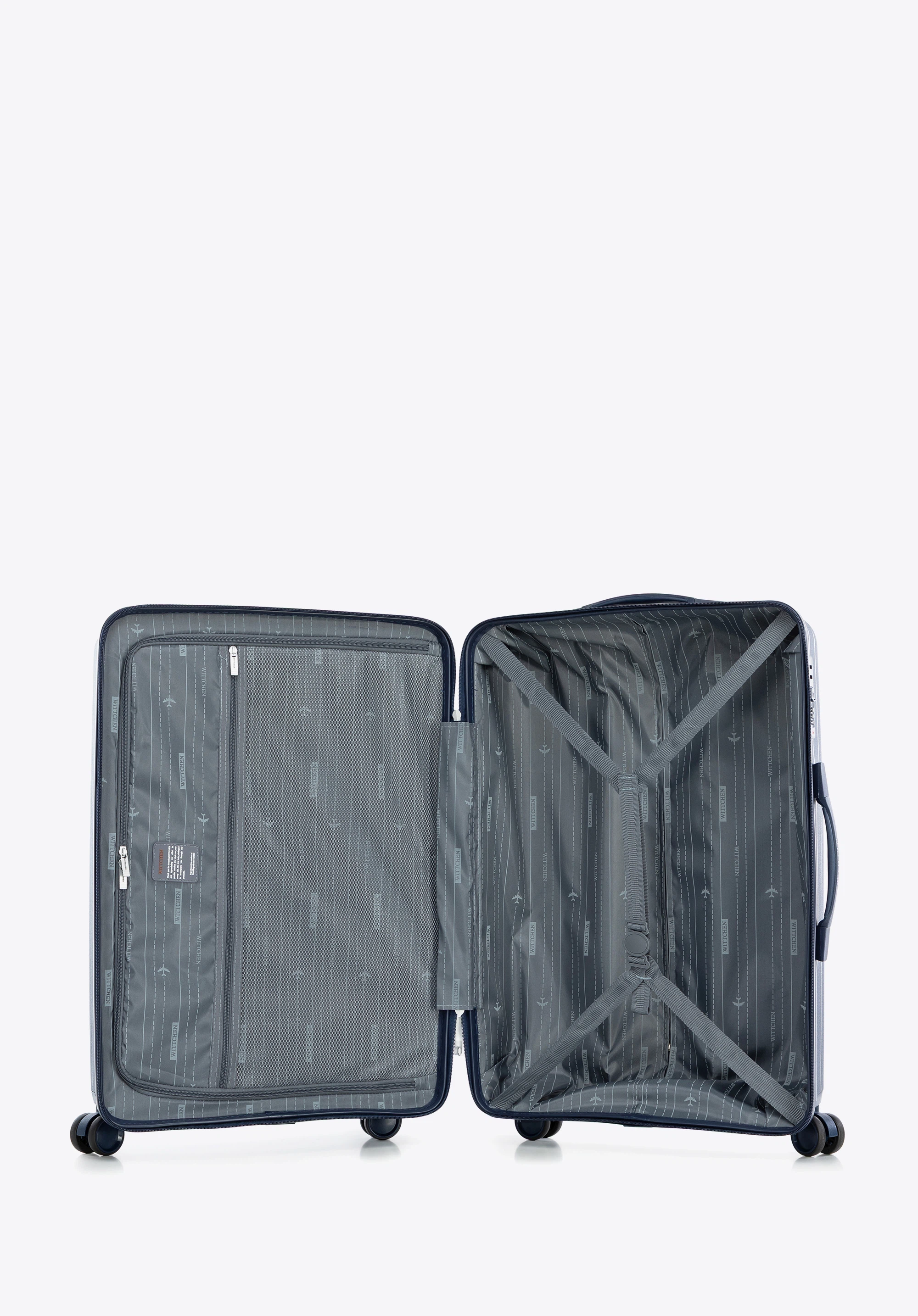 - Materiál: Každý kufor je vyrobený z ľahkého a flexibilného recyklovaného polypropylénu .