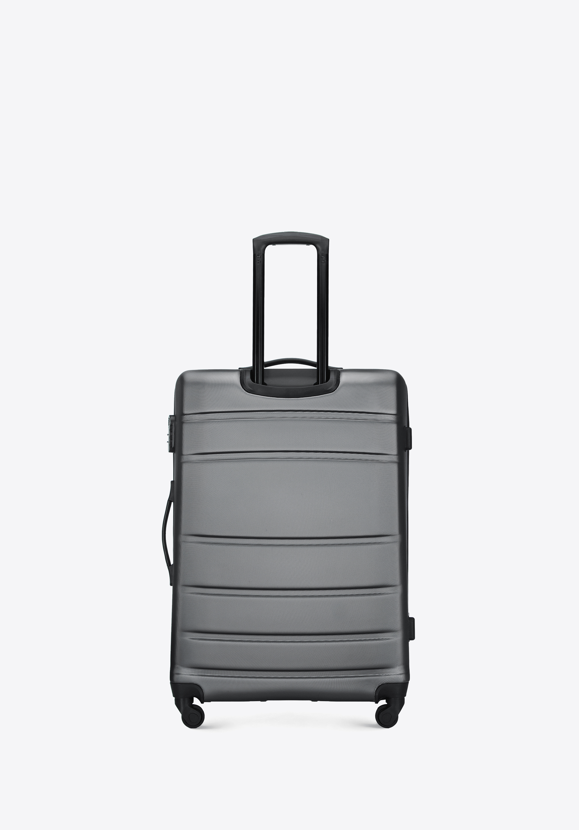 Štýlová a funkčná sada z kolekcie Globe Line , ktorá obsahuje veľký kufor a zodpovedajúcu kozmetickú taštičku . Oba kusy sú vyrobené z textúrovaného ABS plastu , odolného voči poškriabaniu a každodennému noseniu. Horizontálne drážky dodávajú moderný a elegantný nádych, zatiaľ čo premyslené dizajnové detaily robia túto sadu ideálnou na akúkoľvek cestu – od krátkych služobných ciest až po dlhé dovolenky.